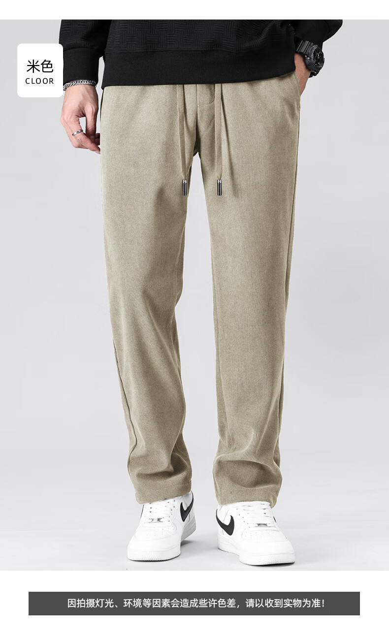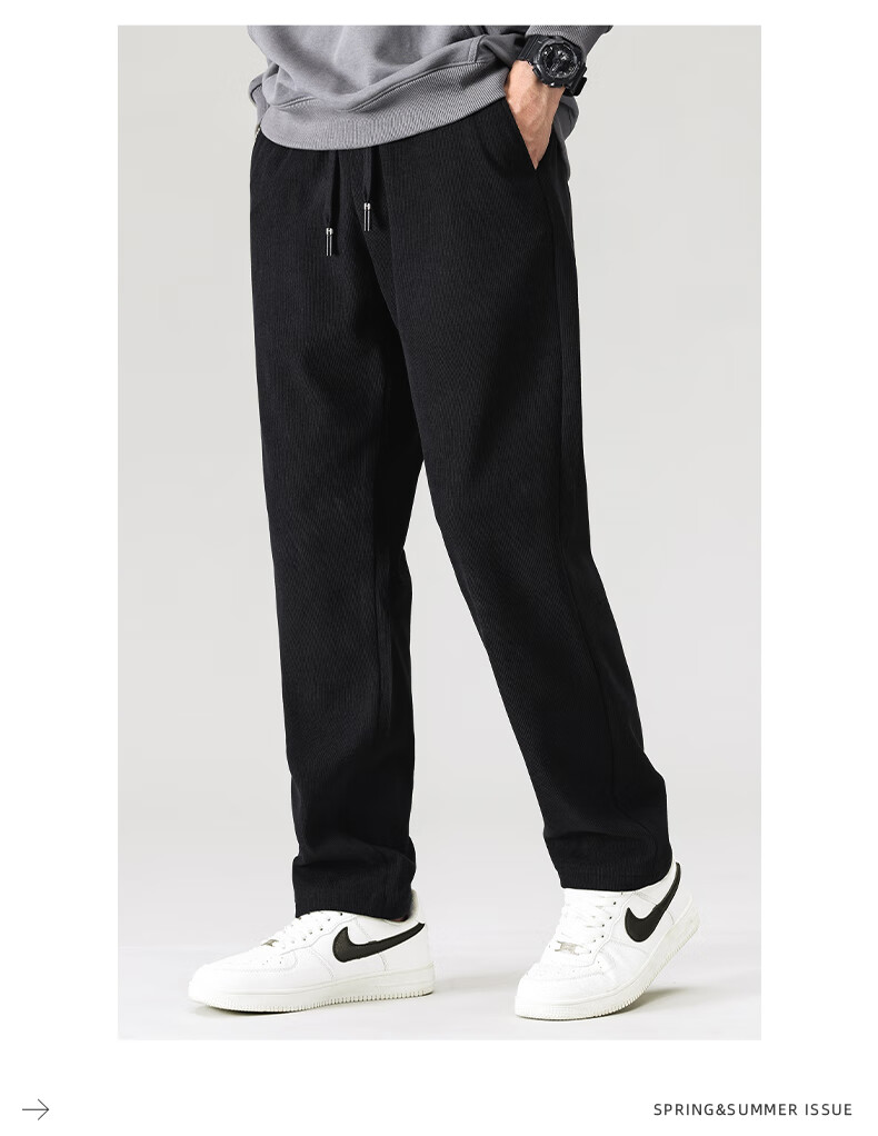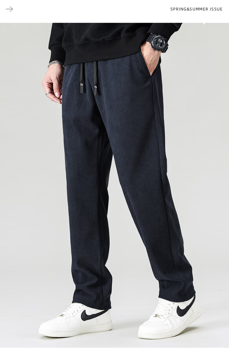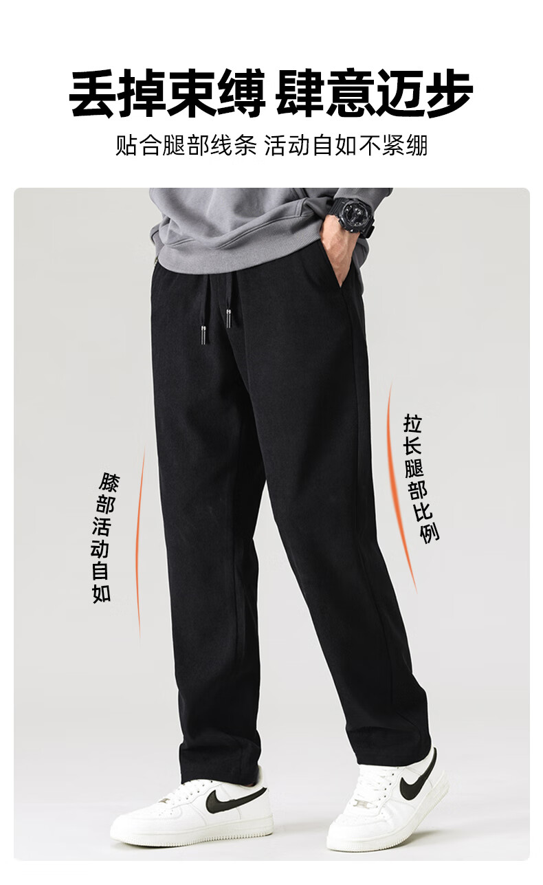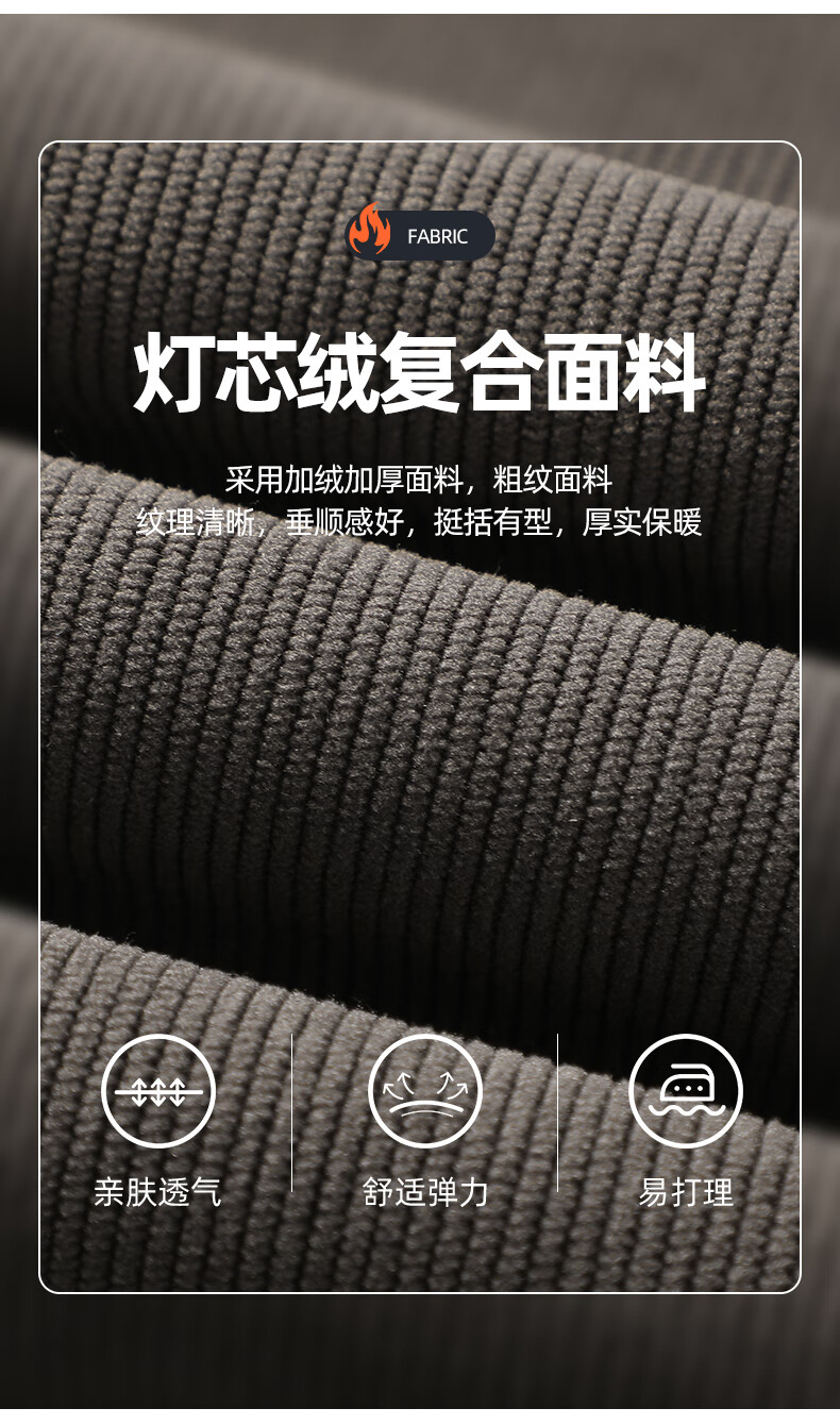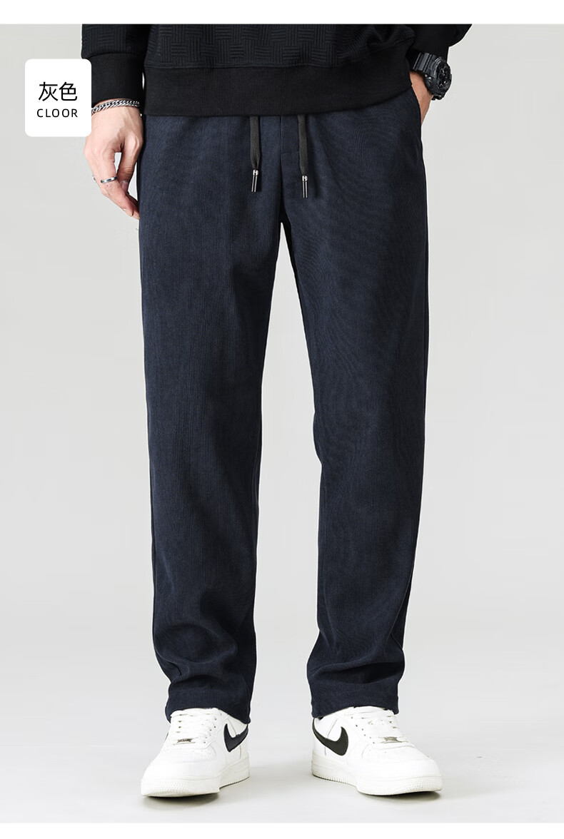 罗蒙(ROMON)【加绒可选】灯芯绒加厚休闲裤男秋冬新款抽绳腰中青年直筒长裤男 5K035635H黑色【加厚款】 L (175) (建议110-130斤)