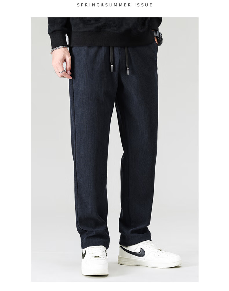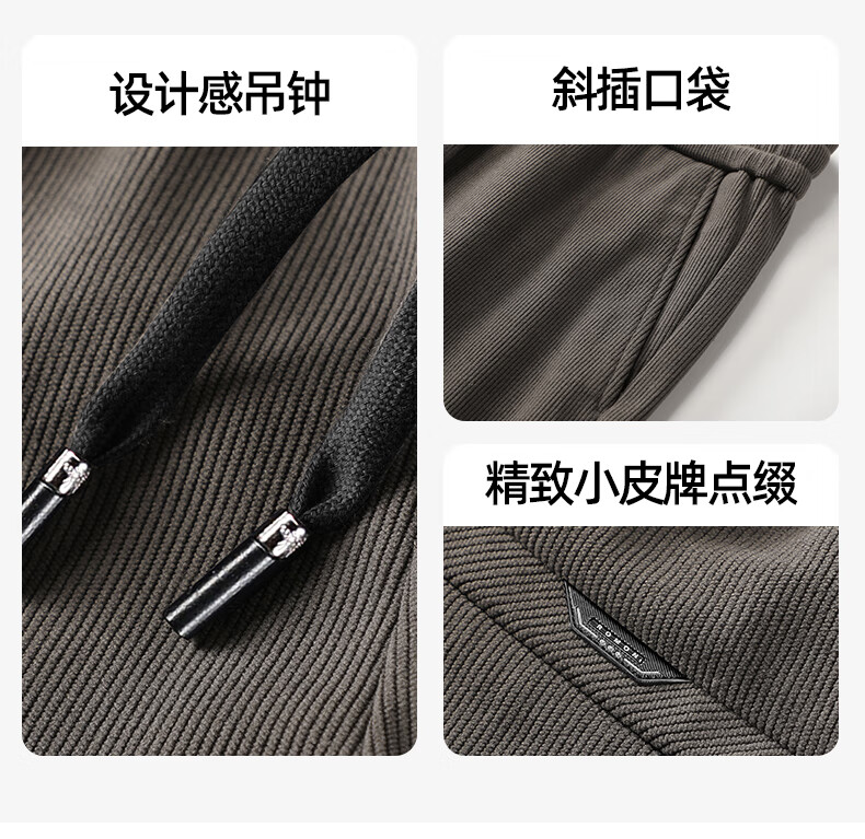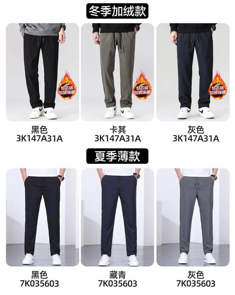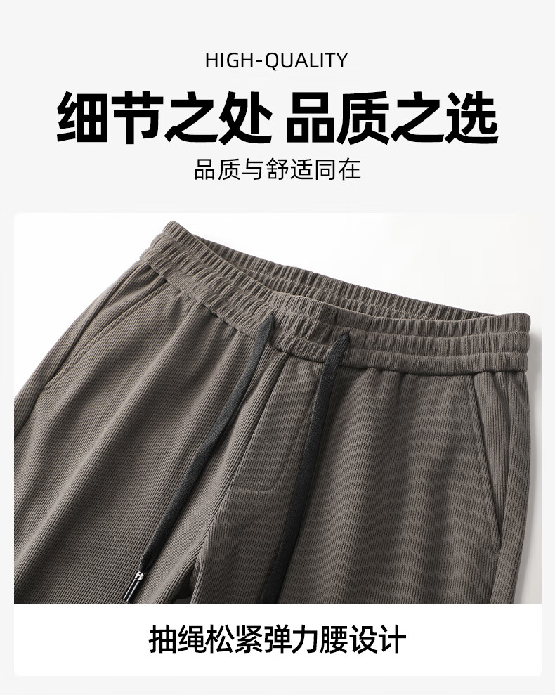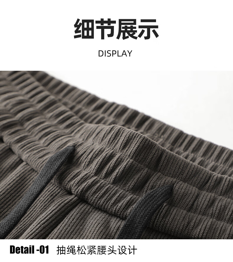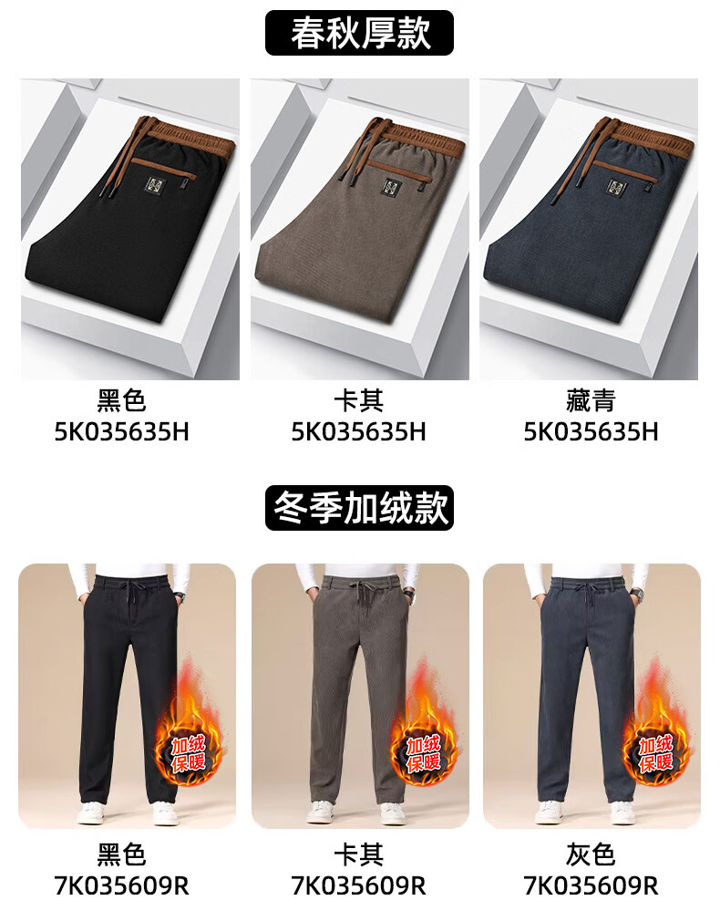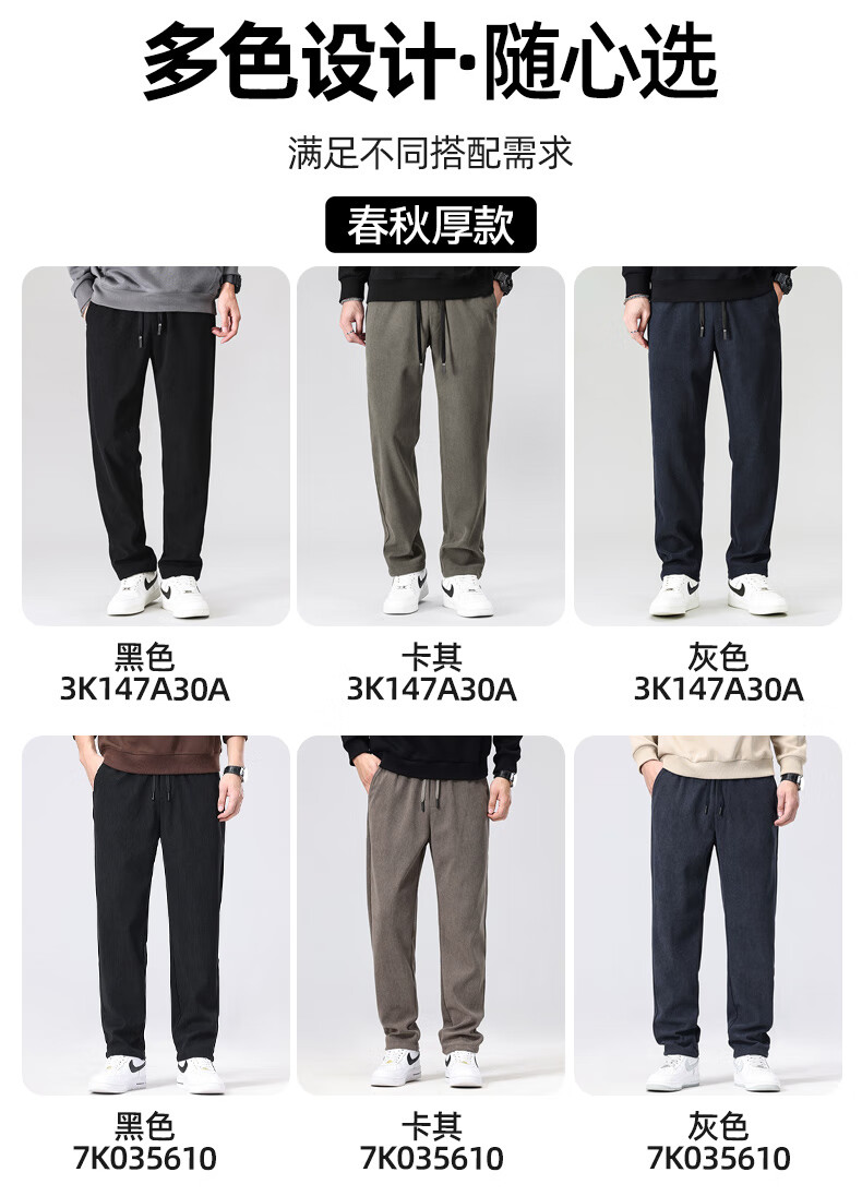 罗蒙(ROMON)【加绒可选】灯芯绒加厚休闲裤男秋冬新款抽绳腰中青年直筒长裤男 5K035635H黑色【加厚款】 L (175) (建议110-130斤)