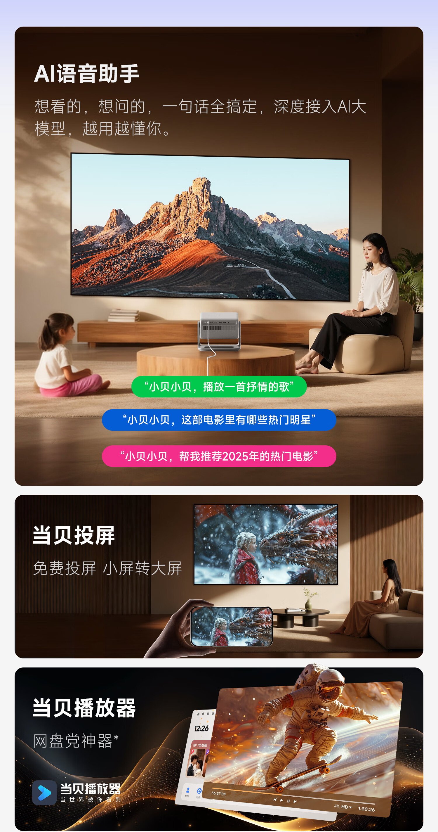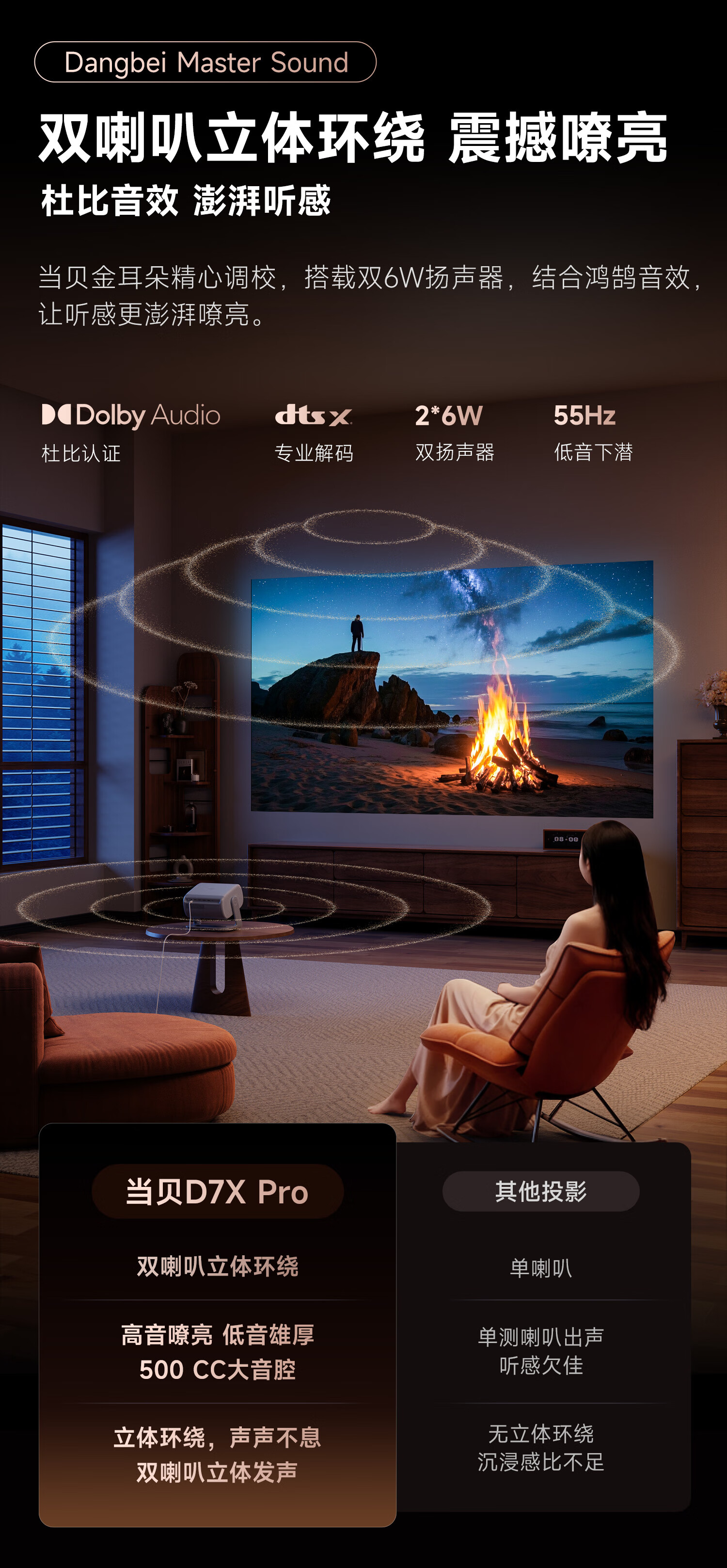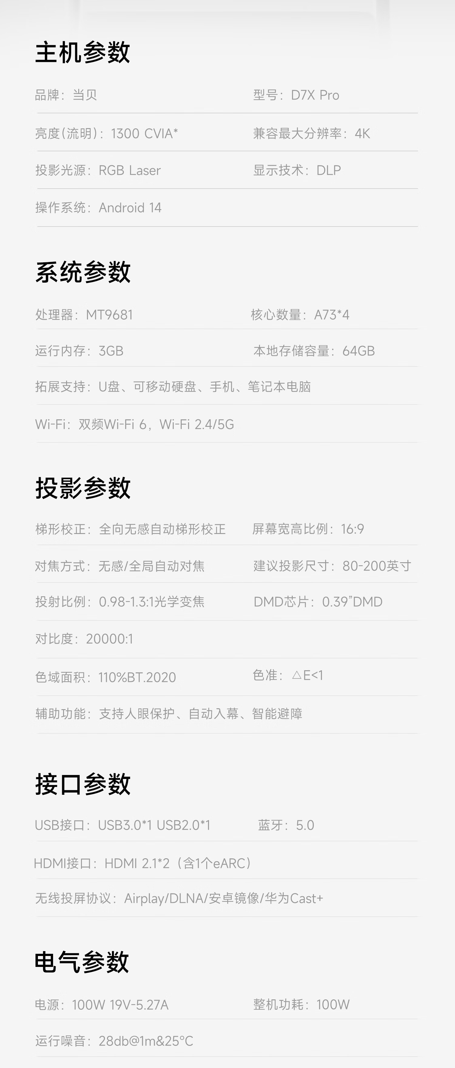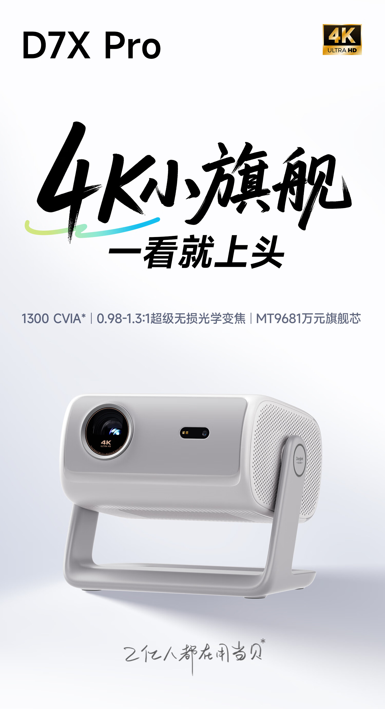 当贝 D7X Pro 4K三色激光投影仪家用 超高清家庭影院国家补贴20%(无损光学变焦 1600 ISO)