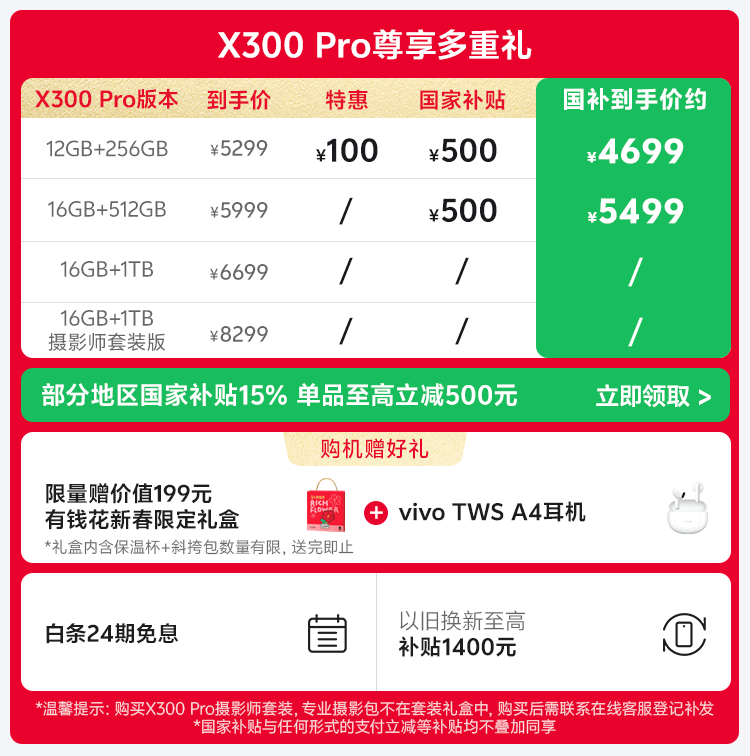 vivo X300 Pro 蔡司2亿APO超级长焦 蓝图自研影像双芯 5年持久流畅OriginOS 6 直屏拍照手机 新品 国补 简单白 16GB+512GB 官方标配