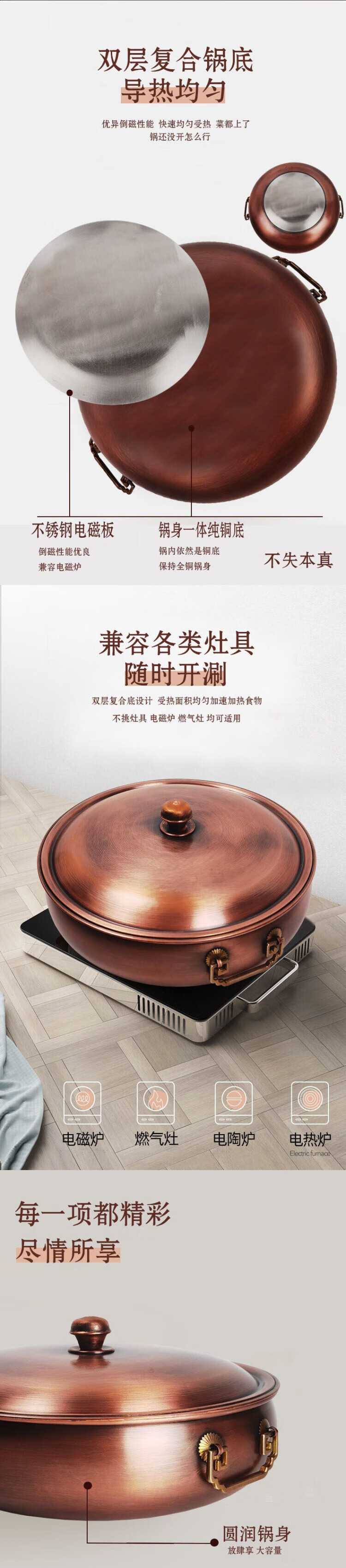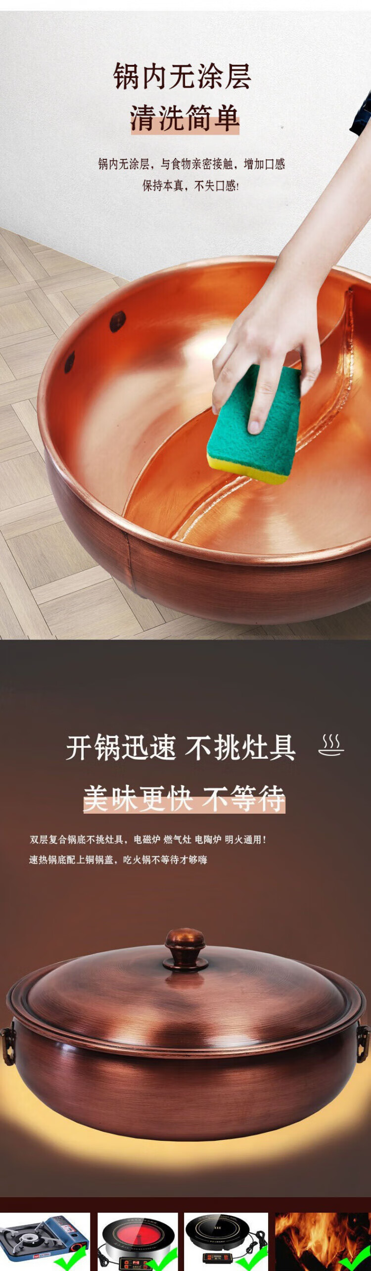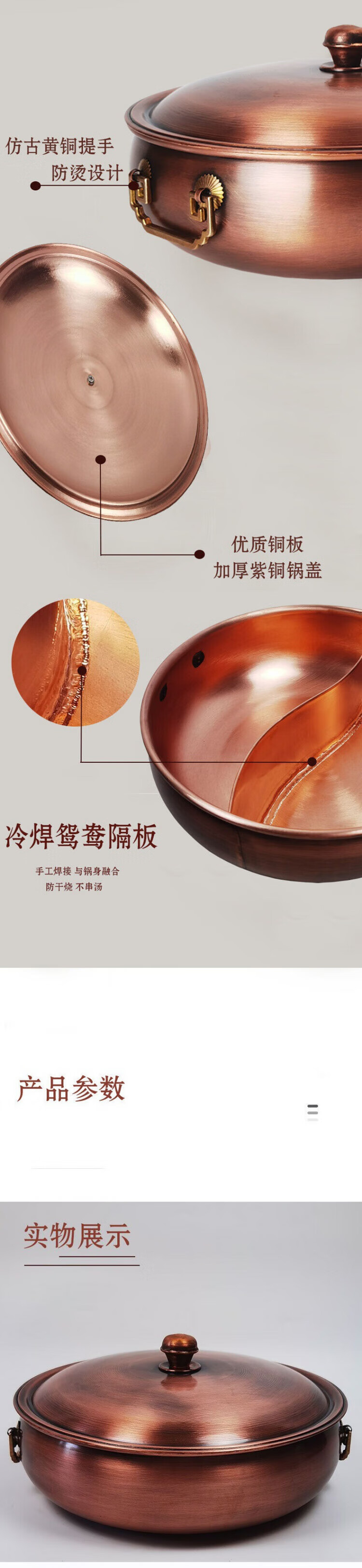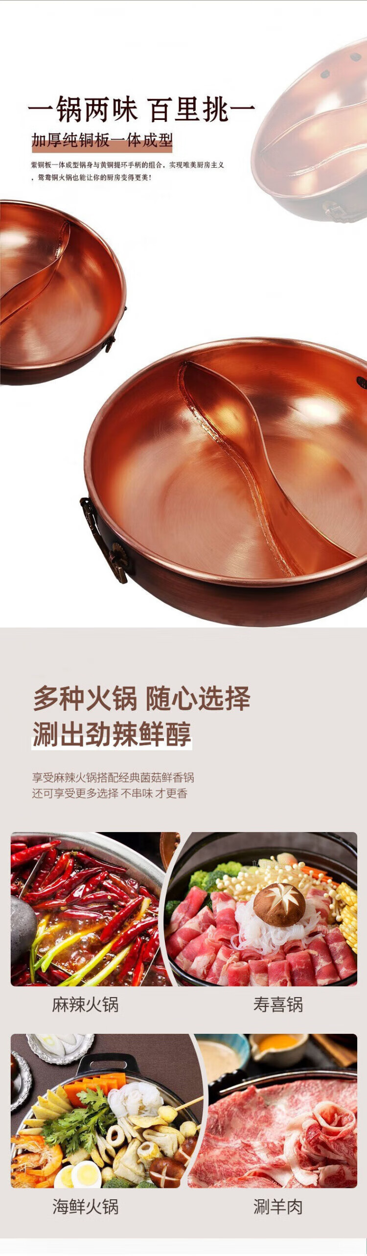 SSIIXX日本品牌铜火锅火锅鸳鸯锅加厚手工纯紫铜涮羊肉锅燃气铜锅电磁炉 特厚紫铜清汤锅(1-4人用) 28cm