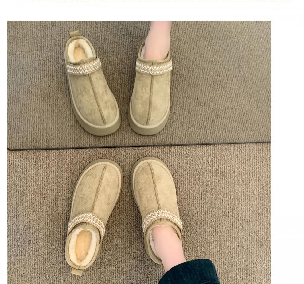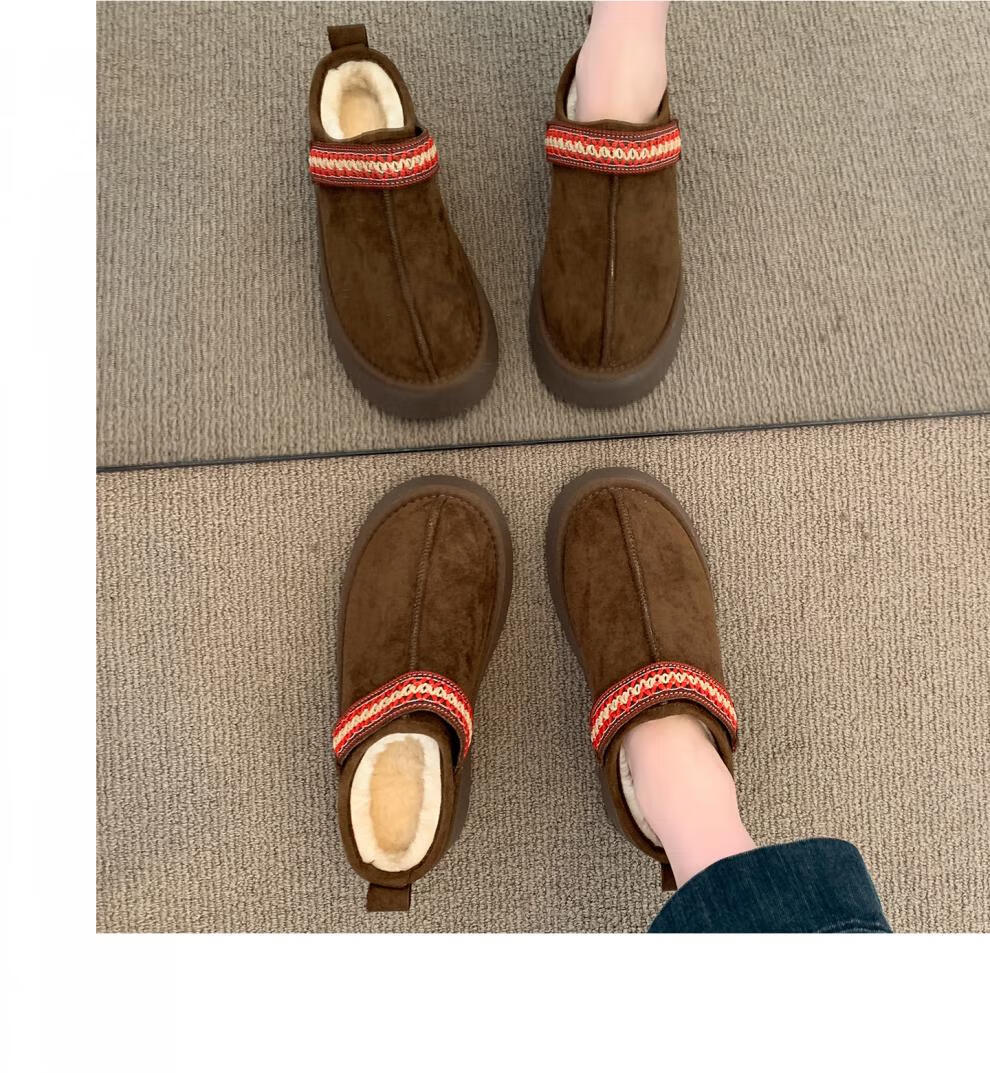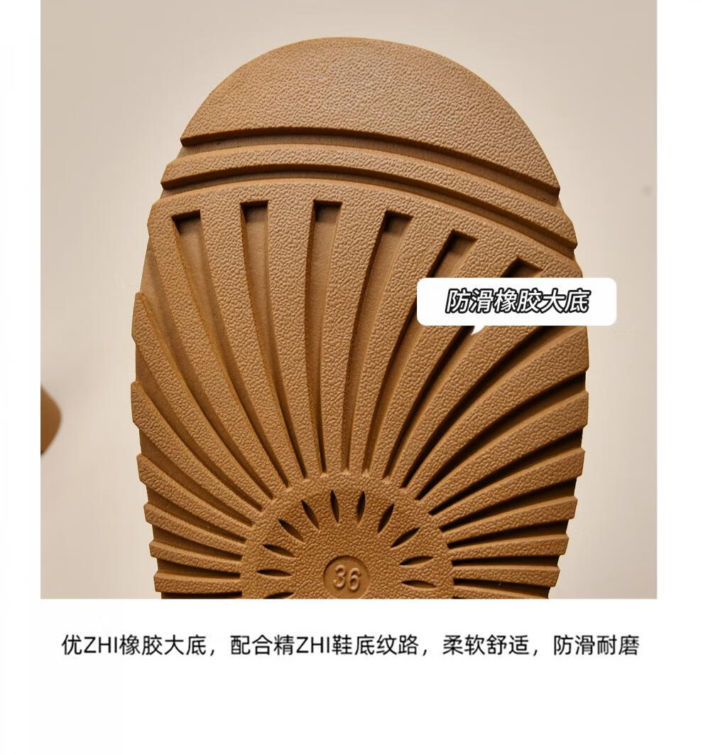 稻草人(MEXICAN)品牌冬季真皮毛一体雪地靴厚底加绒保暖棉鞋包头半拖女外穿棉拖鞋 驼色 35