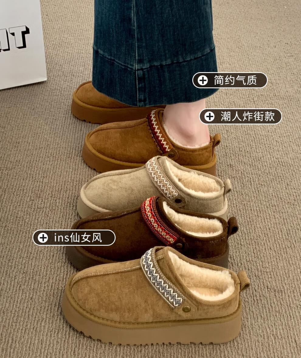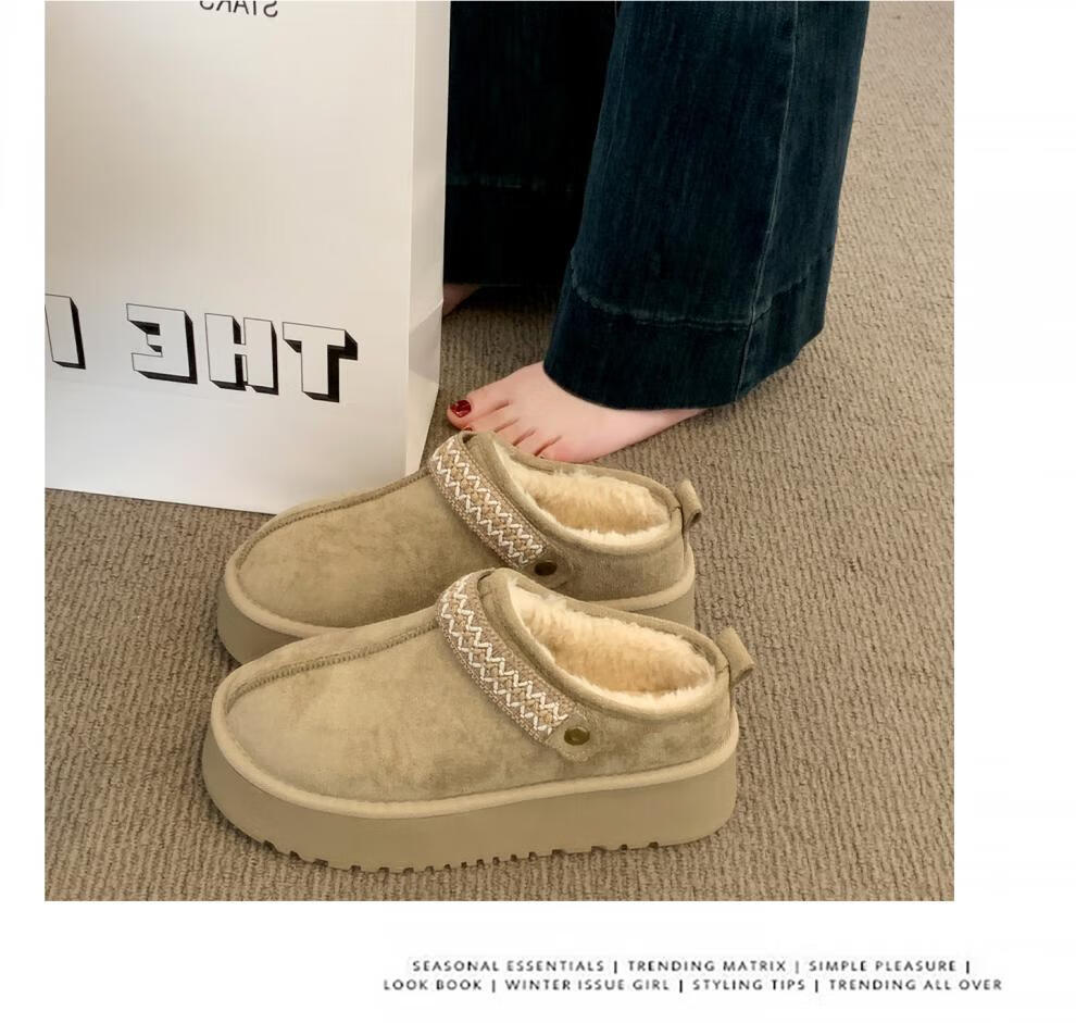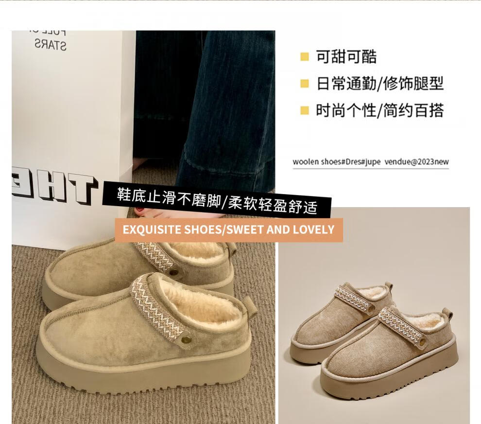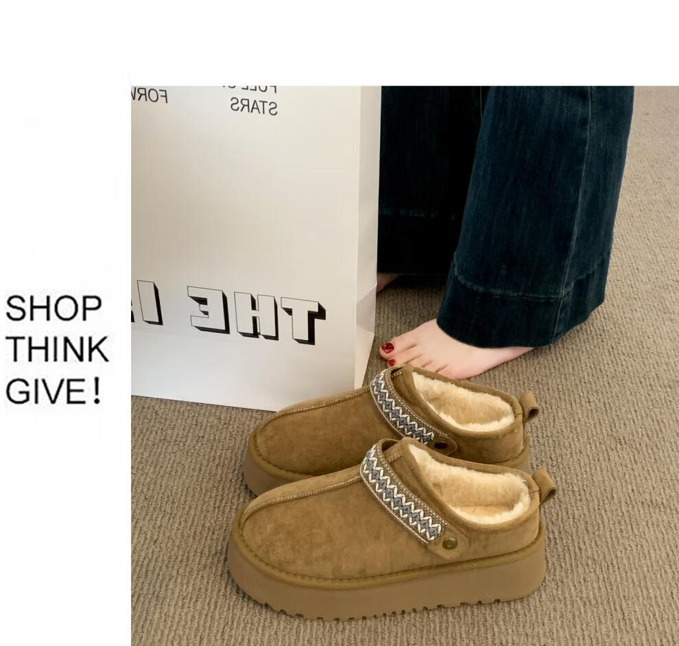 星期六毛绒雪地靴女款冬季加绒2025新款女鞋东北短筒棉鞋厚底保暖面包鞋 卡其色 【冬季保暖】跟高3cm 38