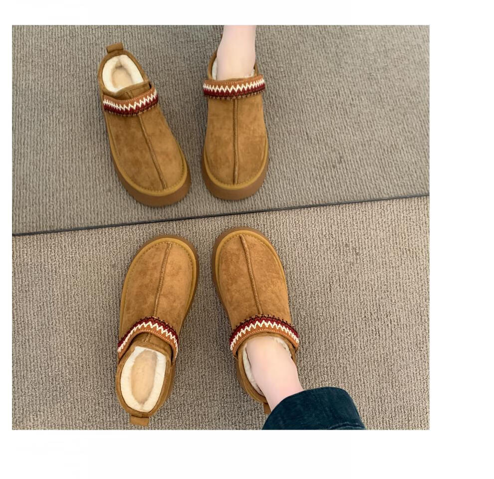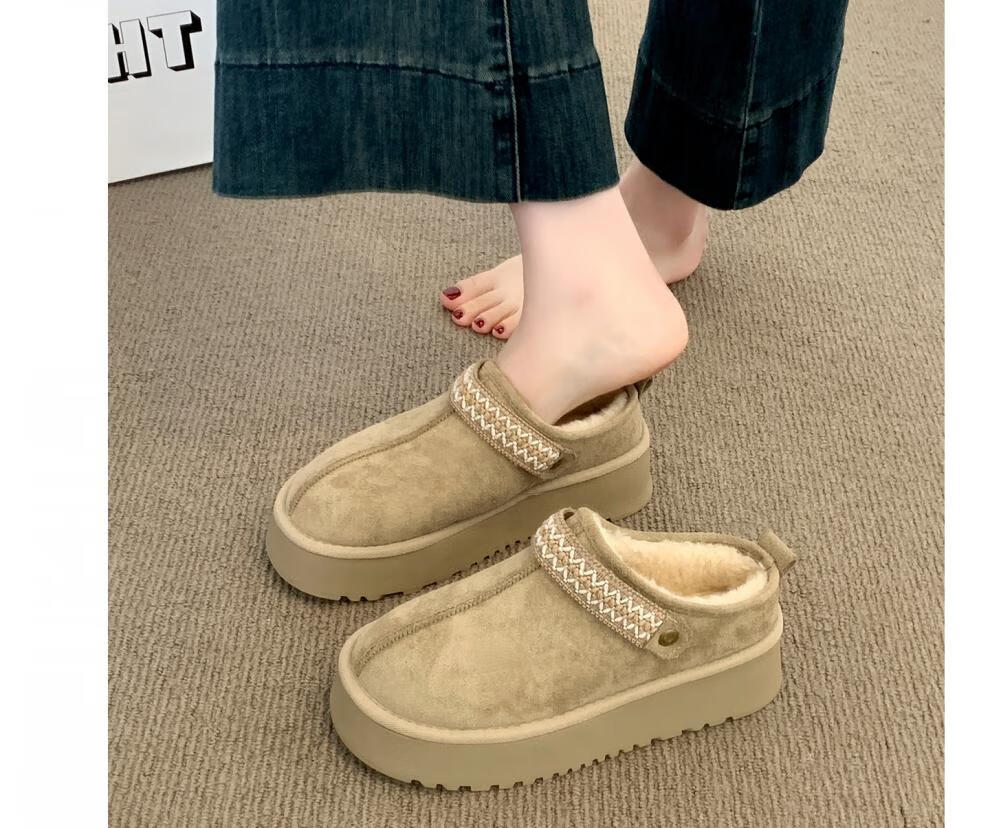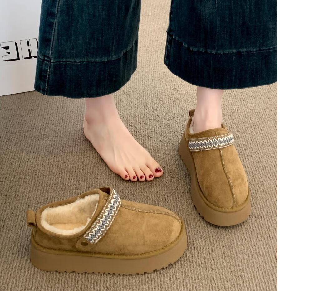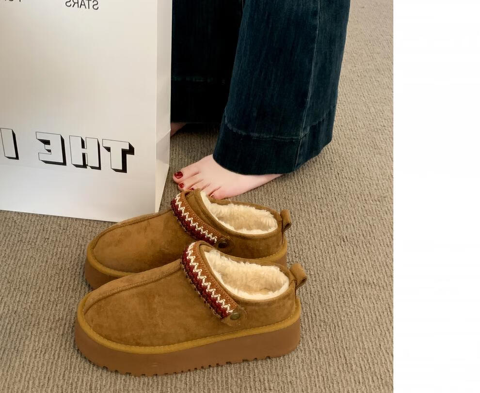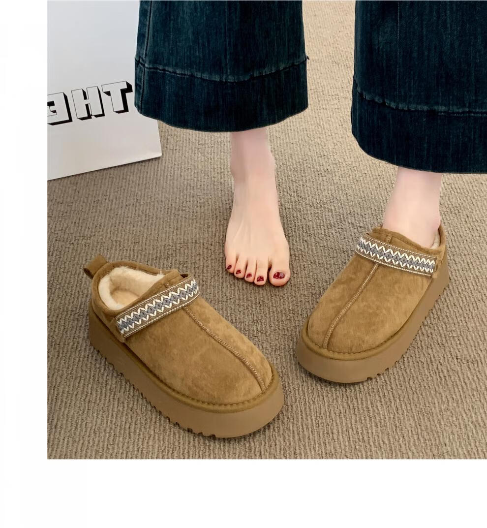 星期六毛绒雪地靴女款冬季加绒2025新款女鞋东北短筒棉鞋厚底保暖面包鞋 卡其色 【冬季保暖】跟高3cm 38