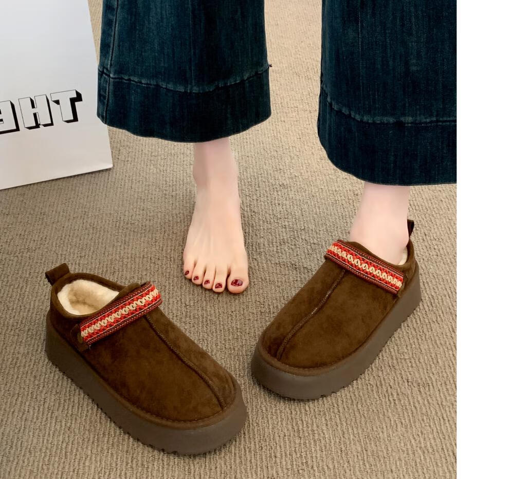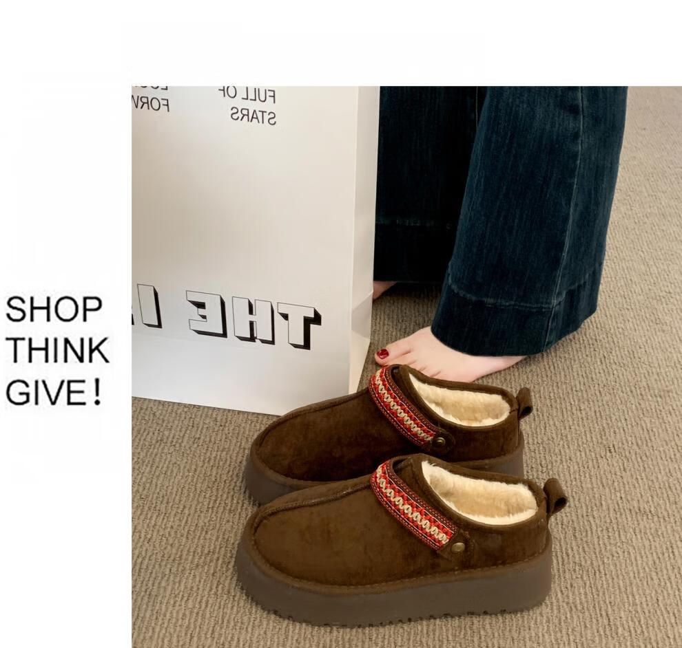 星期六厚底雪地靴女2025新款冬季加绒加厚面包鞋防滑短靴保暖棉鞋 咖啡色 【加绒保暖】 35