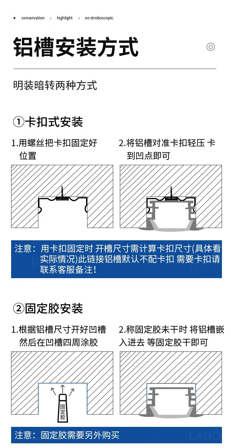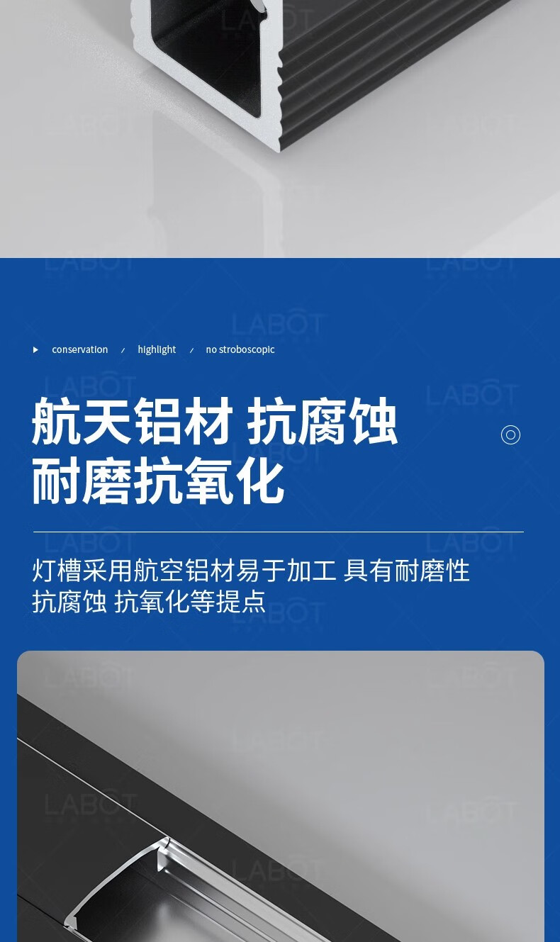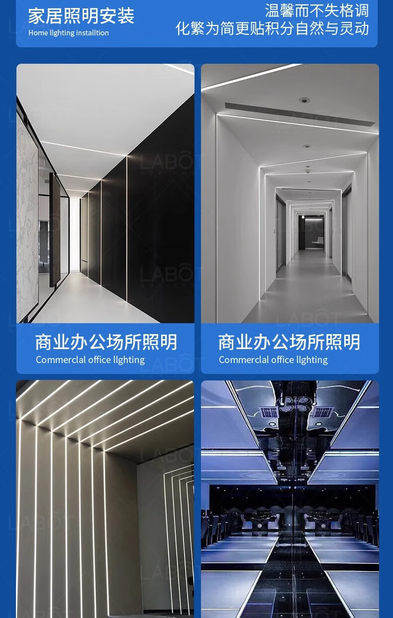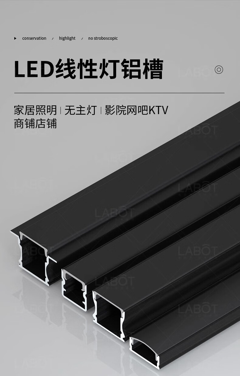 拉伯塔铝槽线形灯嵌入式线性灯吊顶暗装led线条灯铝合金灯槽明装线型灯 黑色不带边【8mm*9mm】