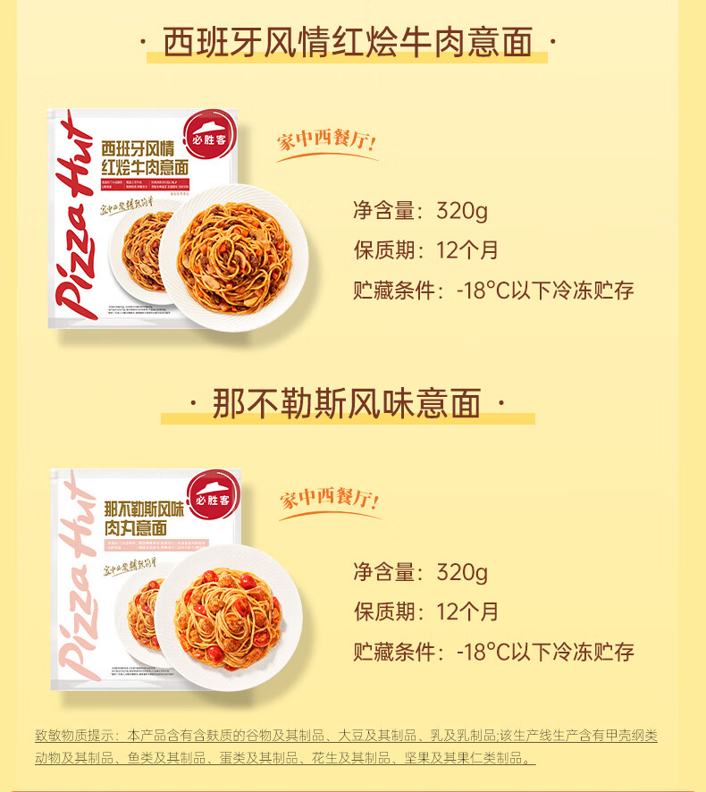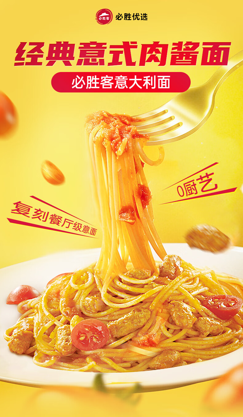 必胜客必胜优选经典意式番茄肉酱面400g*5袋家庭装儿童早餐速食意大利面