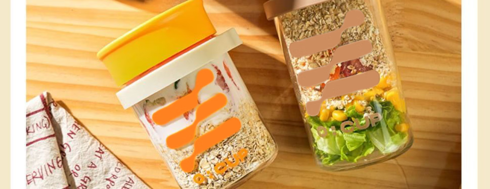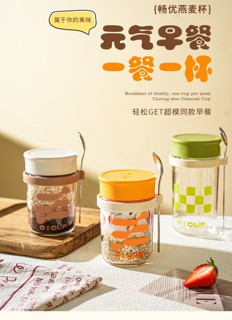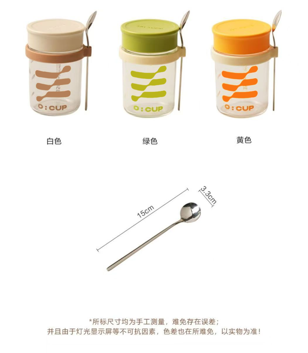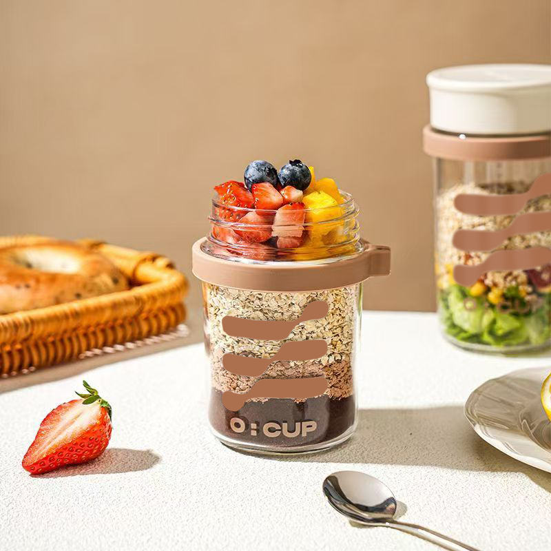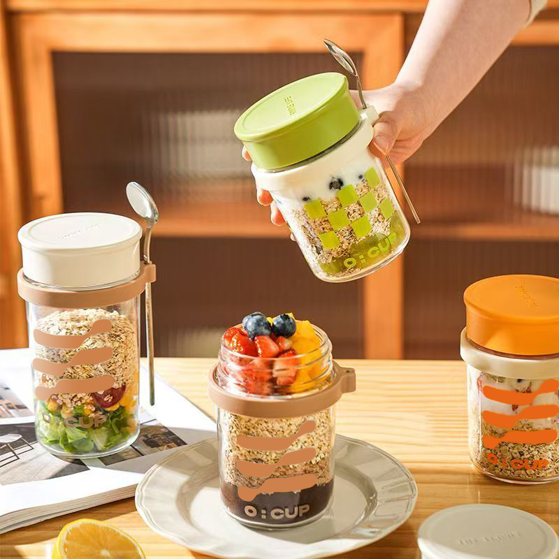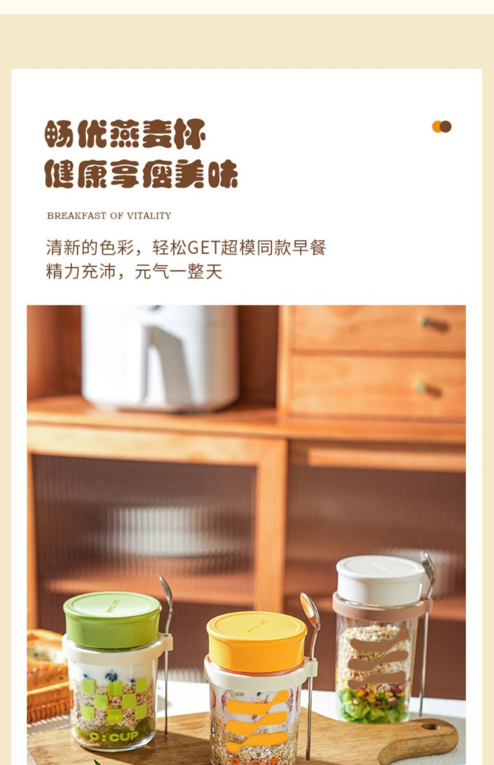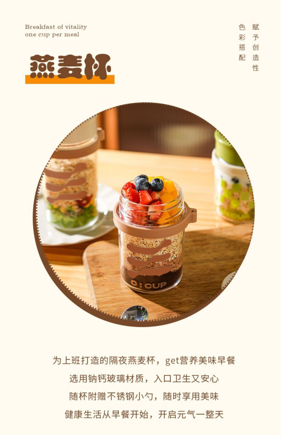 隔夜燕麦杯早餐杯玻璃杯密封便携带盖带勺子麦片杯梅森酸奶杯子 白色350ml【送勺子】单只装