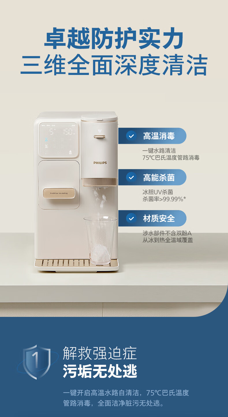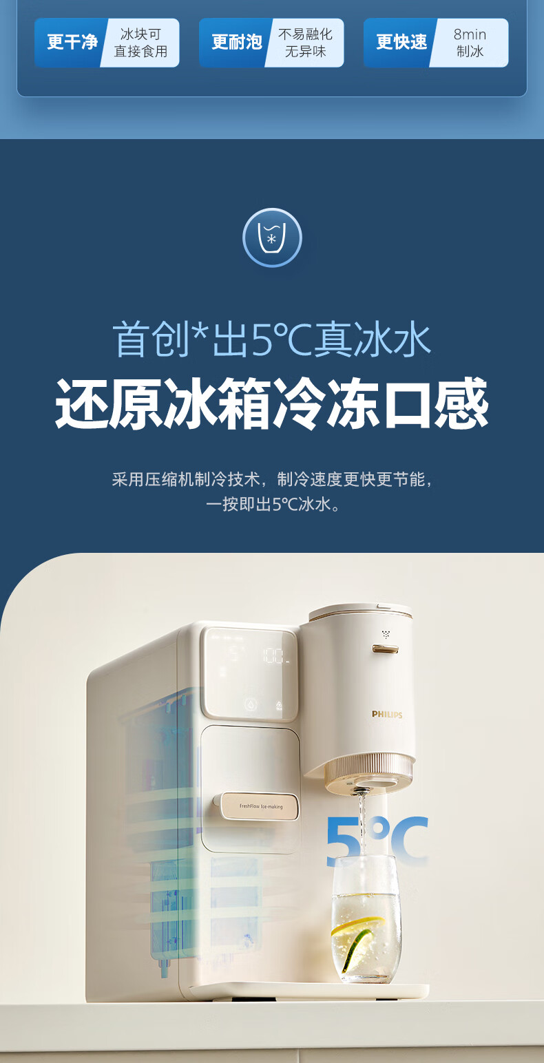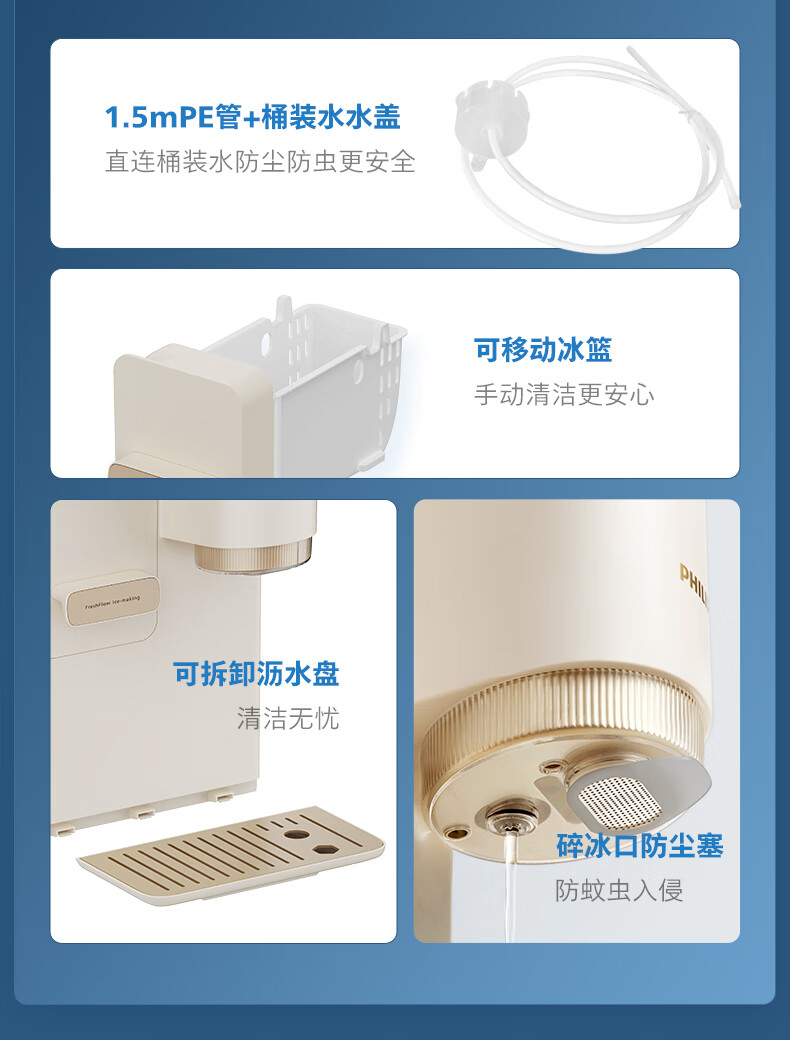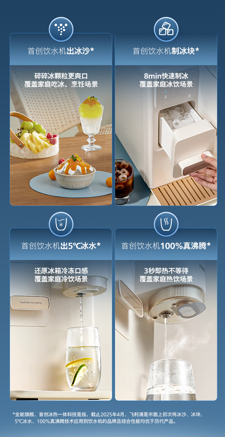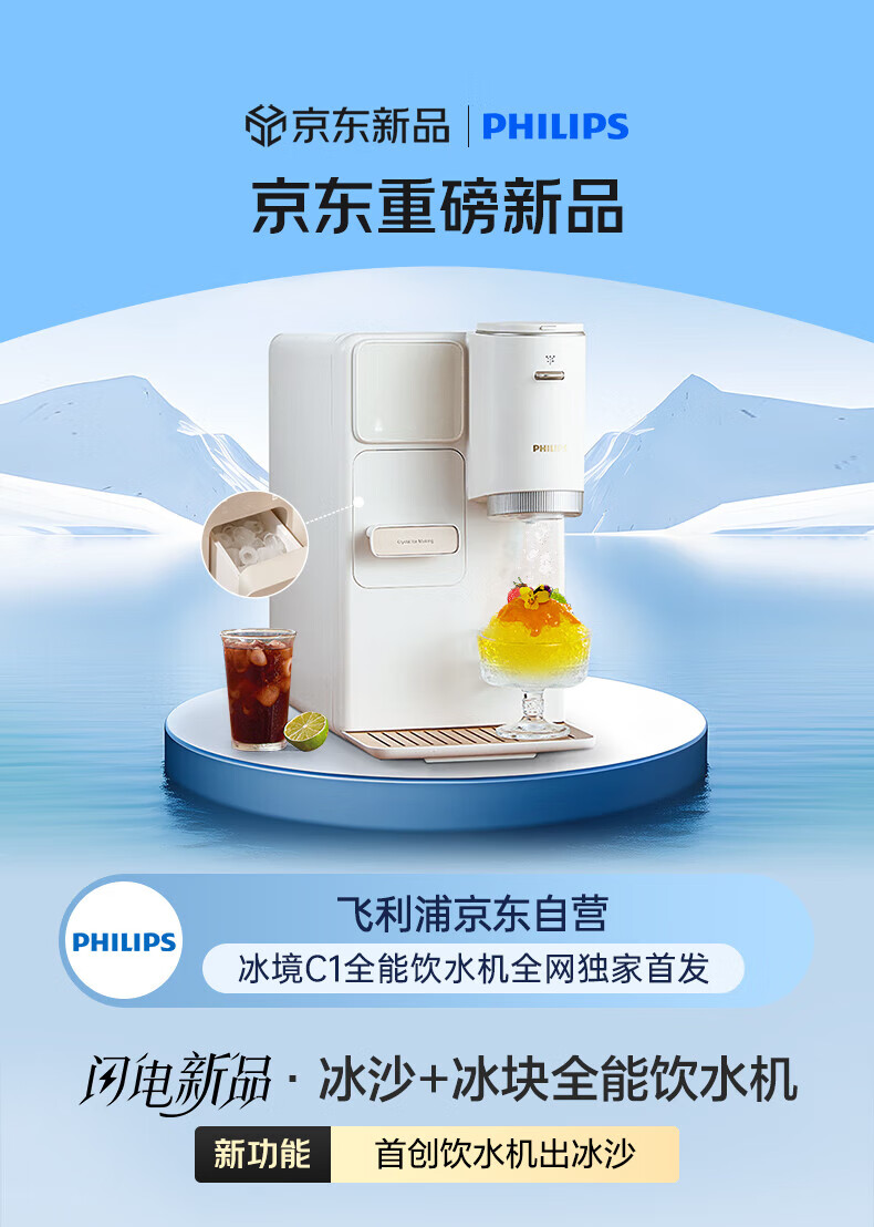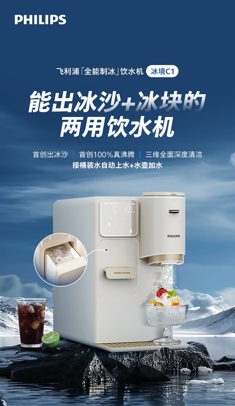 飞利浦(PHILIPS)制冰饮水机制冷即热式饮水机 制冰机冰沙冰块免安装全能四合一制热饮水机ADD8240冰境C1