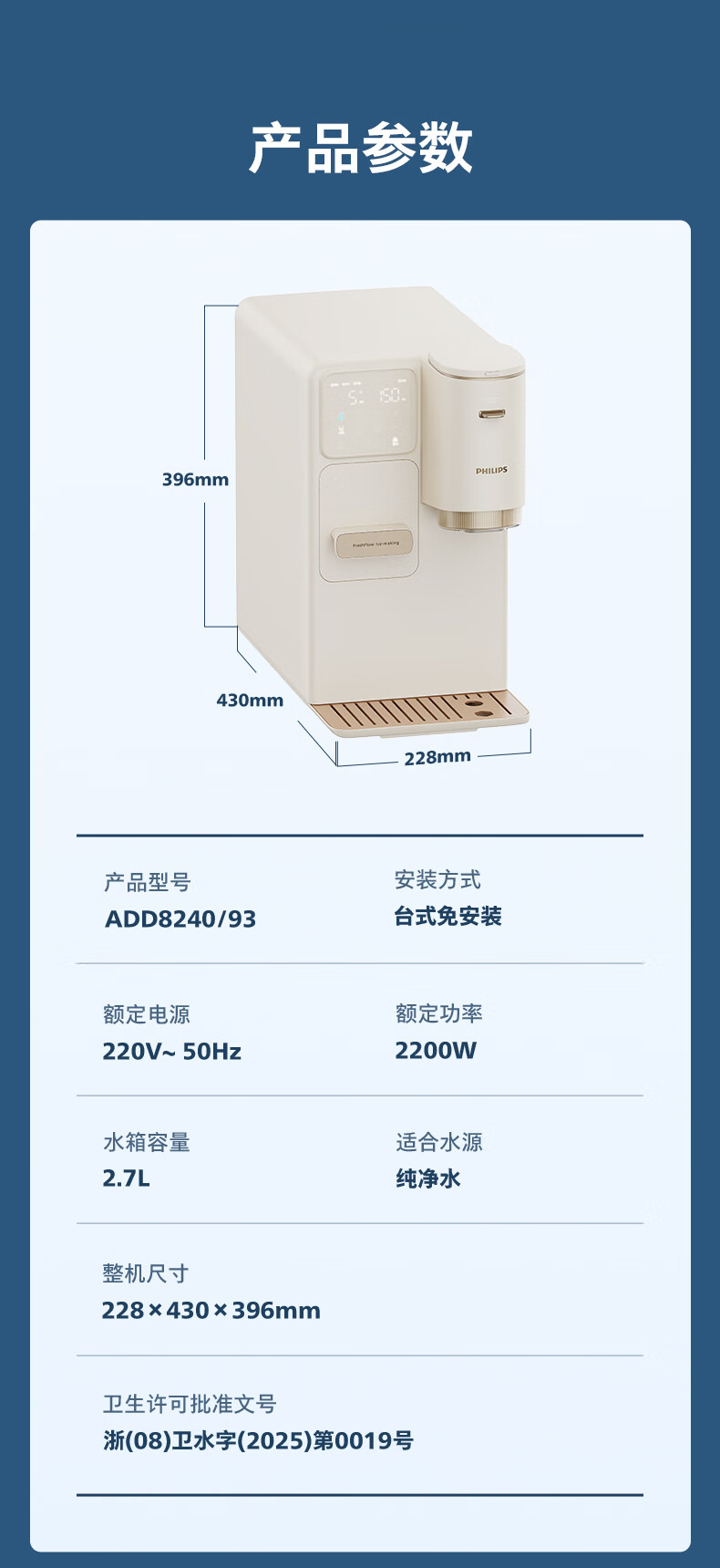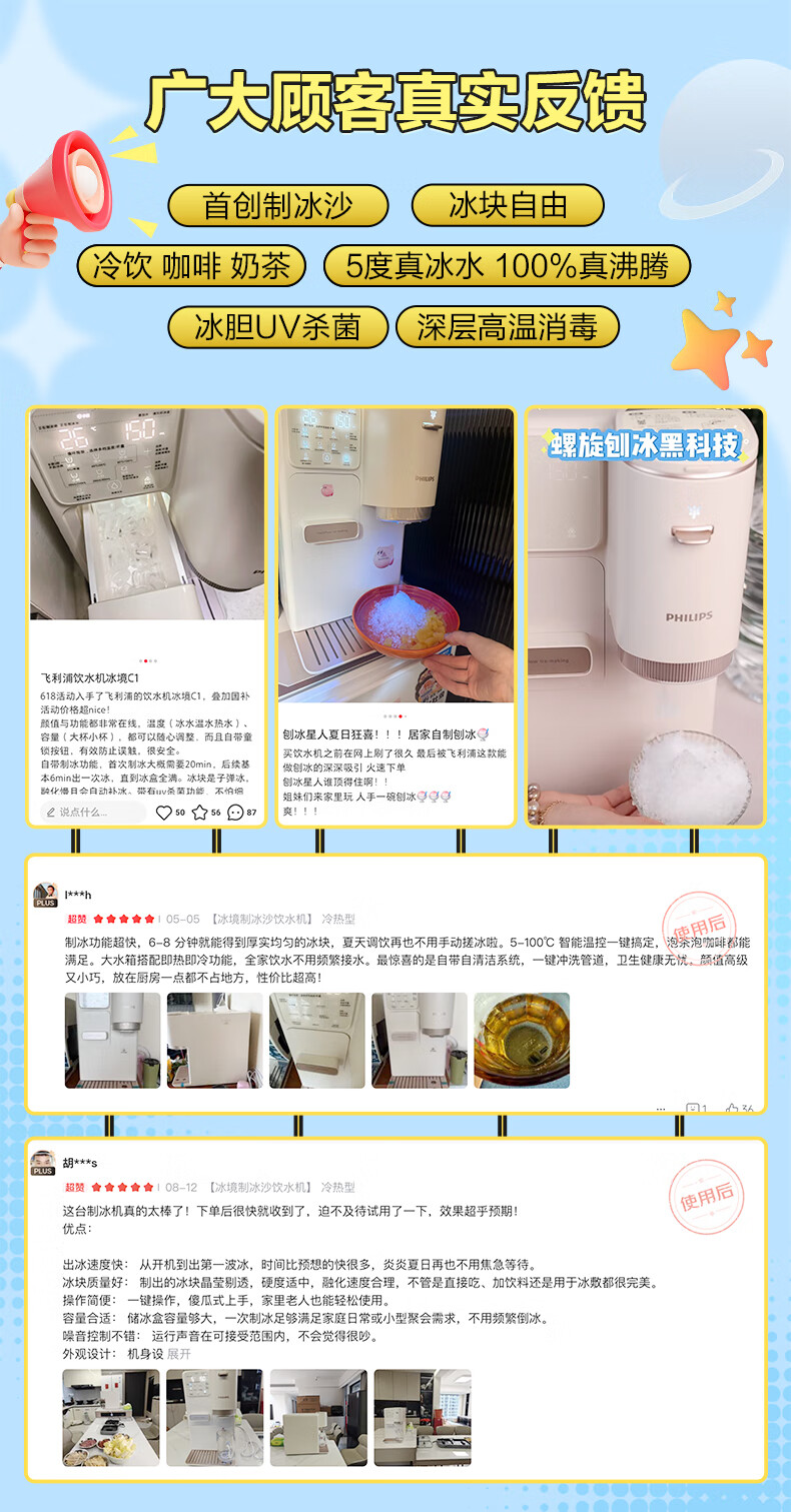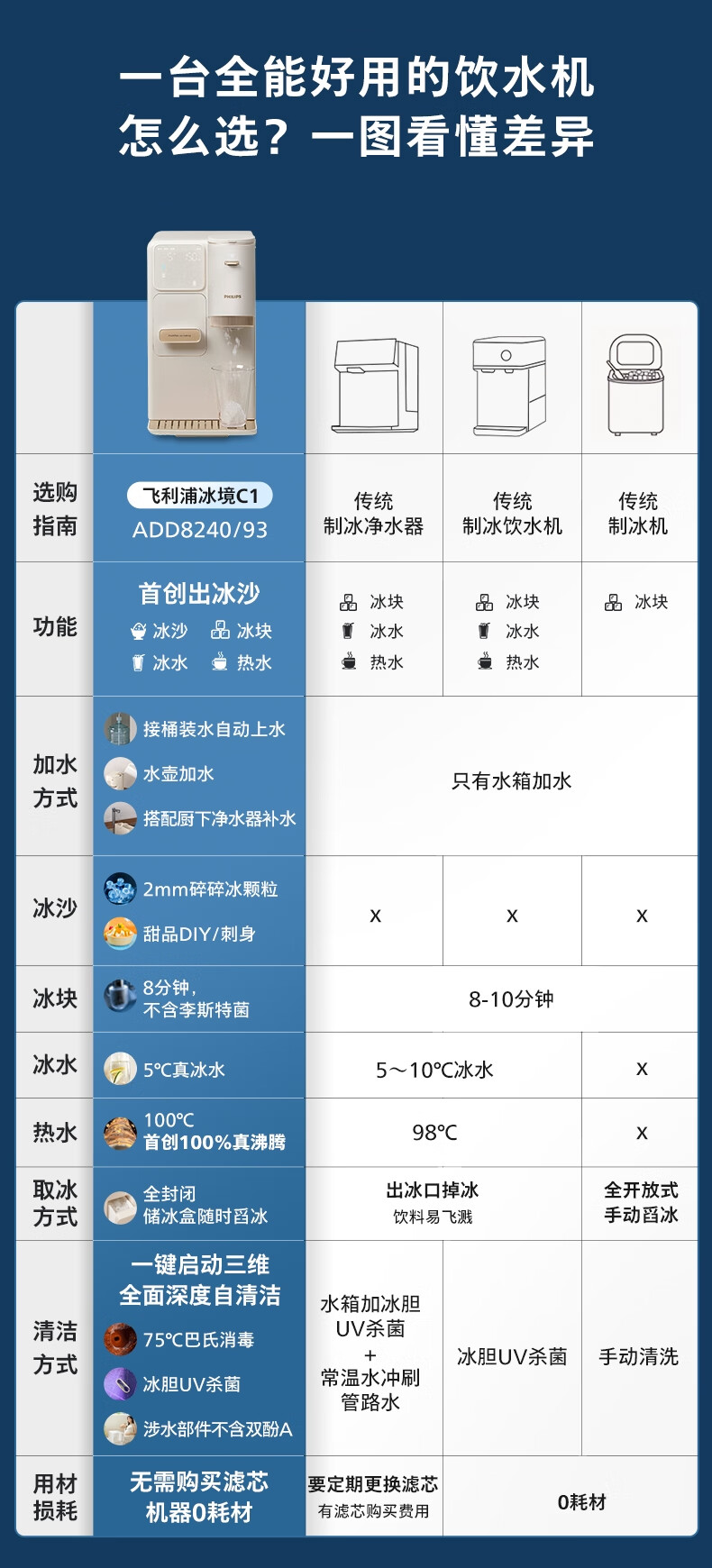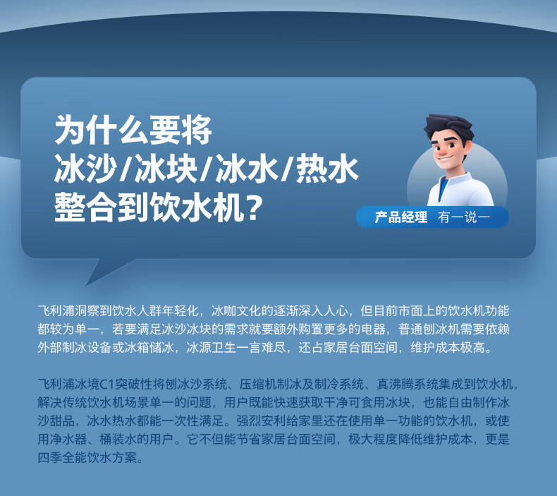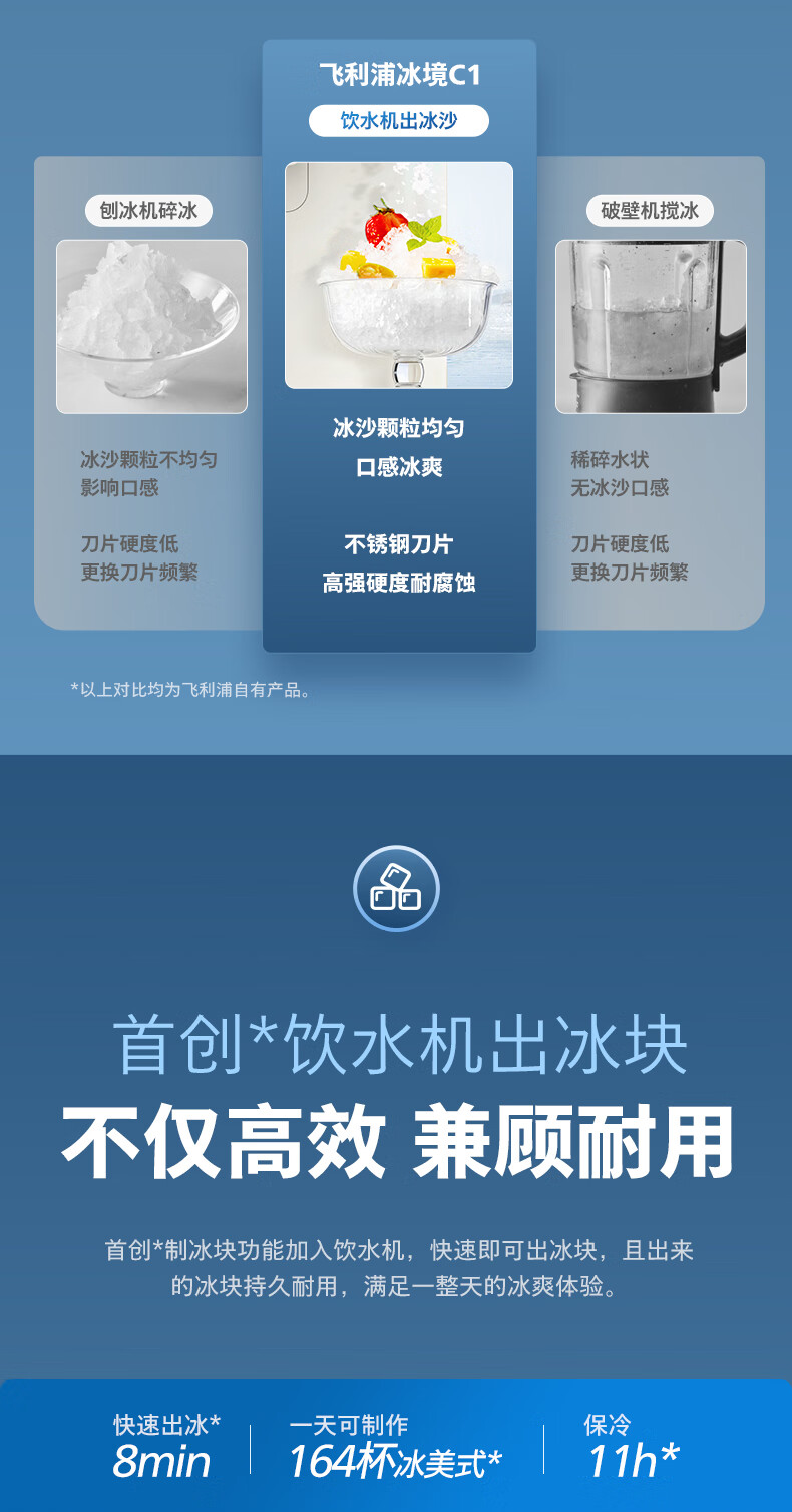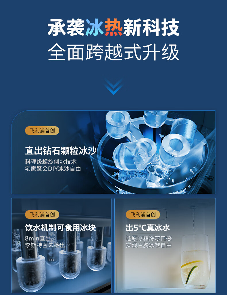 飞利浦(PHILIPS)制冰饮水机制冷即热式饮水机 制冰机冰沙冰块免安装全能四合一制热饮水机ADD8240冰境C1