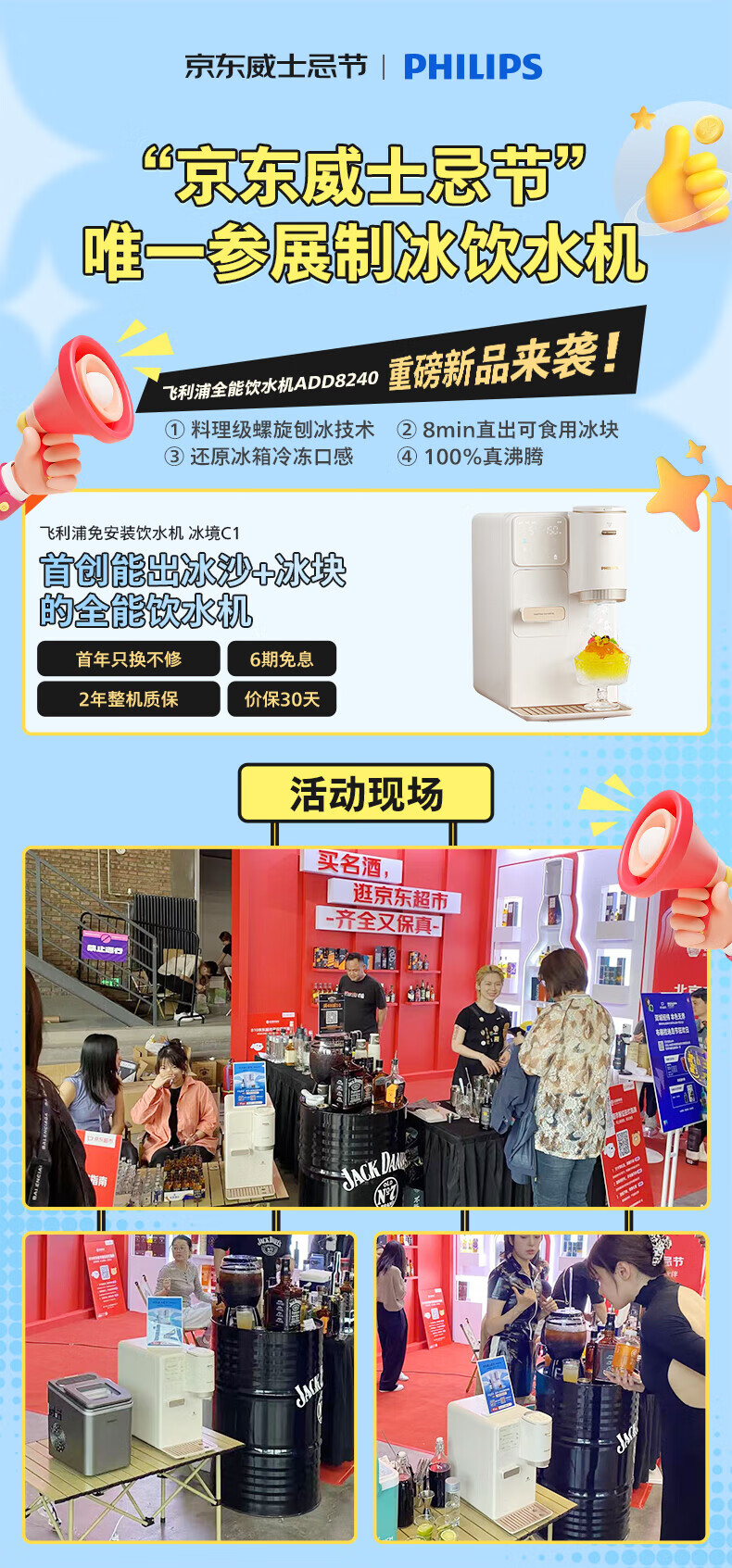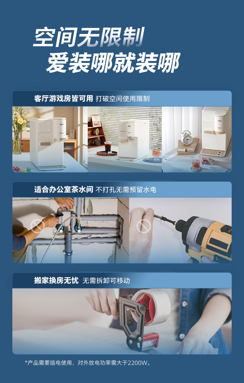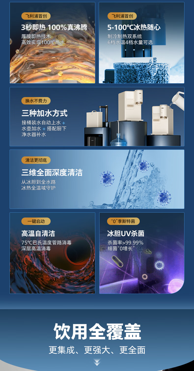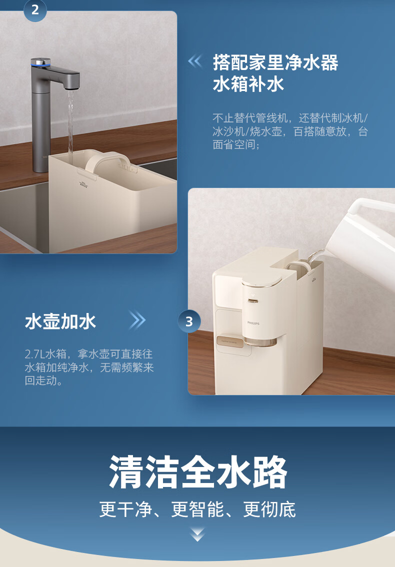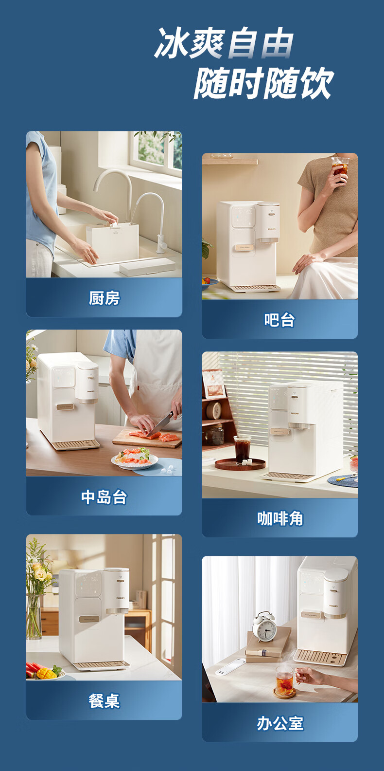 飞利浦(PHILIPS)制冰饮水机制冷即热式饮水机 制冰机冰沙冰块免安装全能四合一制热饮水机ADD8240冰境C1
