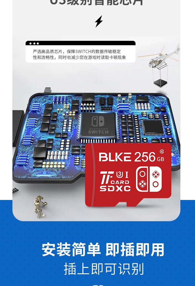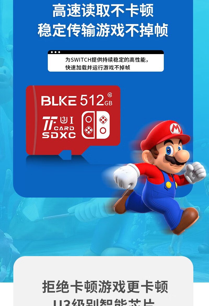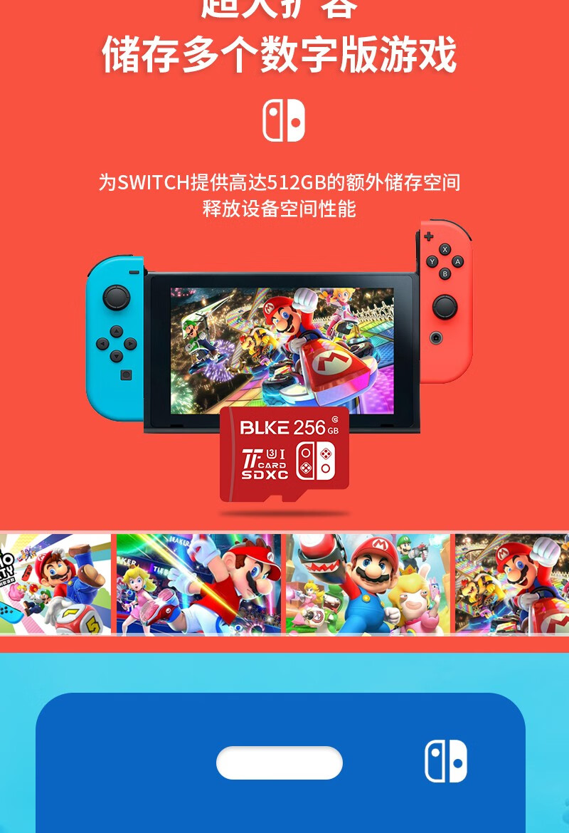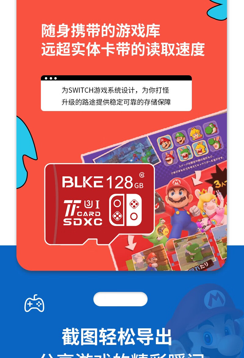 BLKE 适用任天堂switch2内存卡u3高速tf卡NS掌上游戏机sd卡国行/日港美版OLED主机存储卡microSD储存卡 游戏机专用高速内存卡 128G