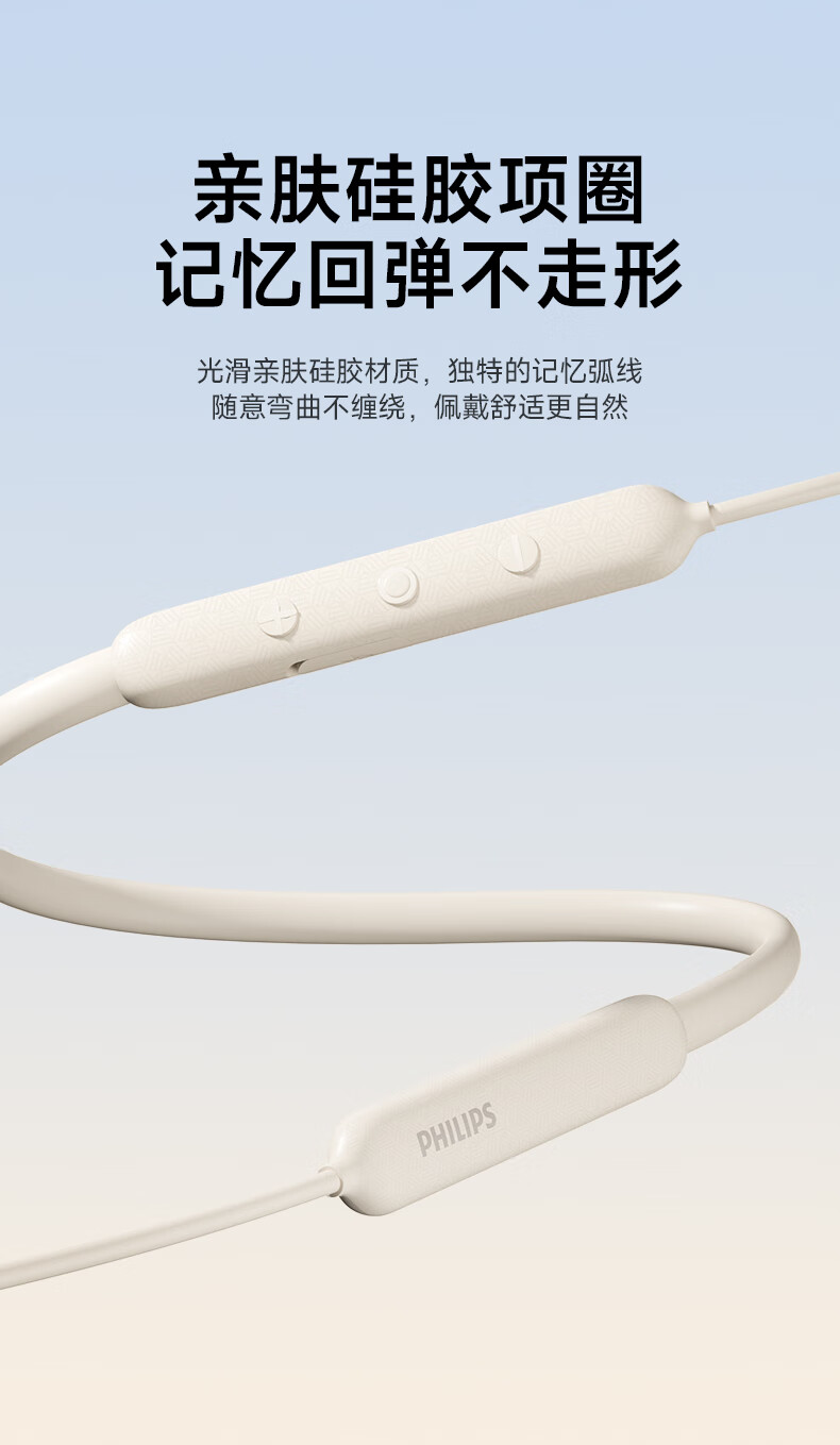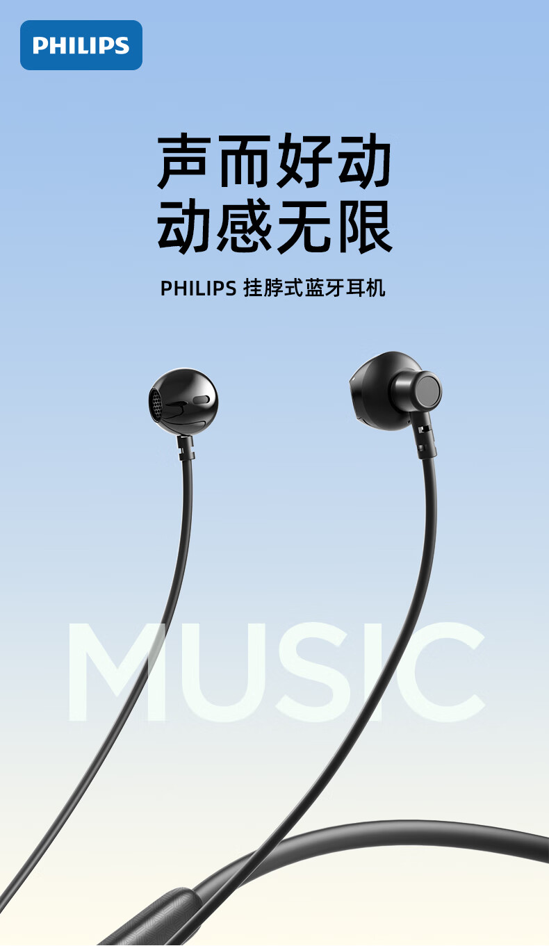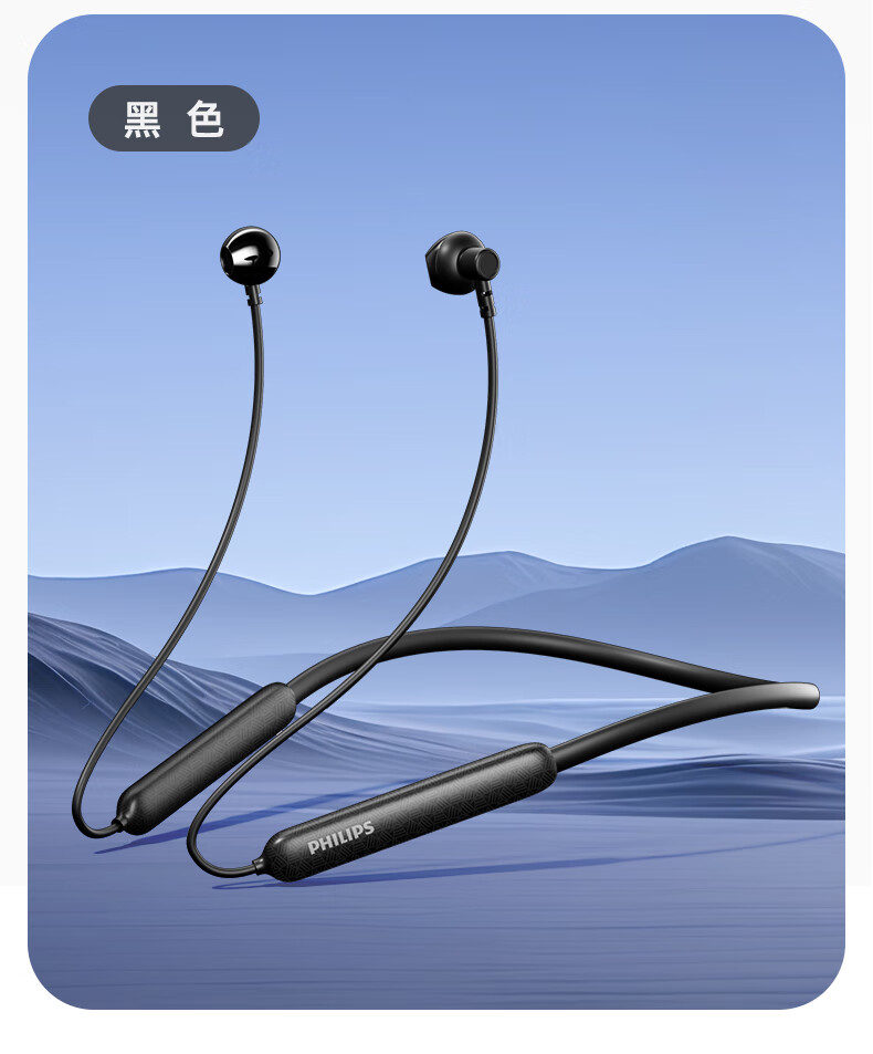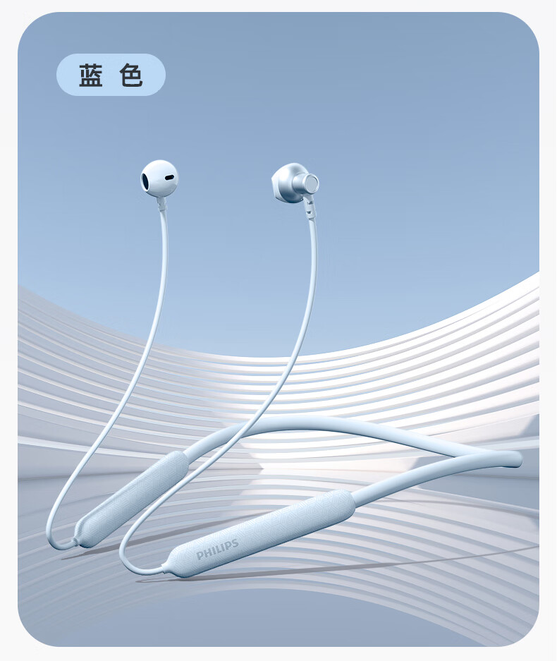 飞利浦(PHILIPS)颈挂式挂脖式运动无线蓝牙耳机 跑步学生成人运动耳机 防丢磁吸带麦可通话TAN1020 【深度降噪-超长续航】蓝色