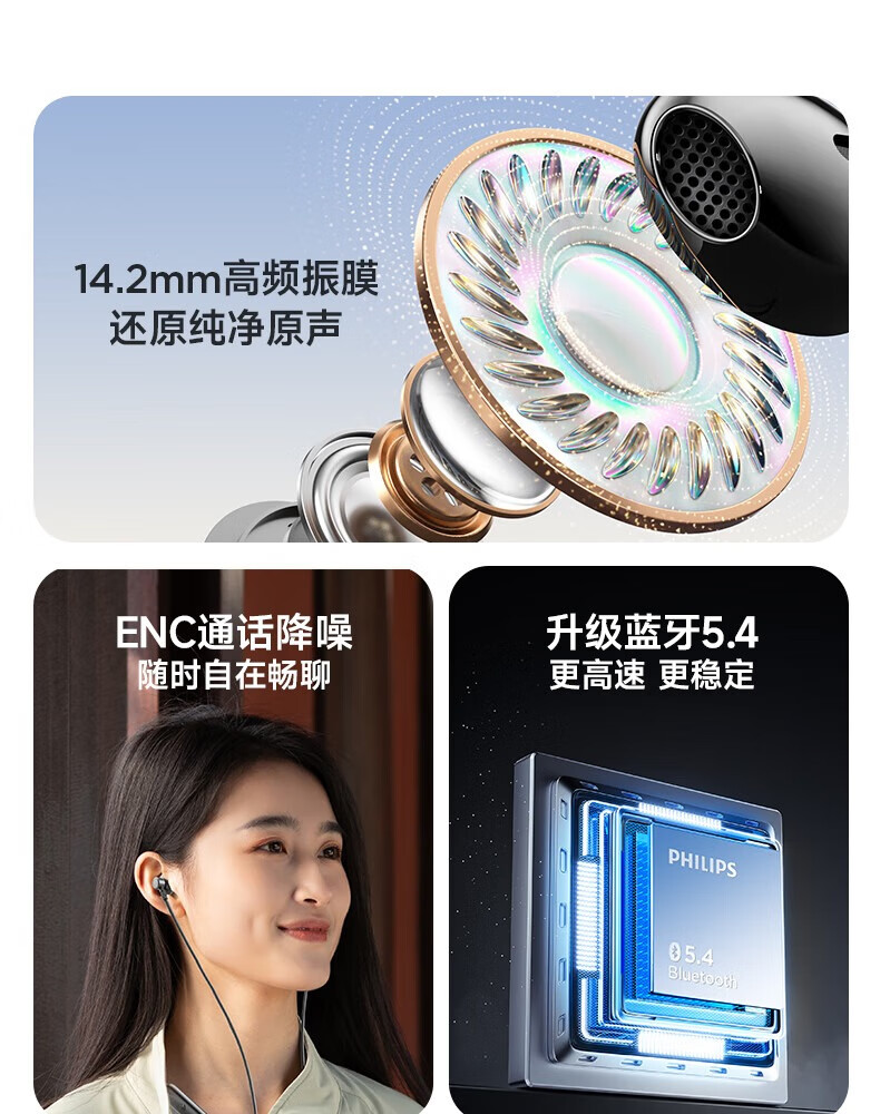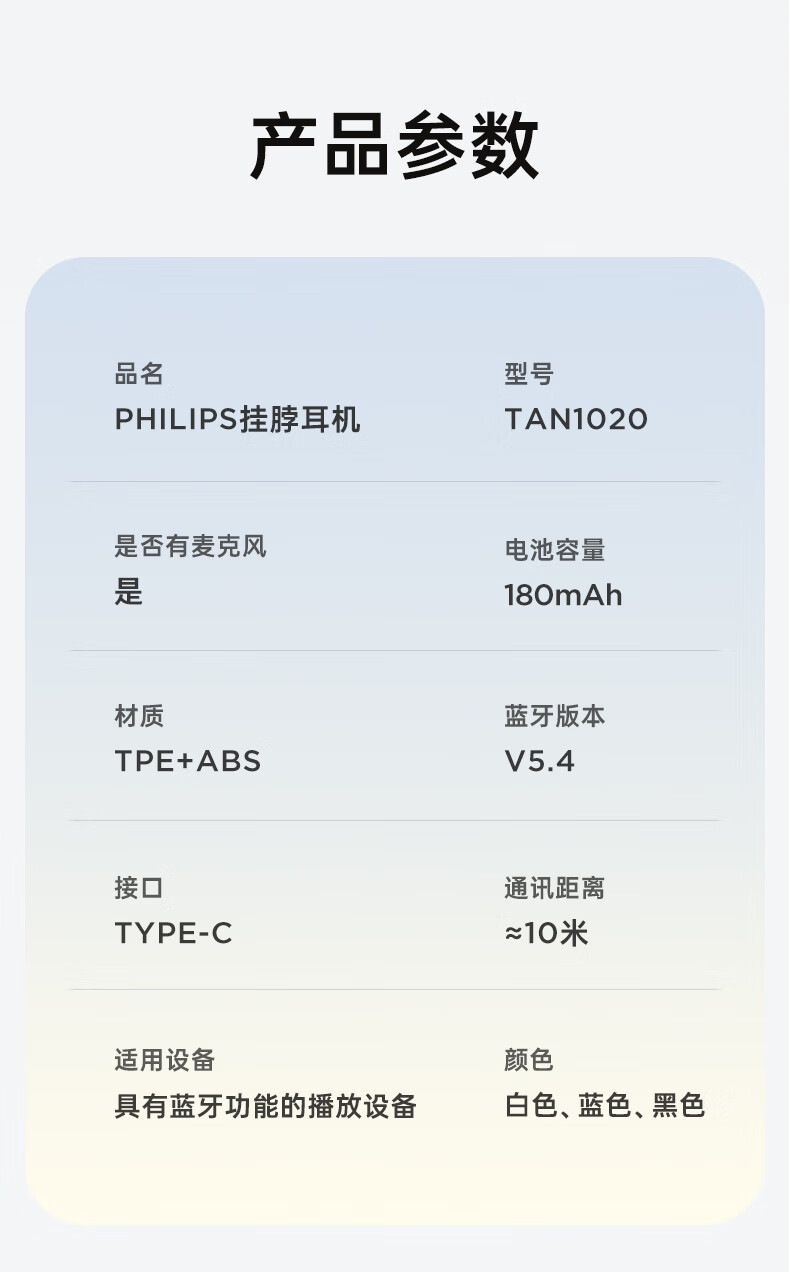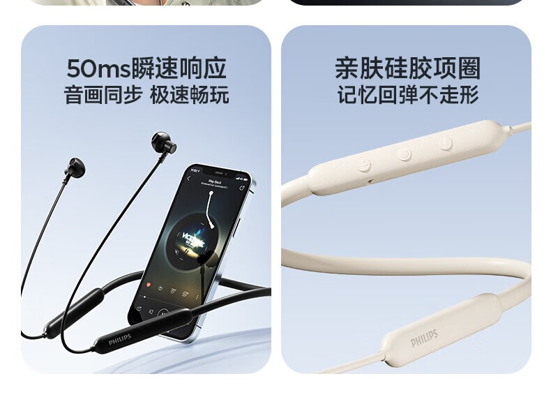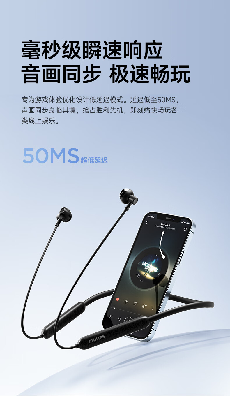 飞利浦(PHILIPS)颈挂式挂脖式运动无线蓝牙耳机 跑步学生成人运动耳机 防丢磁吸带麦可通话TAN1020 【深度降噪-超长续航】蓝色