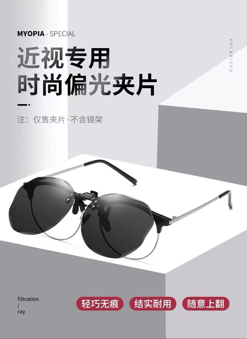 mikibobo太阳镜 墨镜男女 口袋折叠 近视专用套镜 开车防紫外线UV400 折叠雾透灰