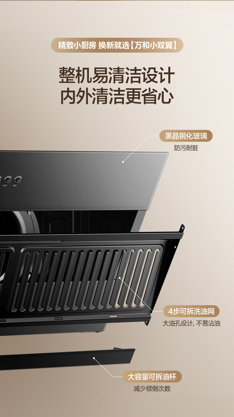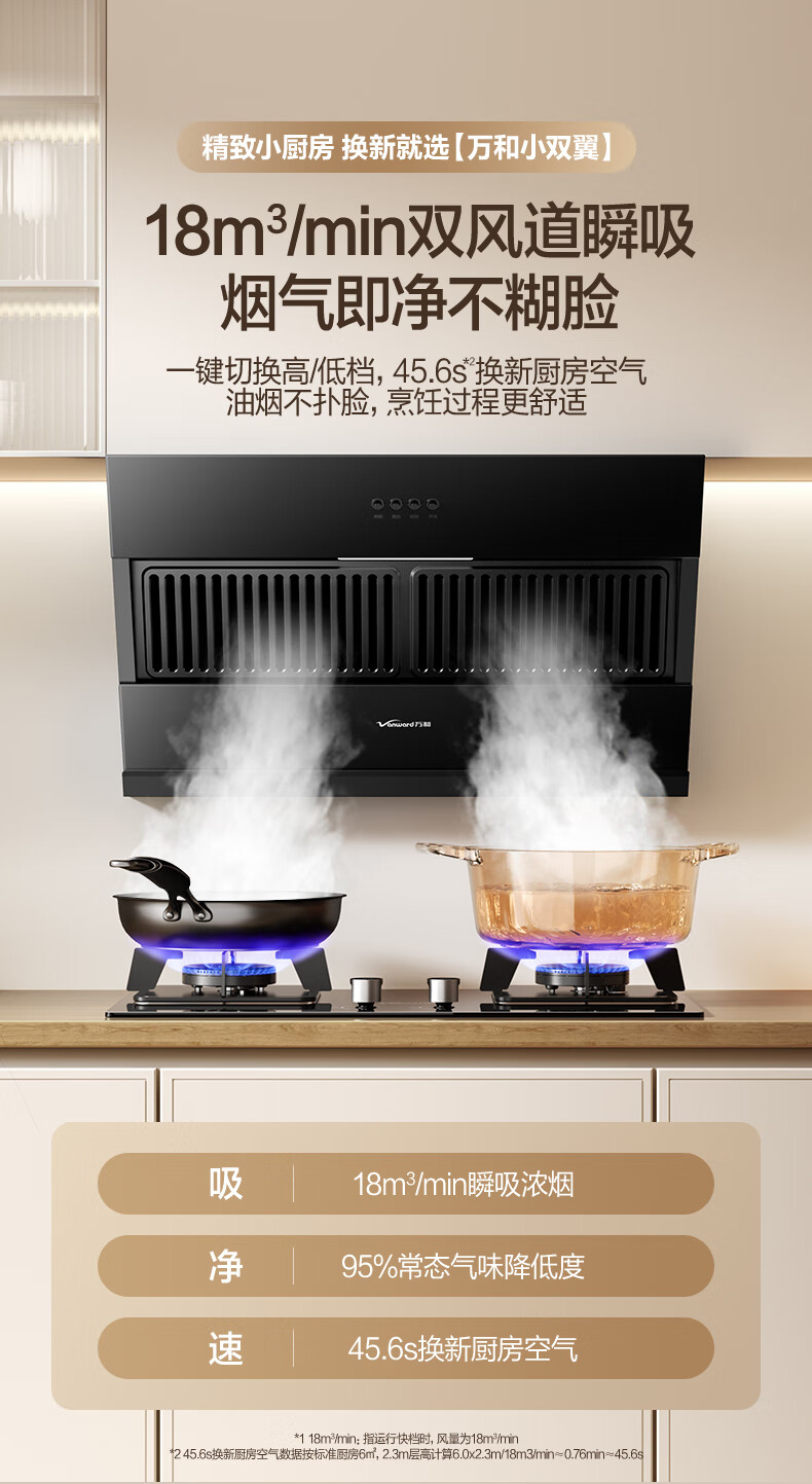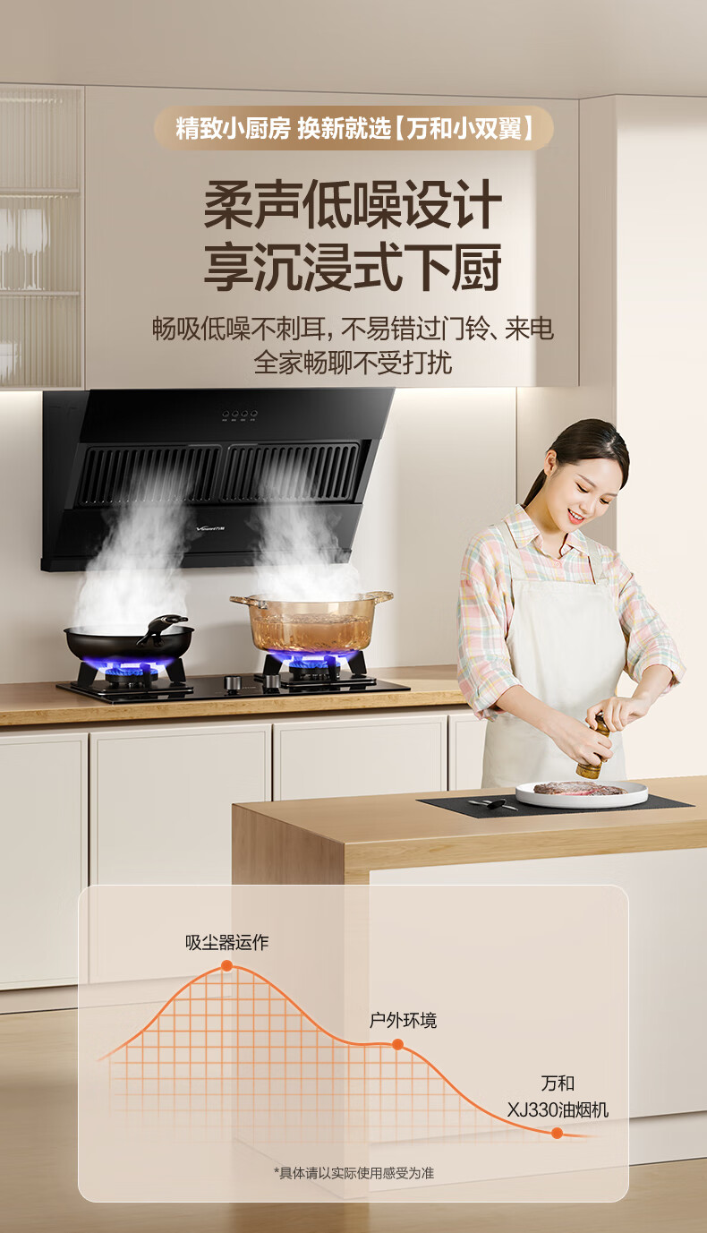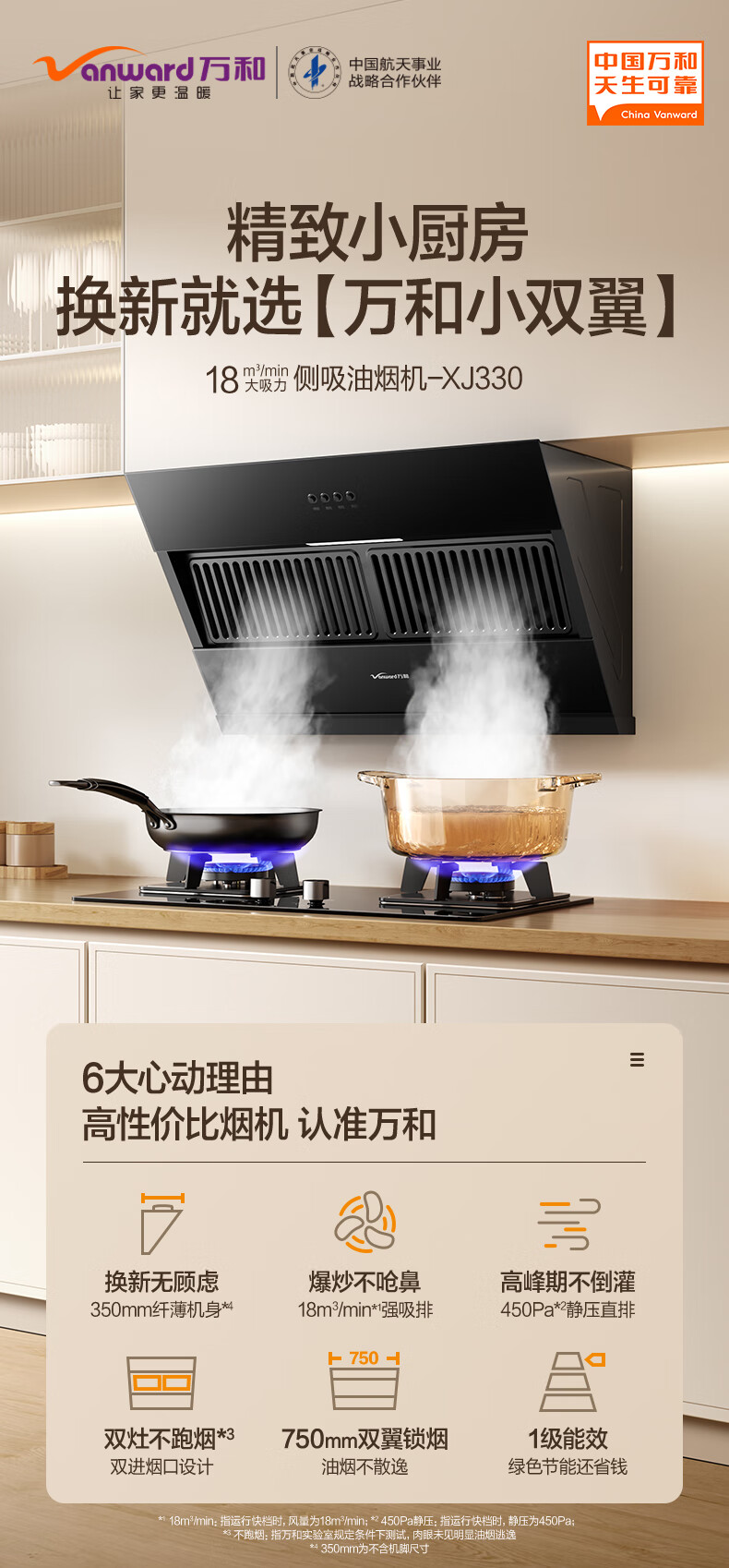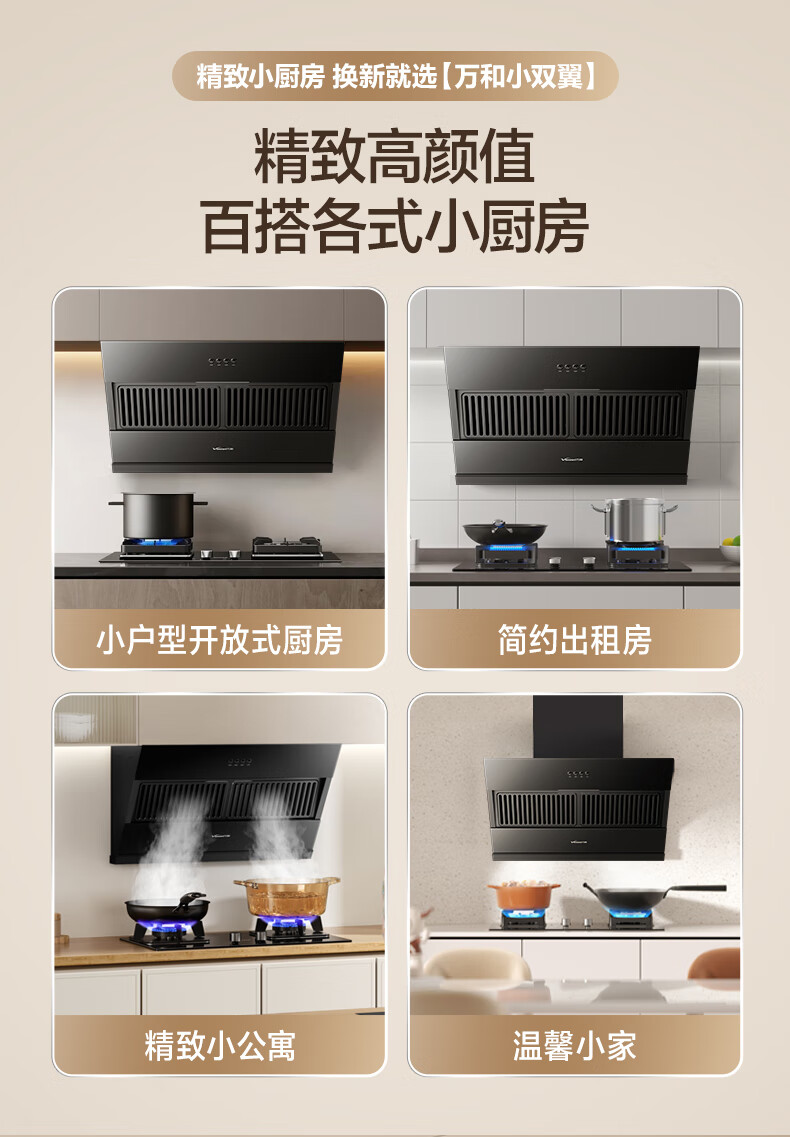万和(Vanward)【小双翼XJ330·1腔对1灶】侧吸抽排油烟机家用18风量大吸力小尺寸出租房一级能效家电国家补贴20%