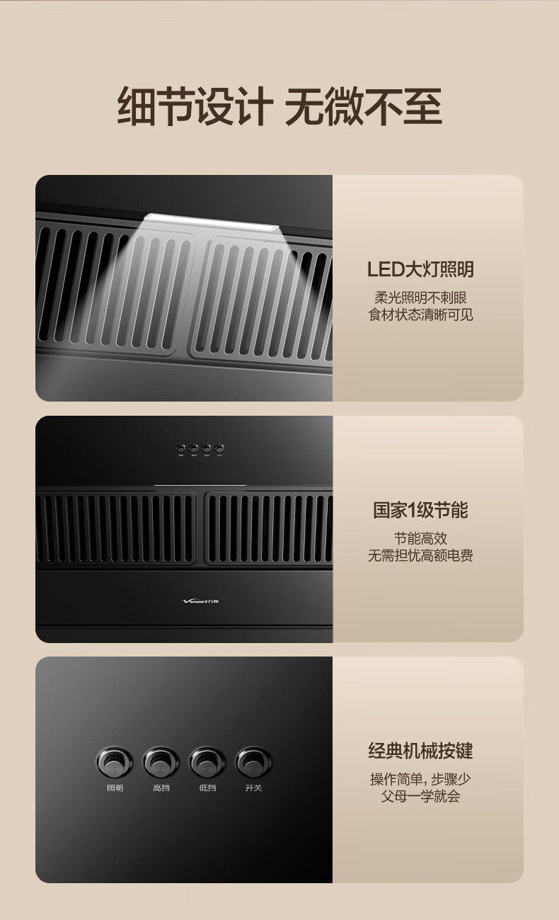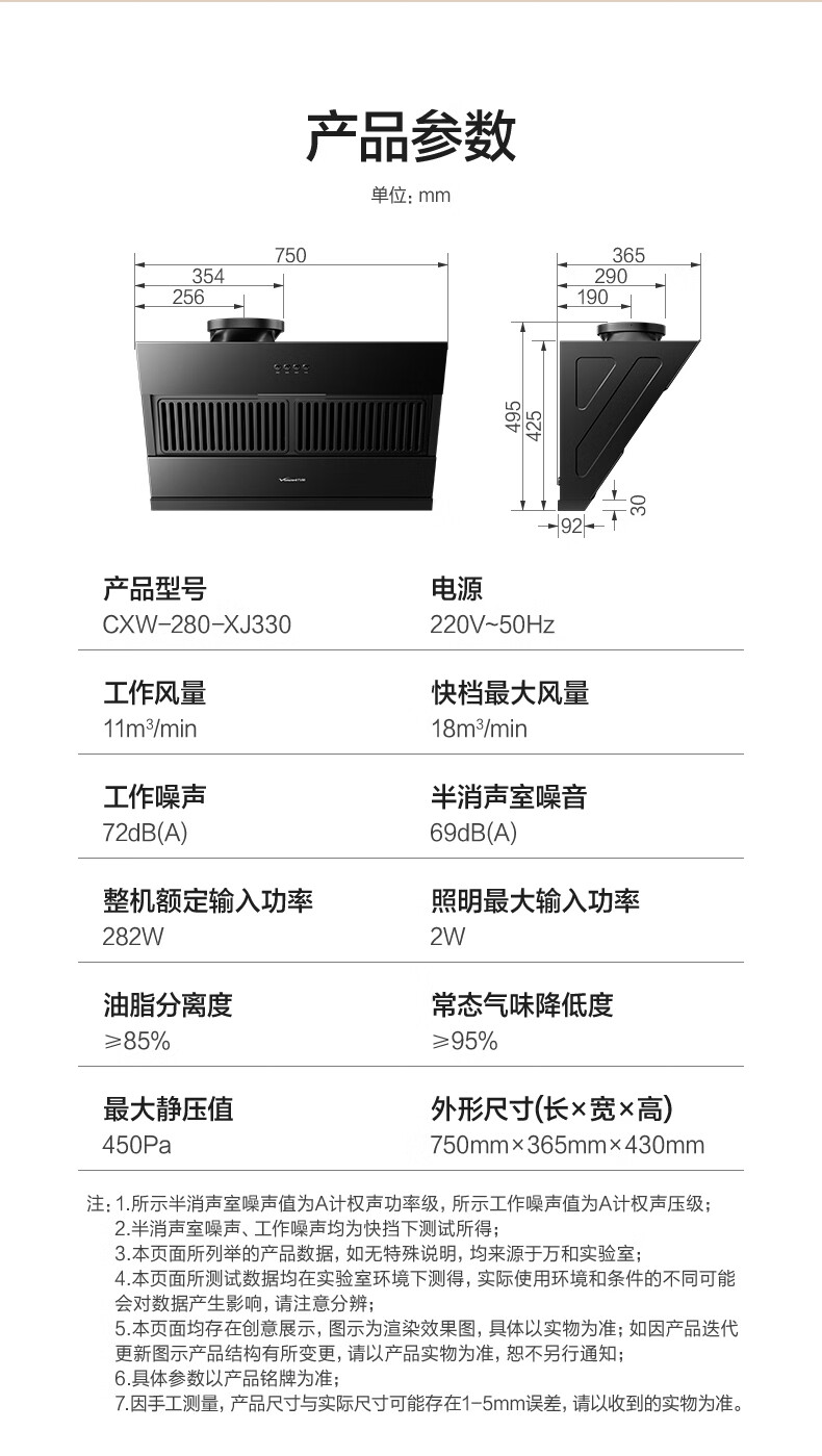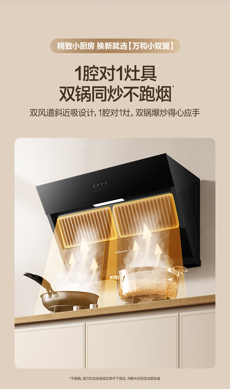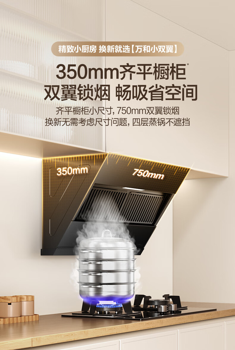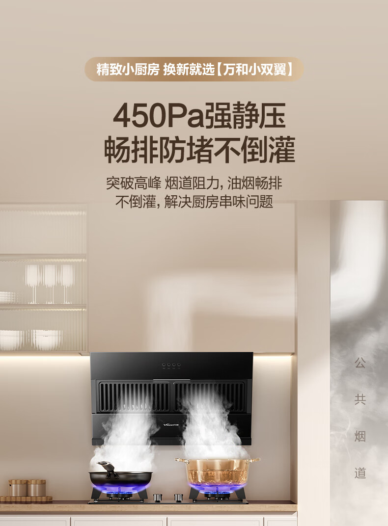 万和(Vanward)【小双翼XJ330·1腔对1灶】侧吸抽排油烟机家用18风量大吸力小尺寸出租房一级能效家电国家补贴20%
