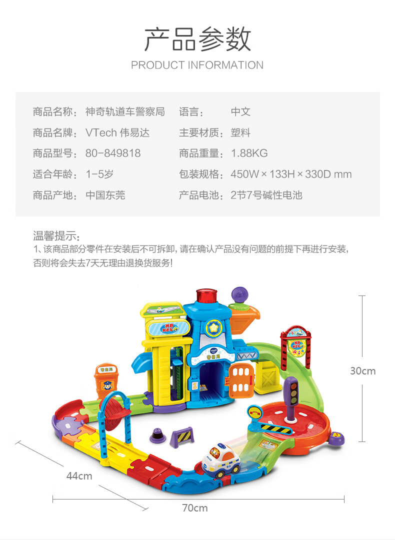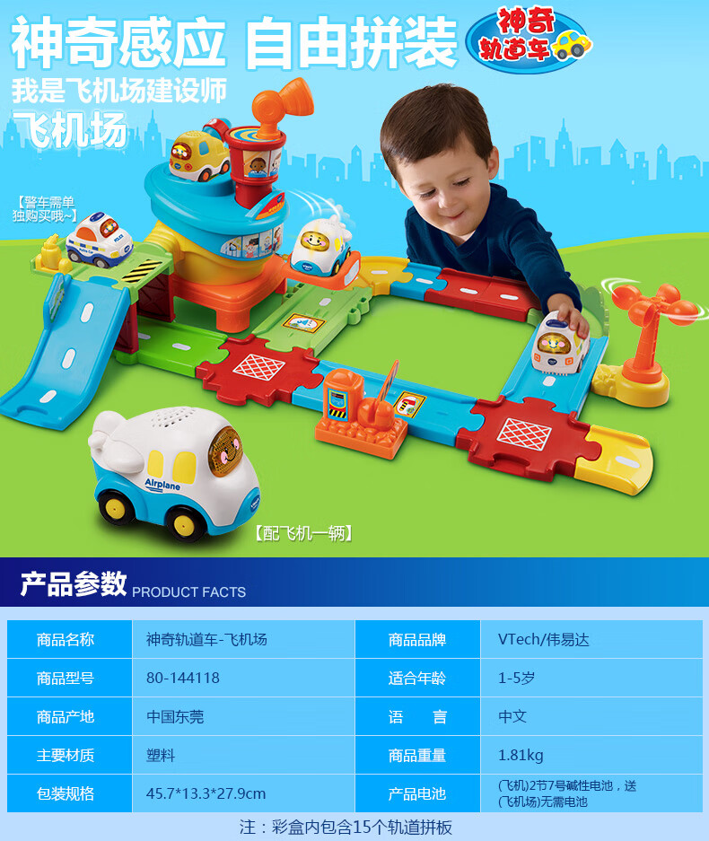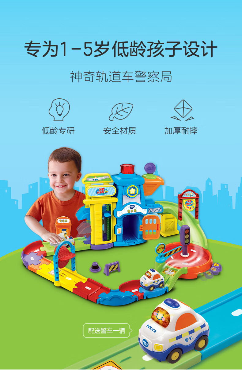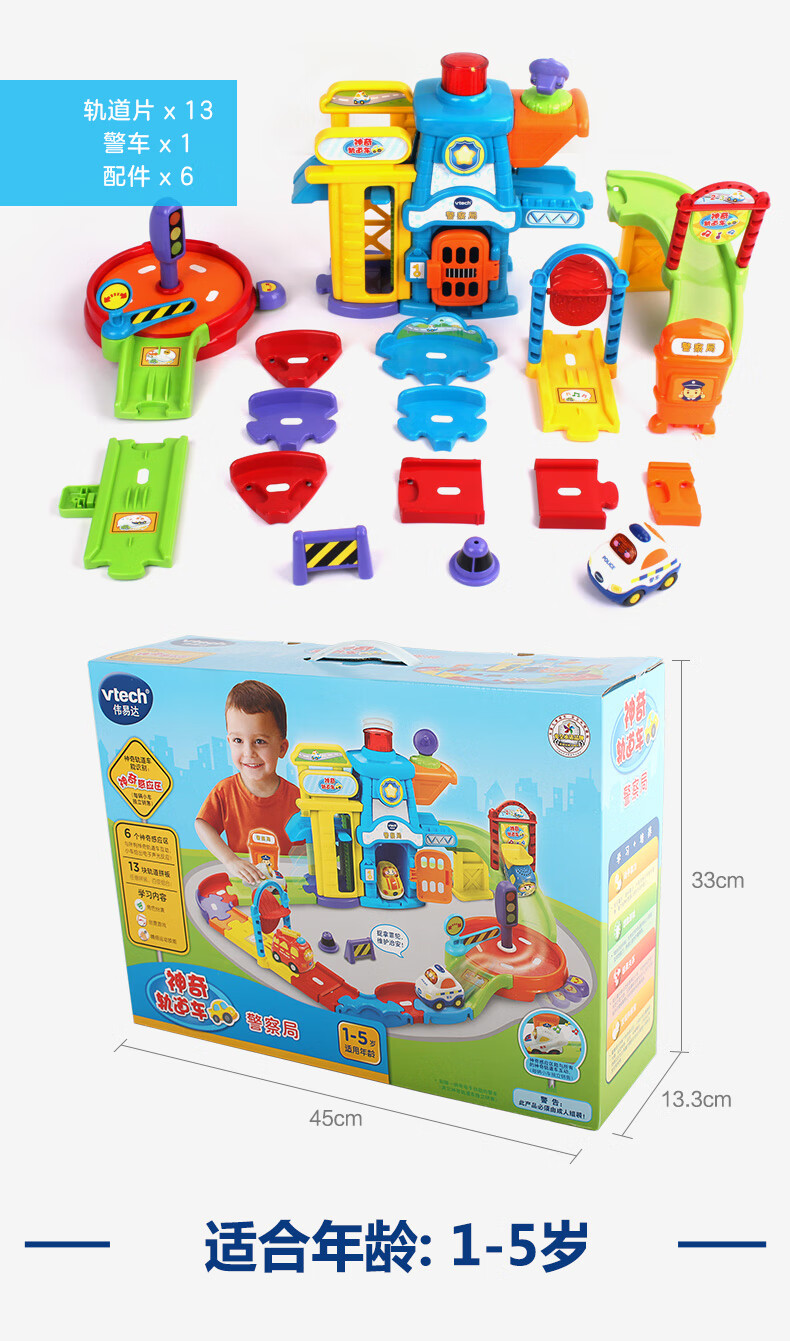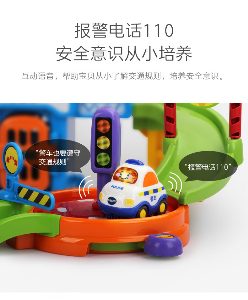 伟易达(Vtech)儿童玩具神奇轨道车警察局电动火车站消防局飞机场男女孩生日礼物 警察局套装【配警车*1】