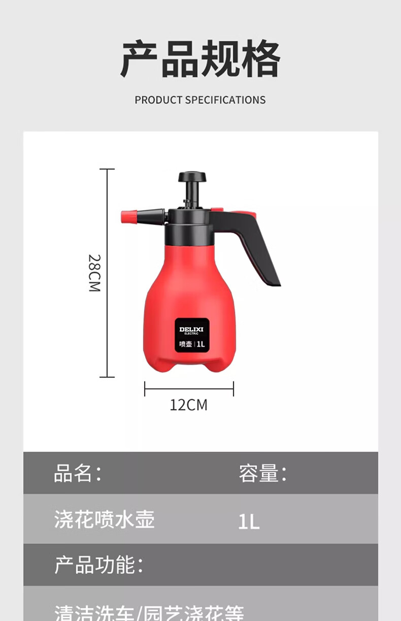 德力西喷壶气压式喷水浇花喷壶浇水喷雾器家用小型洒水壶喷雾瓶 【气压式】喷壶1L