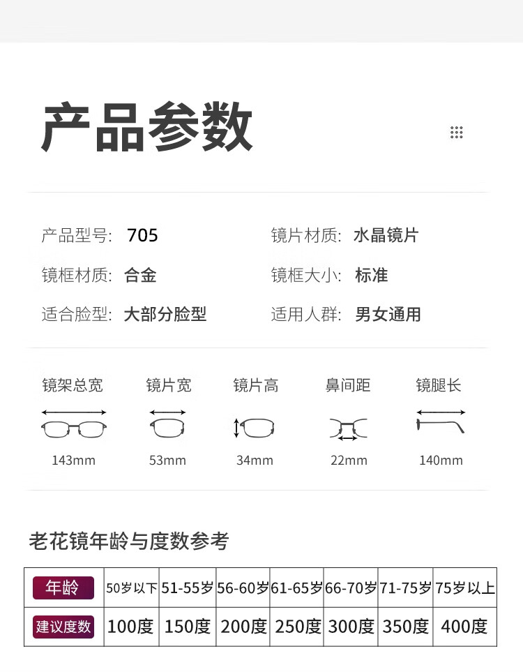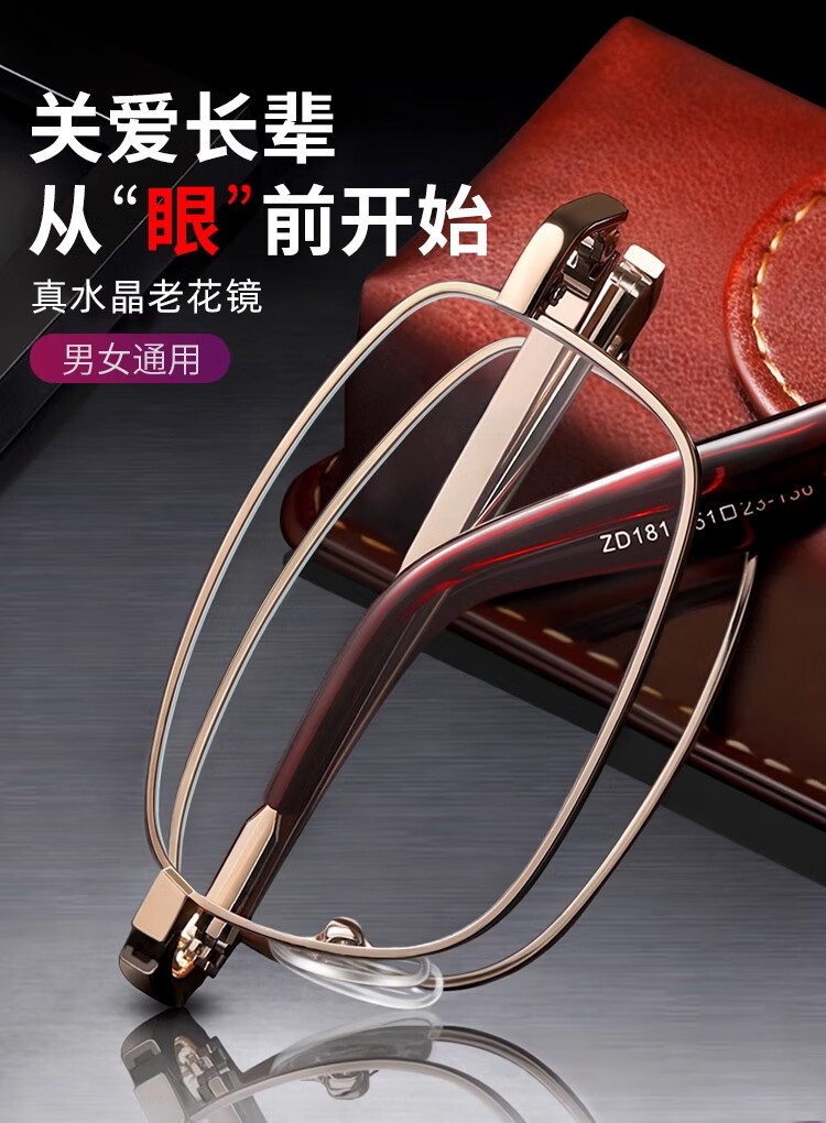 LESCA LUNETIER高档天然水晶石老花镜男款女折叠便携式高清老人老光眼镜正品开学
