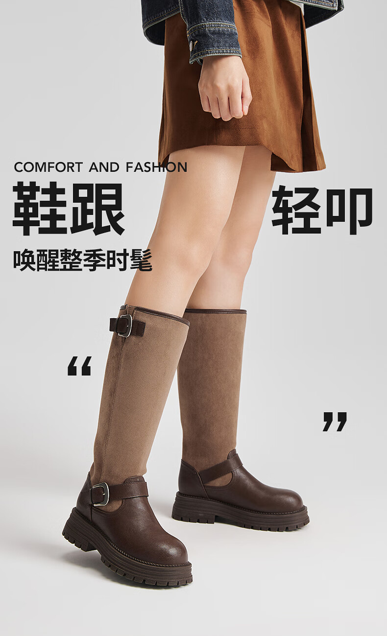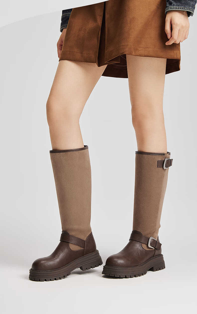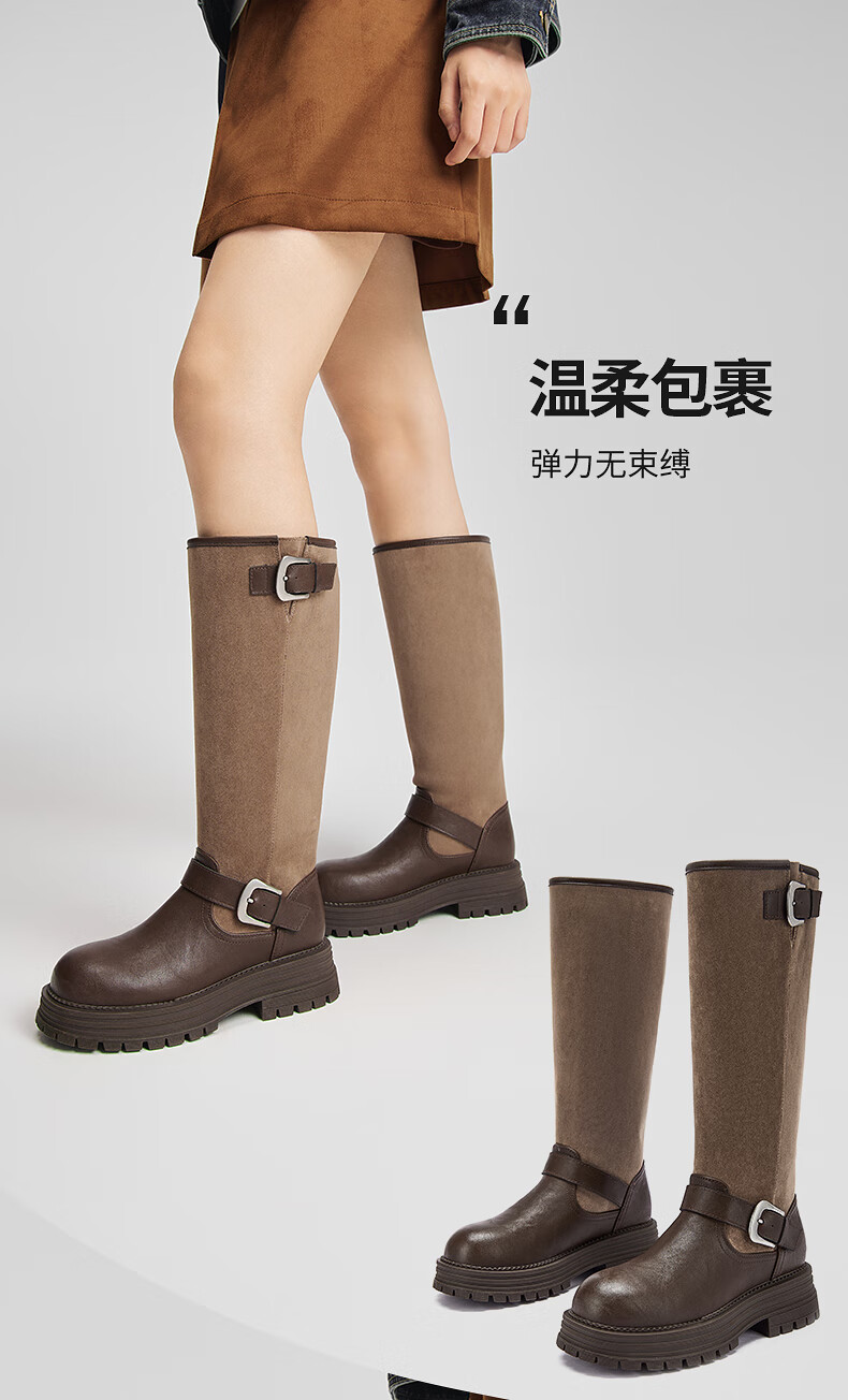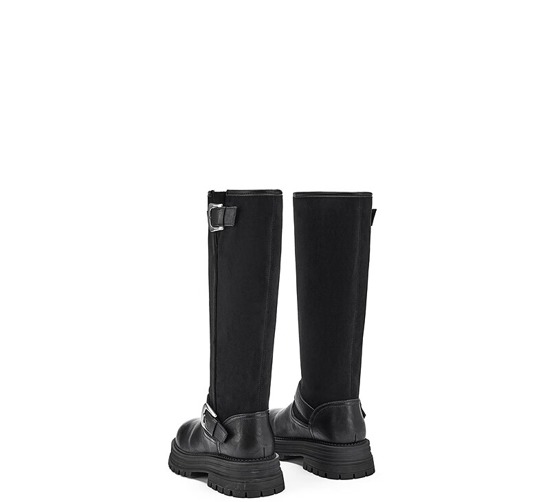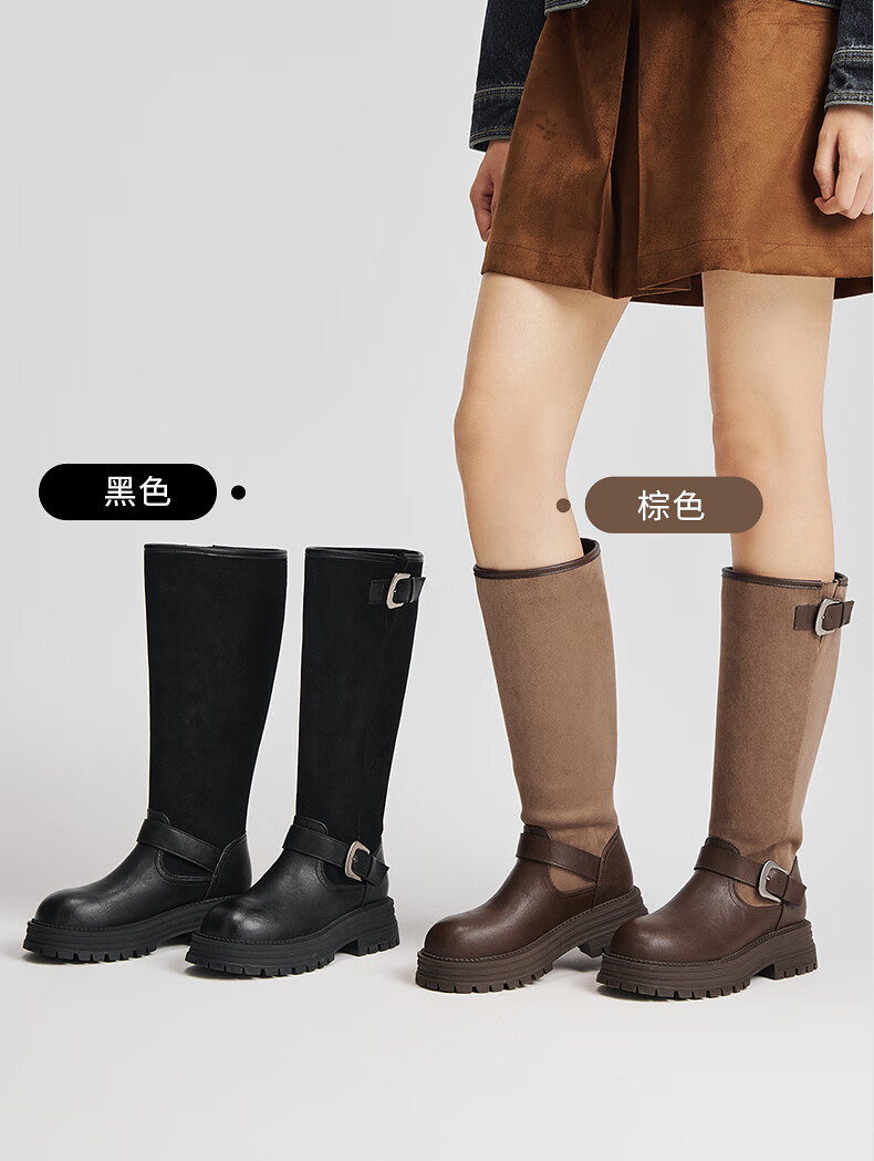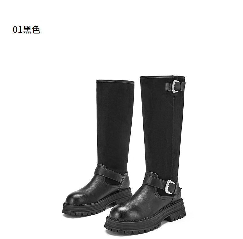 热风厚底骑士靴女2025年冬季新款复古休闲长筒靴子百搭时装靴女鞋 01黑色 34