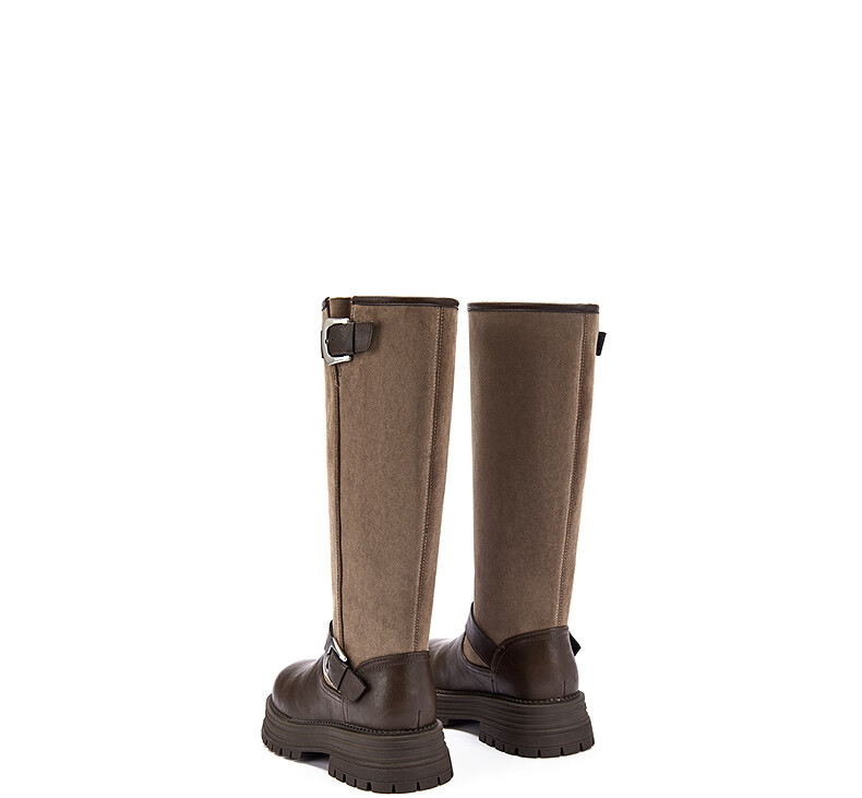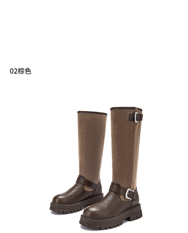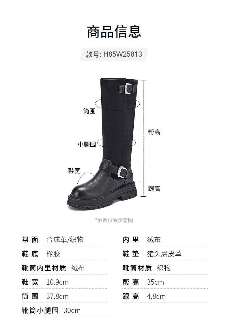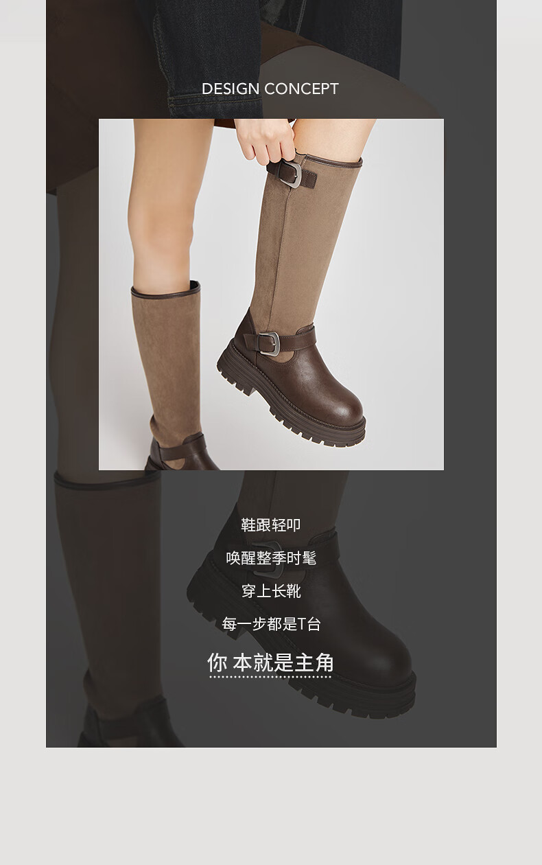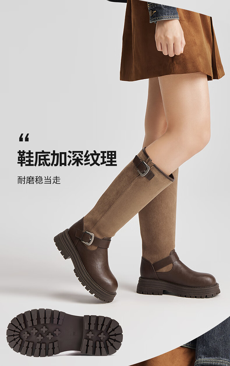 热风厚底骑士靴女2025年冬季新款复古休闲长筒靴子百搭时装靴女鞋 01黑色 34