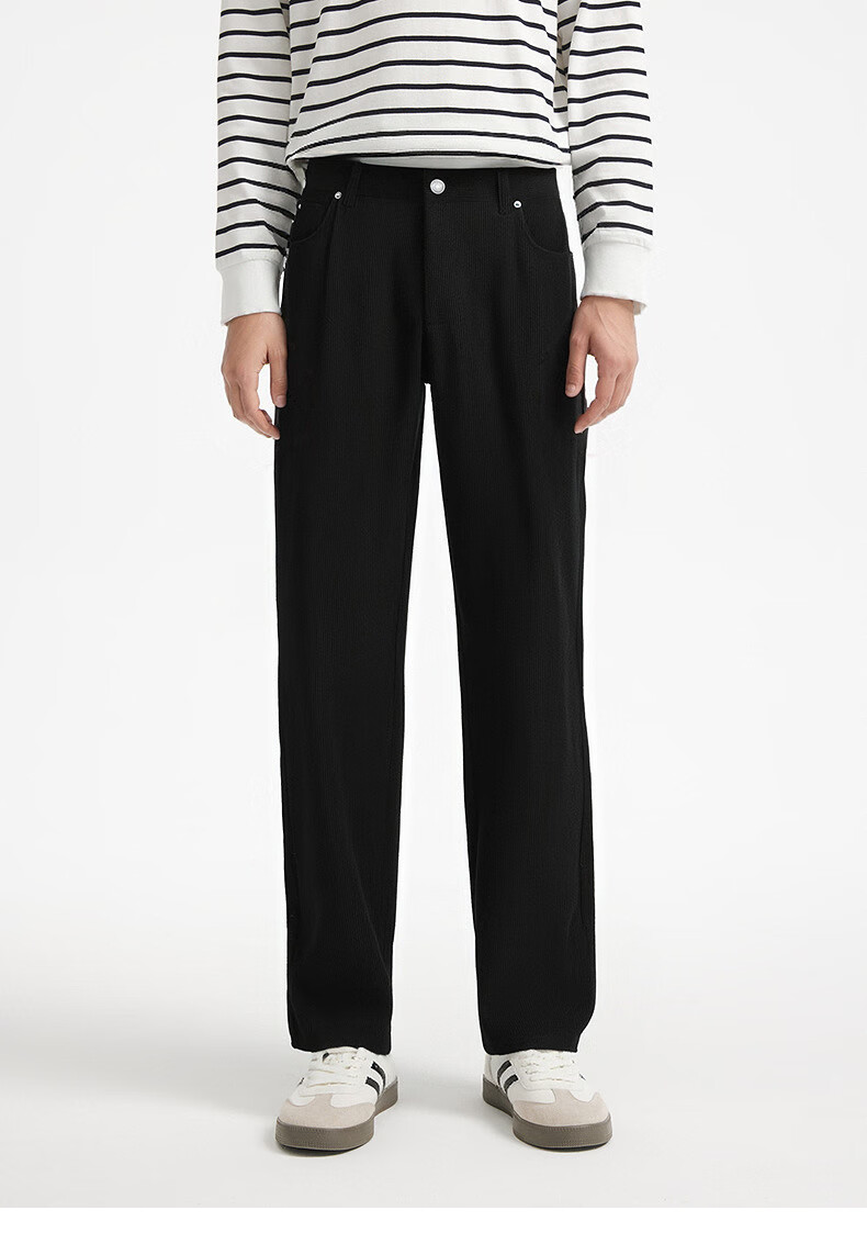 热风男士休闲长裤2025年秋季新款绒感直筒裤通勤百搭直筒休闲裤 01黑色 29