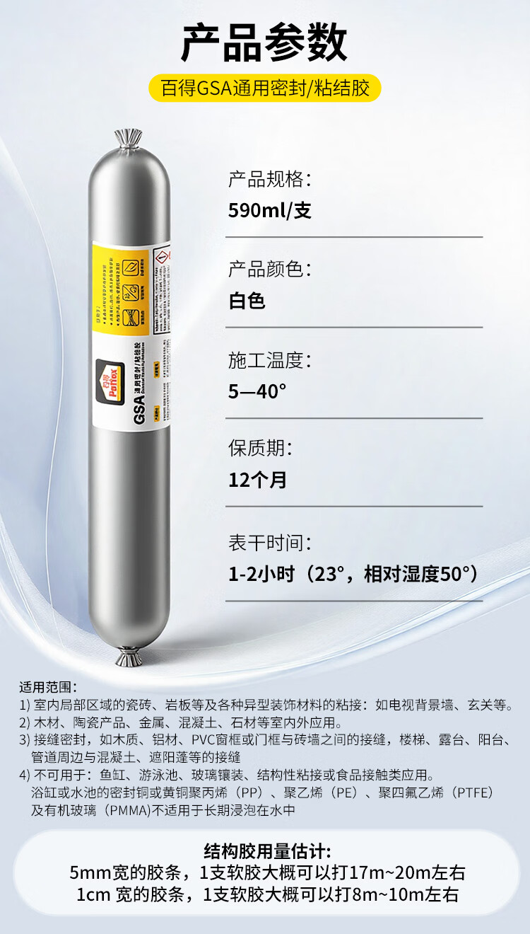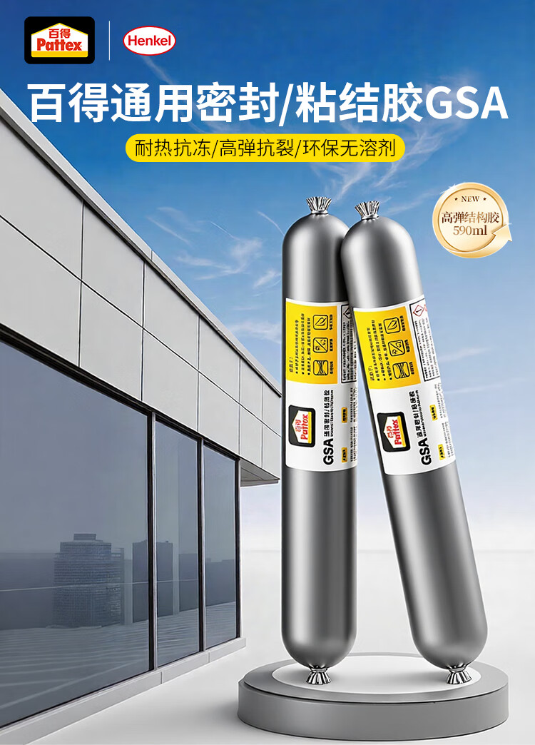 百得(Pattex)德国汉高GSA密封结构胶玻璃胶强力室外粘接耐高低温防水门窗墙 白 (白色2支)环保耐候