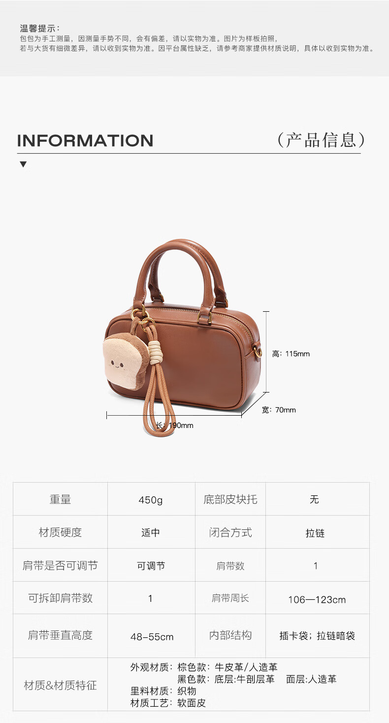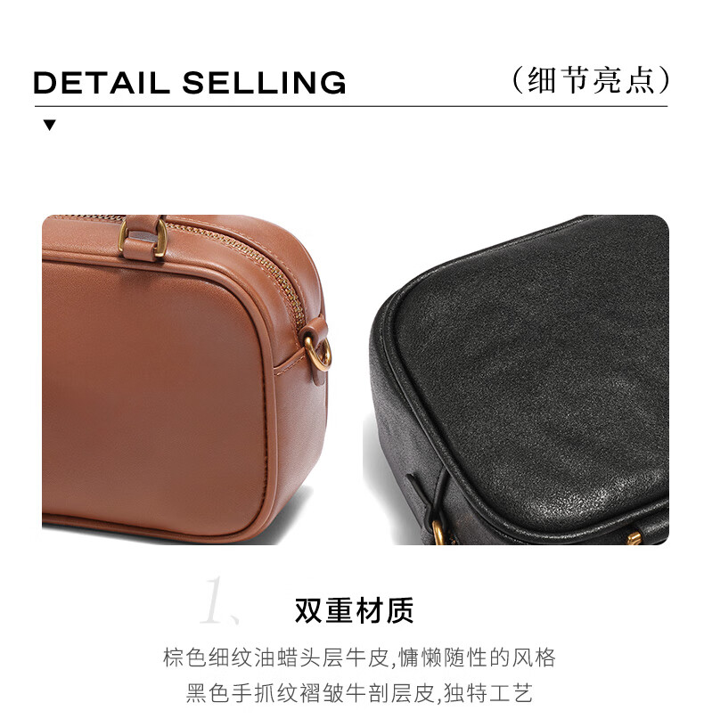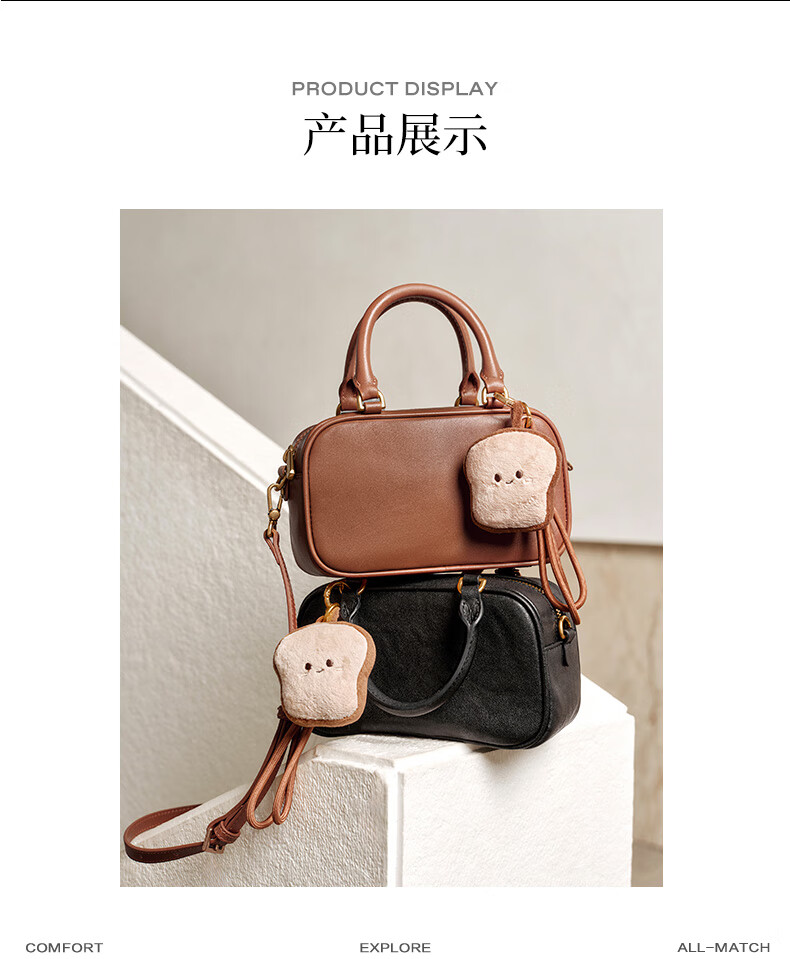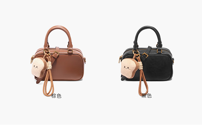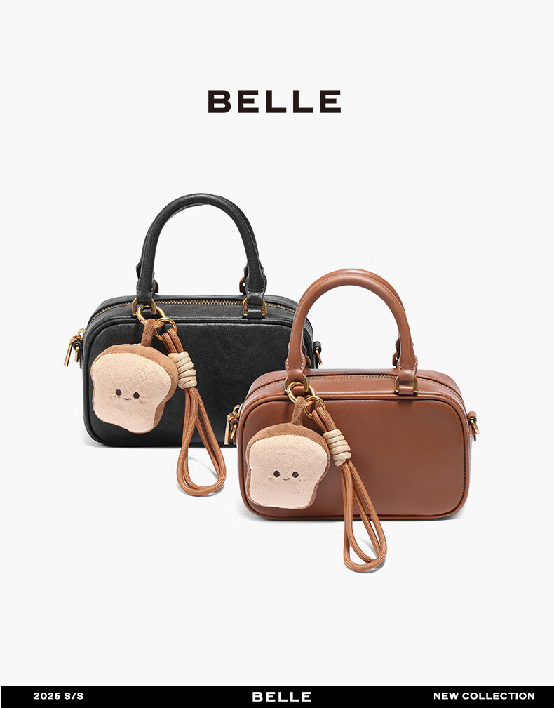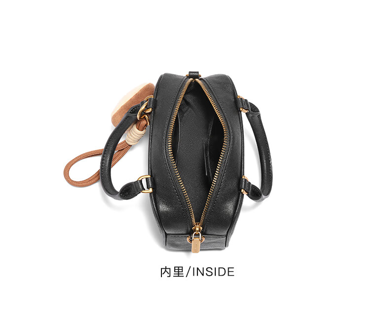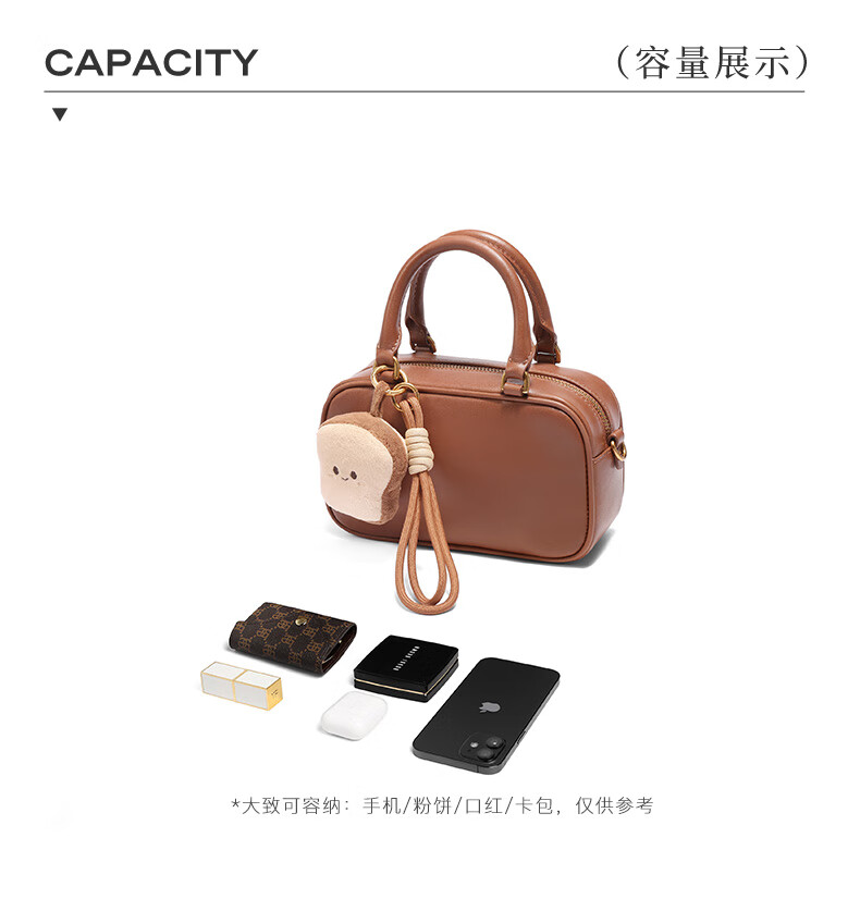 百丽包包女25商场同款头层牛皮美拉德风单肩斜挎波士顿包BL861DX5 棕色【牛皮款】 F