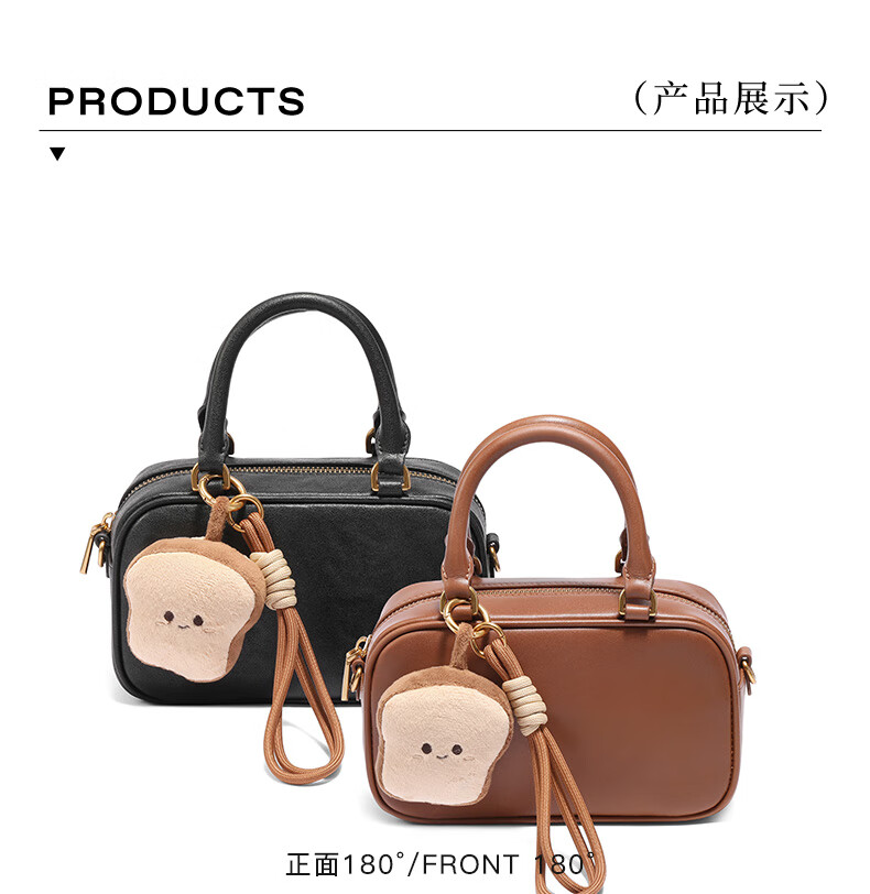 百丽包女25冬新款升级吐司包单肩斜挎手提波士顿包X7414DX5 黑色 F