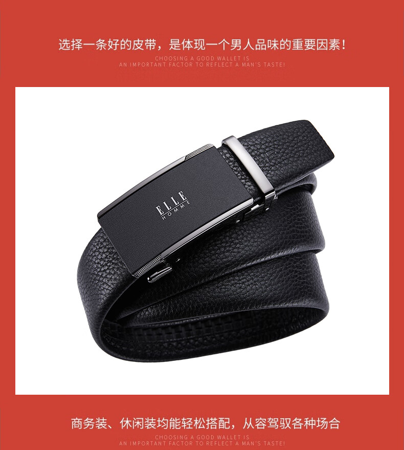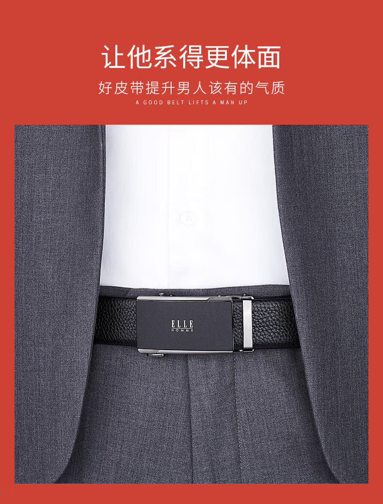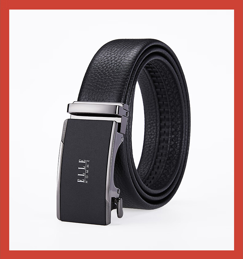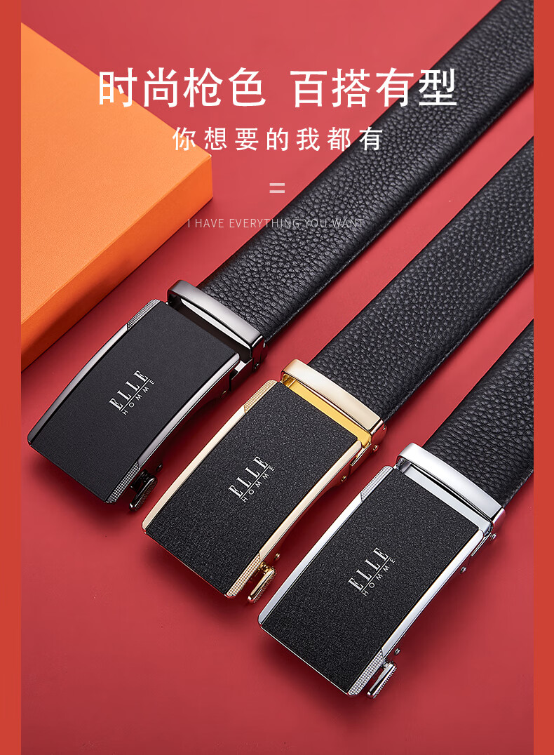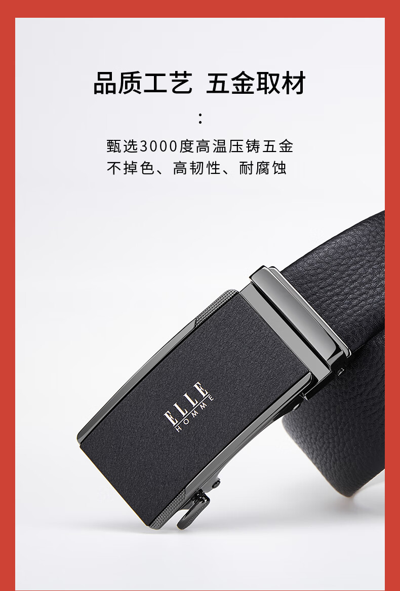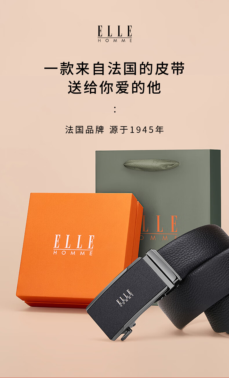 ELLE HOMME男士皮带男腰带真皮头层牛皮自动扣商务礼盒高档生日礼物送男友 【专柜礼盒】902081-枪色磨砂 110cm ~130随机(可修剪)