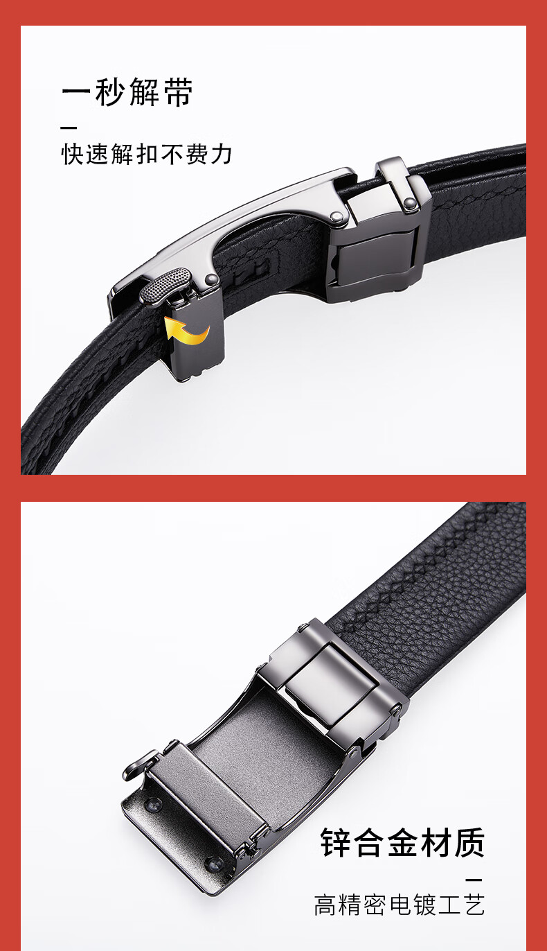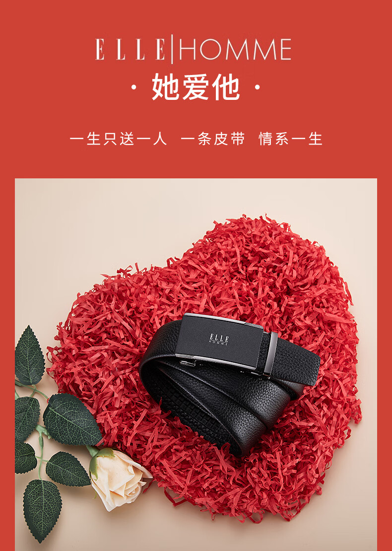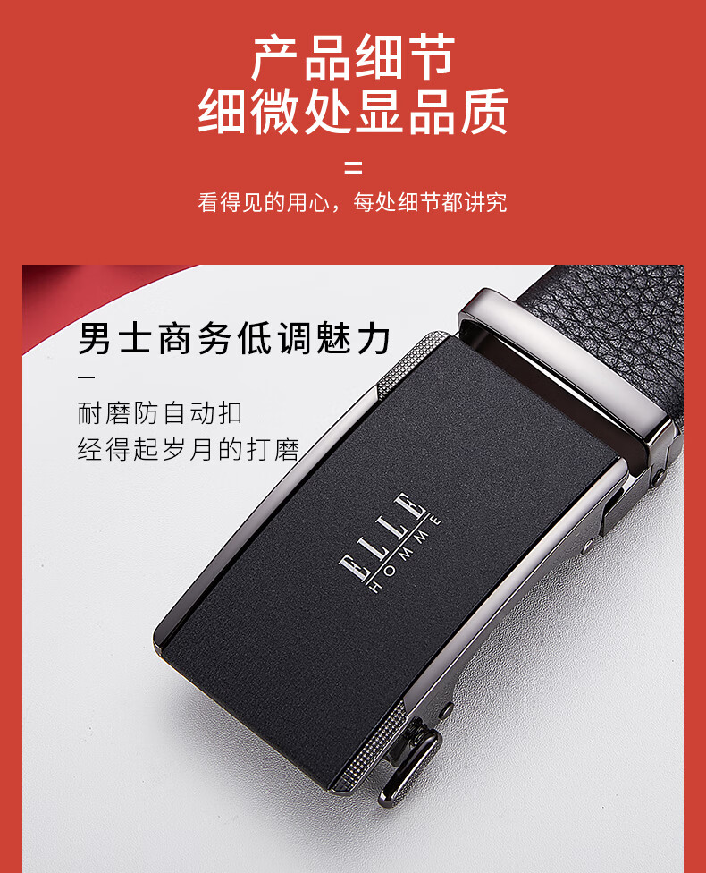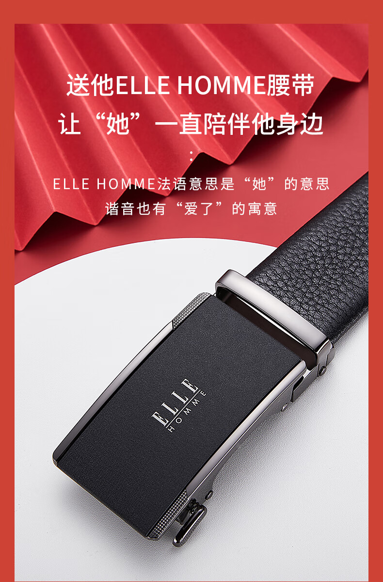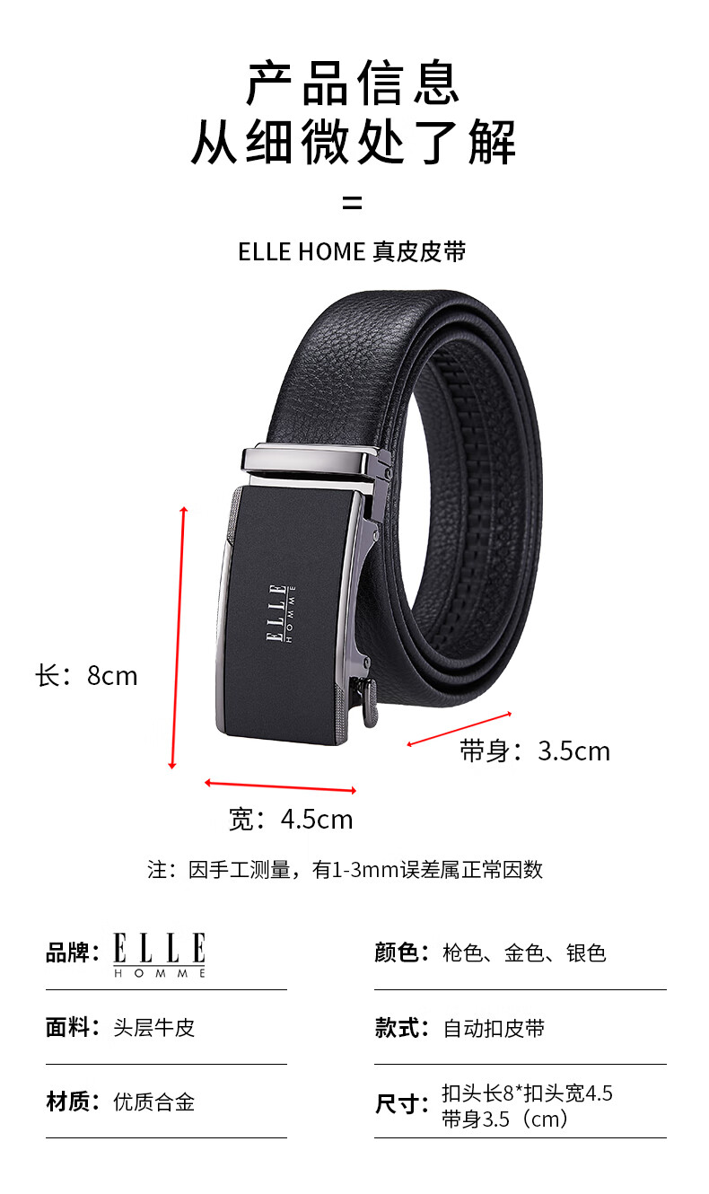 ELLE HOMME男士皮带男腰带真皮头层牛皮自动扣商务礼盒高档生日礼物送男友 【专柜礼盒】902081-枪色磨砂 110cm ~130随机(可修剪)