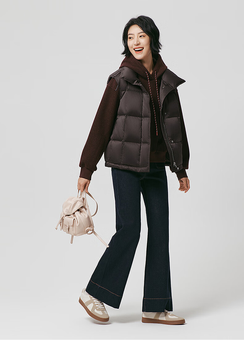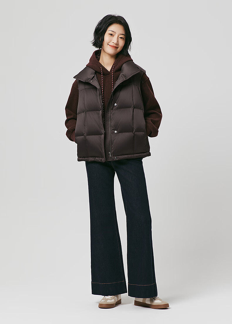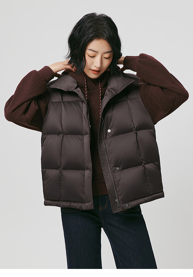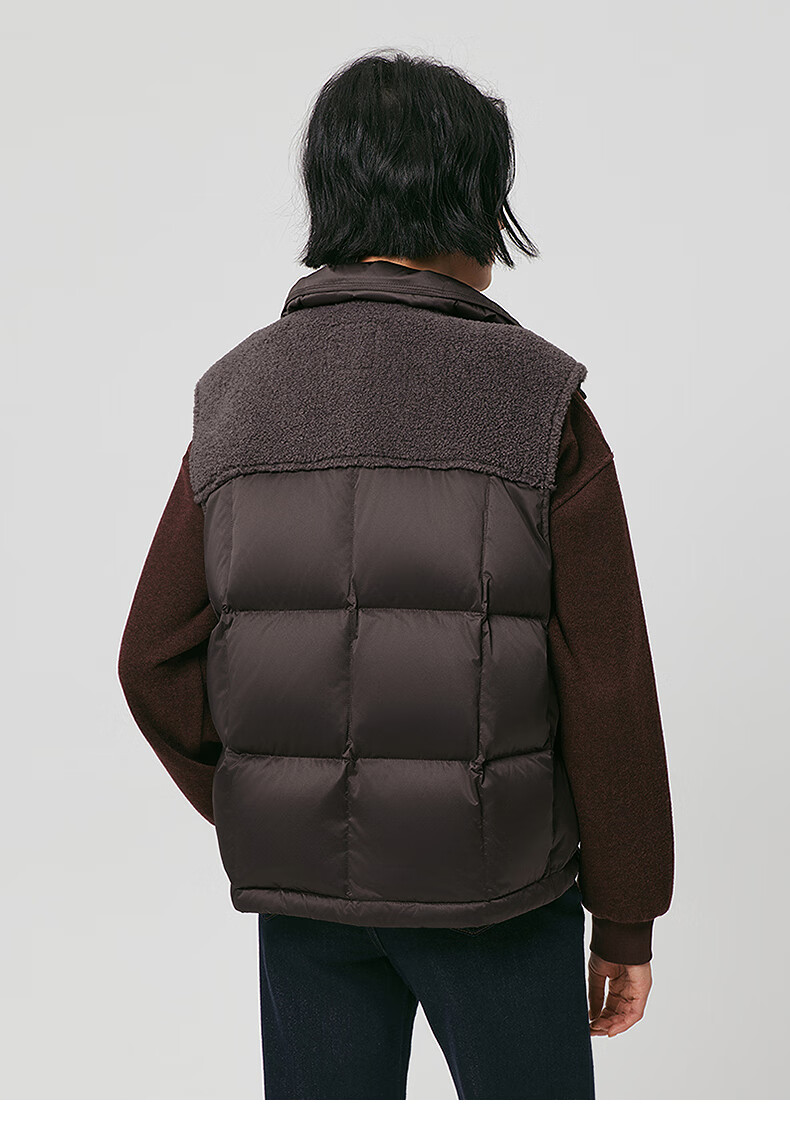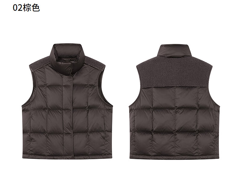 热风(Hotwind)女士无袖羽绒服马甲外套2025年冬季新款女士拼接深色羽绒马甲女 02棕色 S