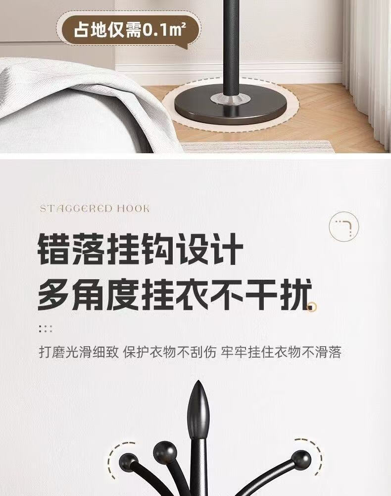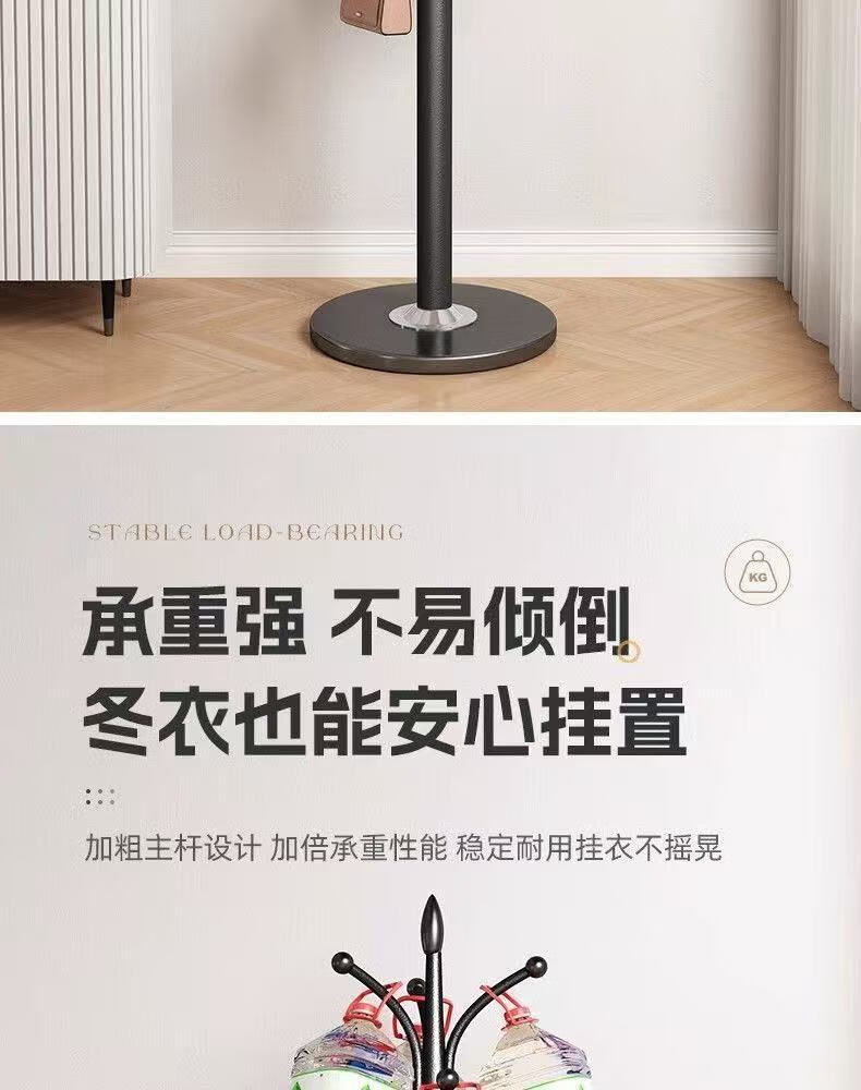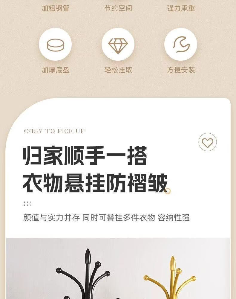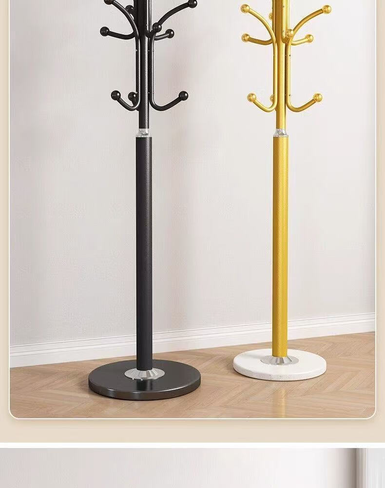 接运猫欧式轻奢衣帽架大理石落地挂衣架卧室衣架客厅铁艺简易立式挂包架 承重120斤加大理石底座磨砂黑