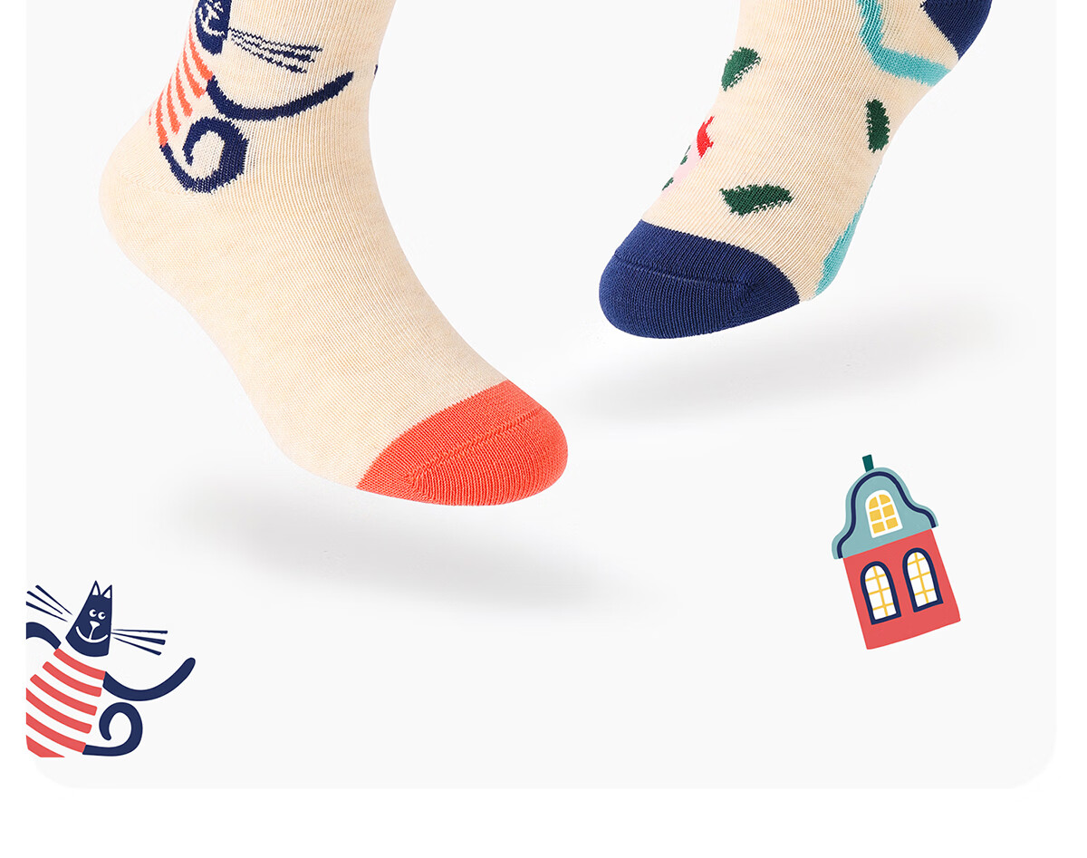 斑比儿童袜子潮春秋款中大童男宝宝秋冬季女童无骨中筒棉袜 BB2476 儿童趣味个性袜 5双 1-3岁 建议脚码16-20码【14-16】