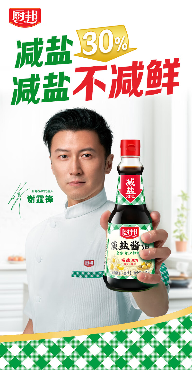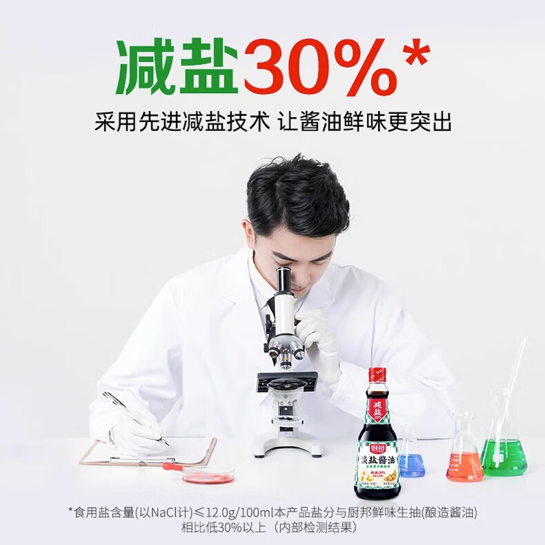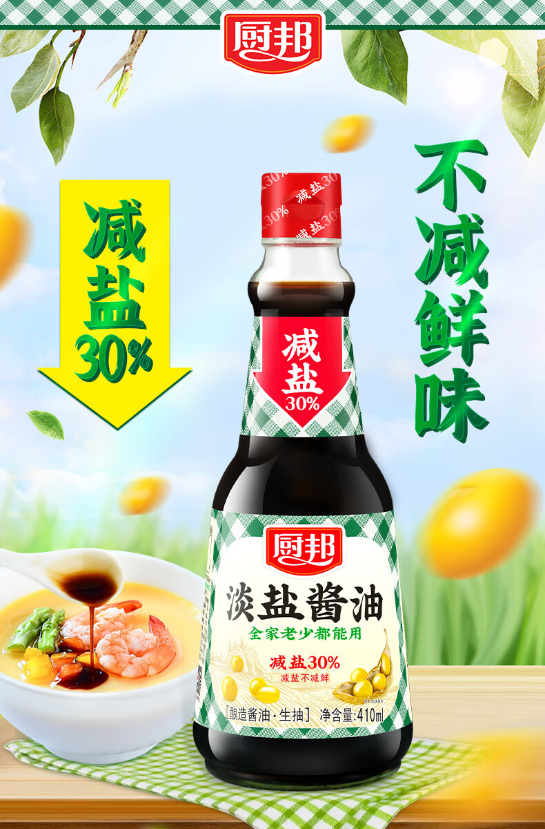 厨邦酱油 薄盐系列 淡盐酱油 生抽【黄豆酱油】410ml 酿造酱油减盐30%