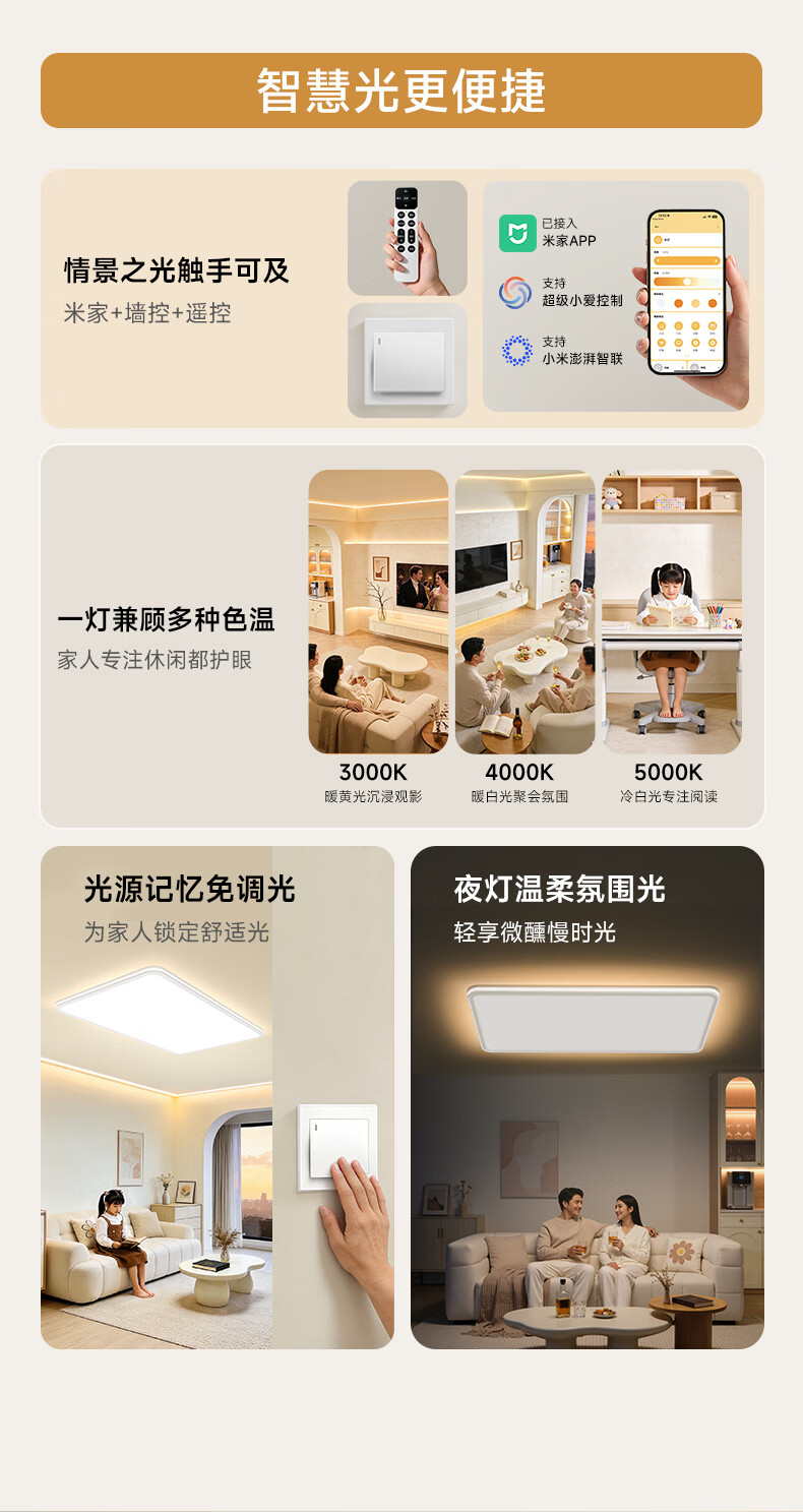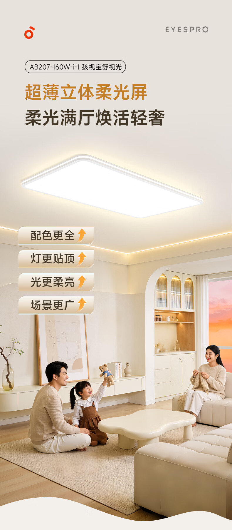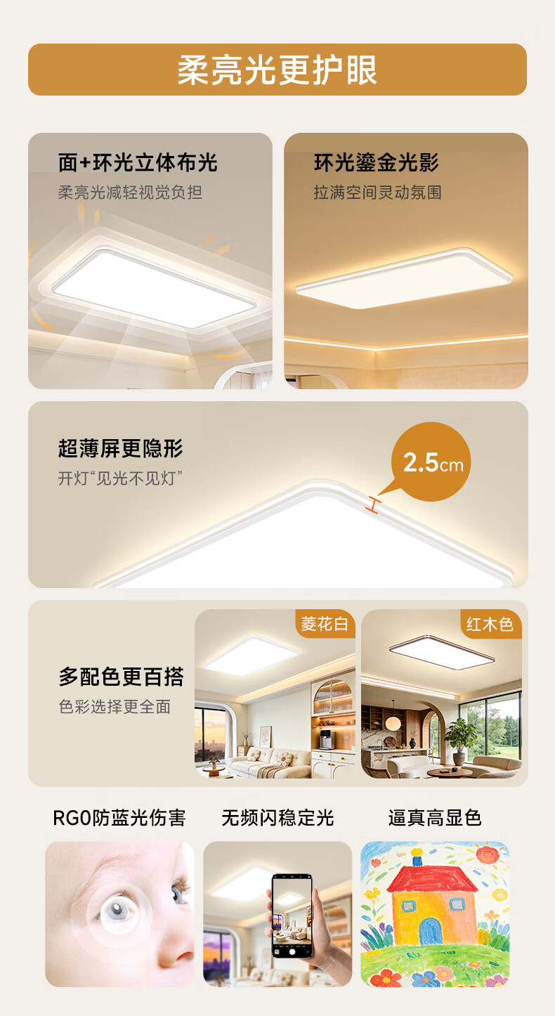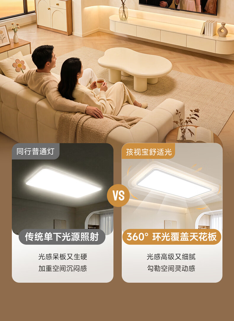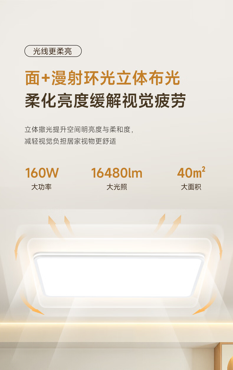 孩视宝舒视光·全光谱护眼吸顶灯2.5cm超薄无缝智能客厅卧室书房led灯具 160W 40㎡内适用 16480lm 【舒视光客厅】暖白-智能款