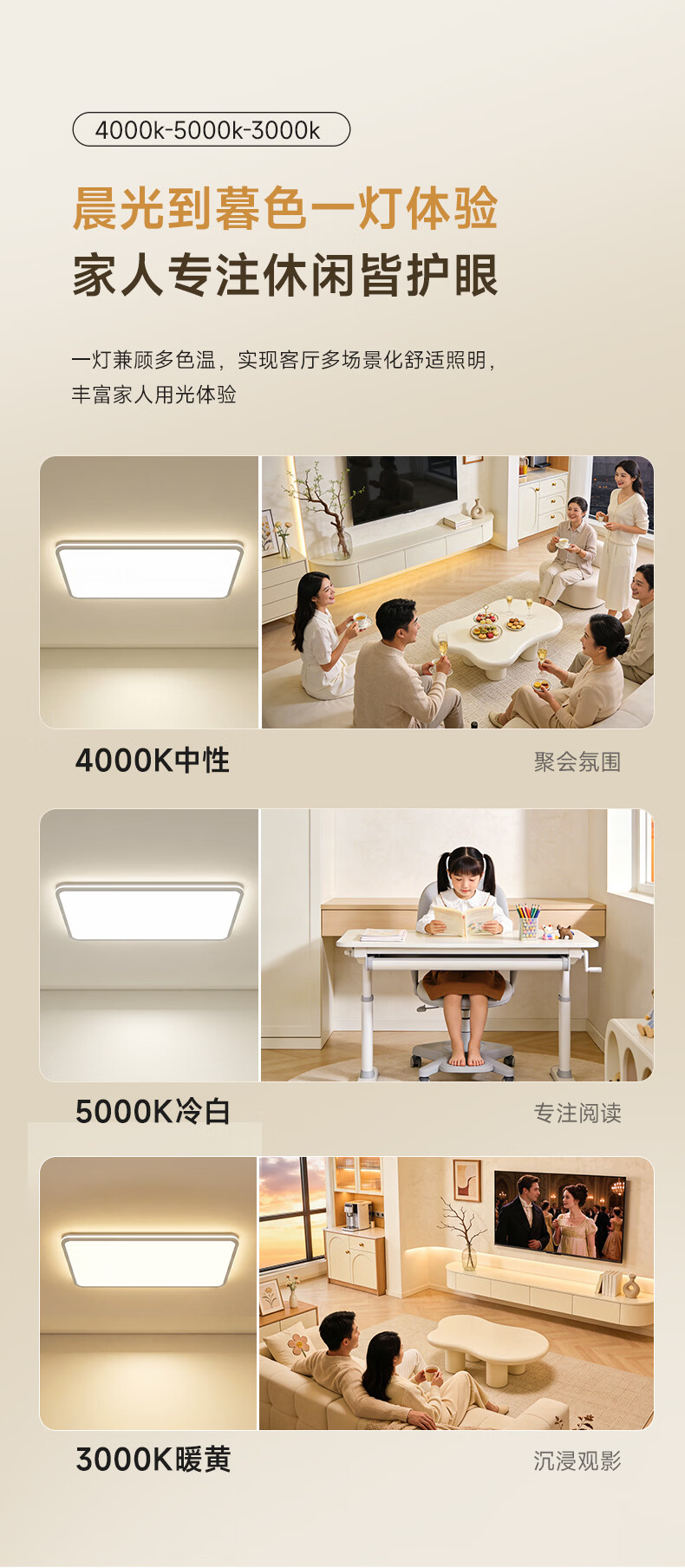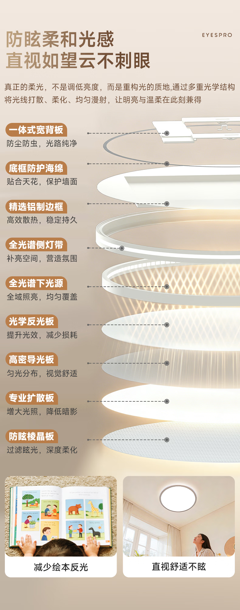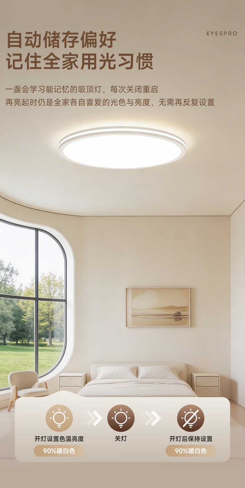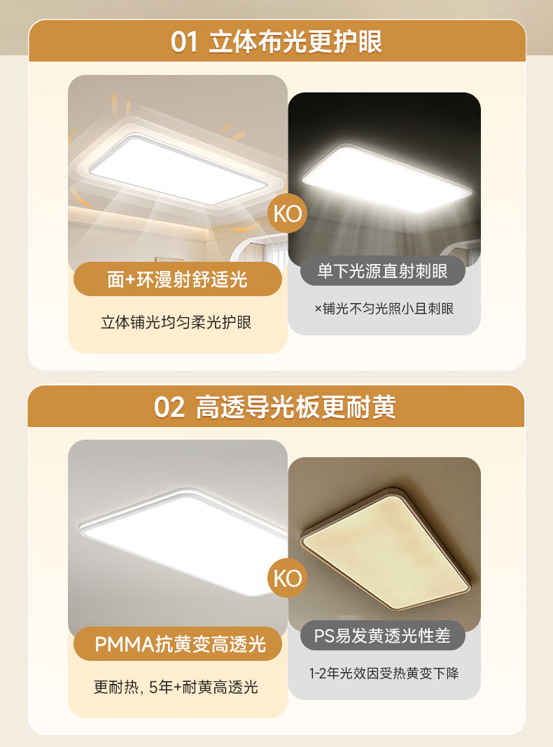 孩视宝舒视光·全光谱护眼吸顶灯2.5cm超薄无缝智能客厅卧室书房led灯具 160W 40㎡内适用 16480lm 【舒视光客厅】暖白-智能款