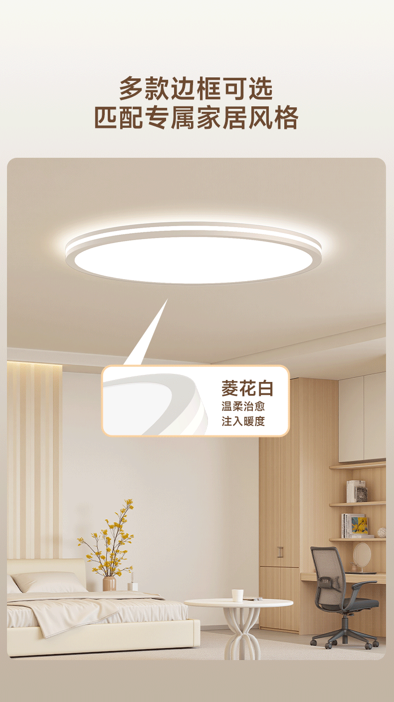 卡伯森意式极简设计师款卧室吸顶灯全光谱护盘防蓝光书房灯大气客厅主灯 砂白色-直径110cm【三色变光】