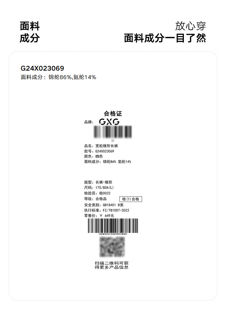 GXG男装商场同款西装裤锥形休闲裤24年秋 咖色 185/XXL