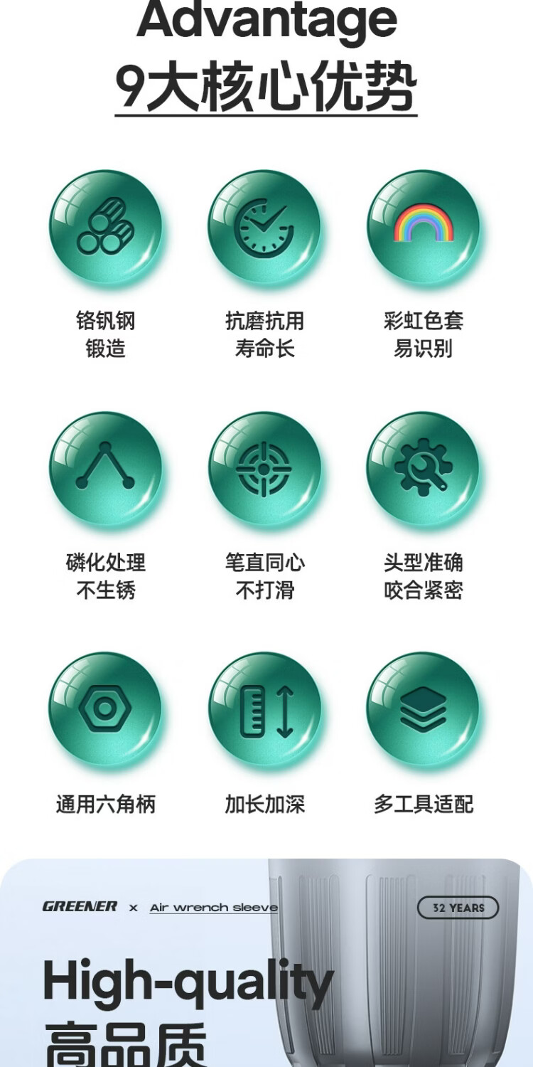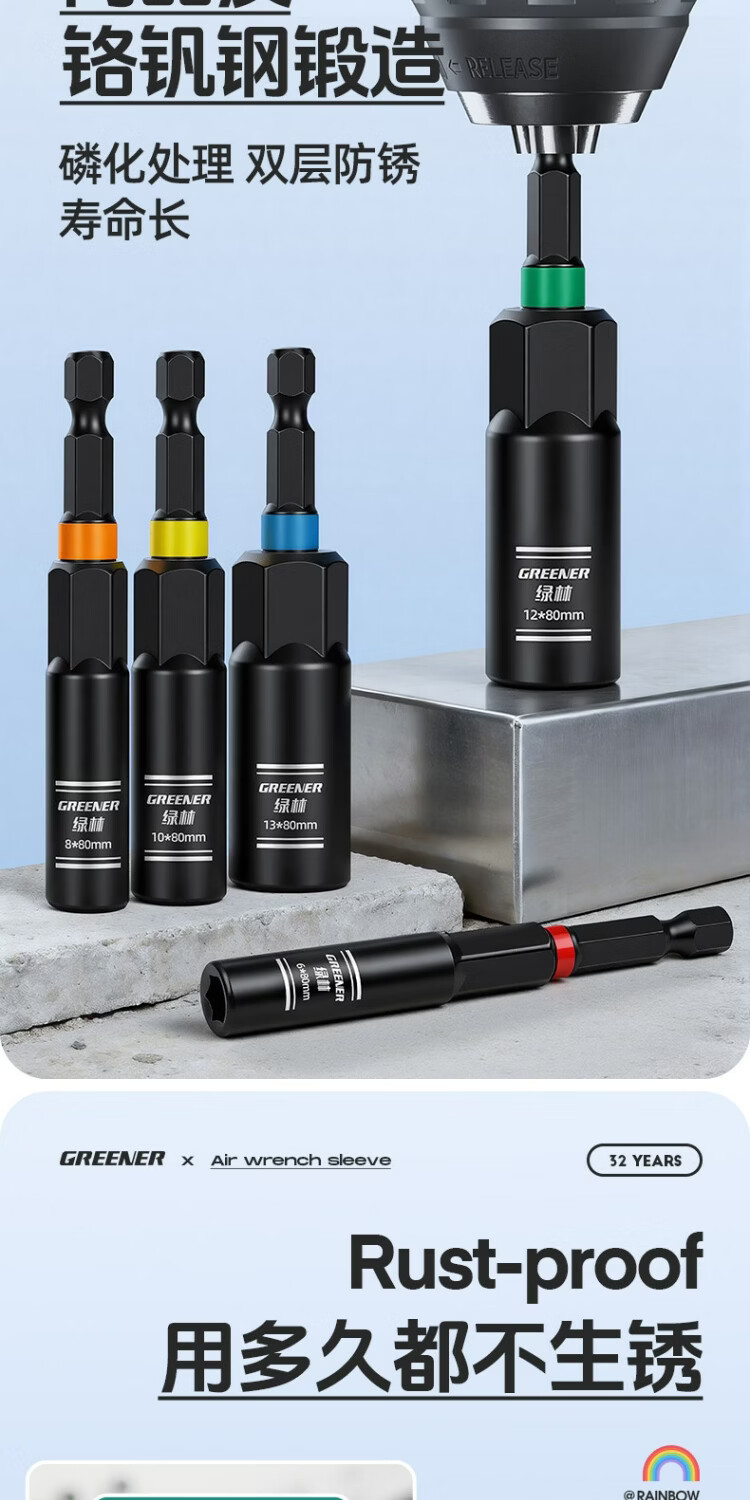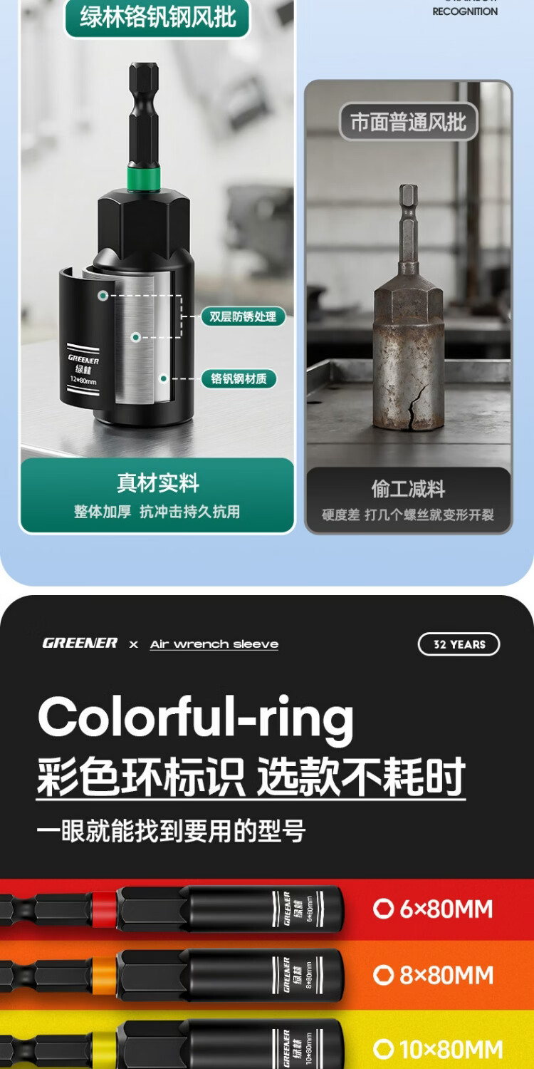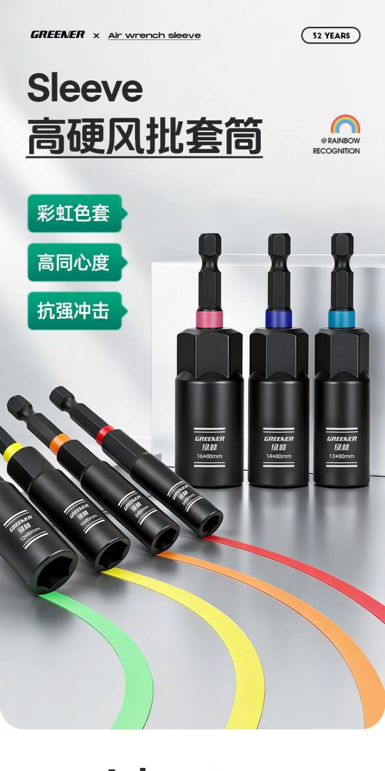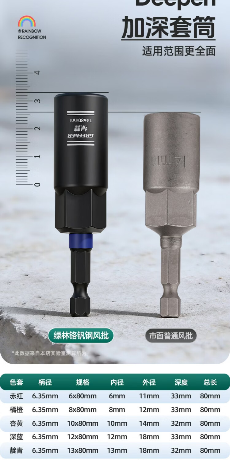 绿林套筒批头内六角加长加深手电钻风批组合套装电动扳手工具10mm 黑盾组合6+8+10+12+13+14【各1支】