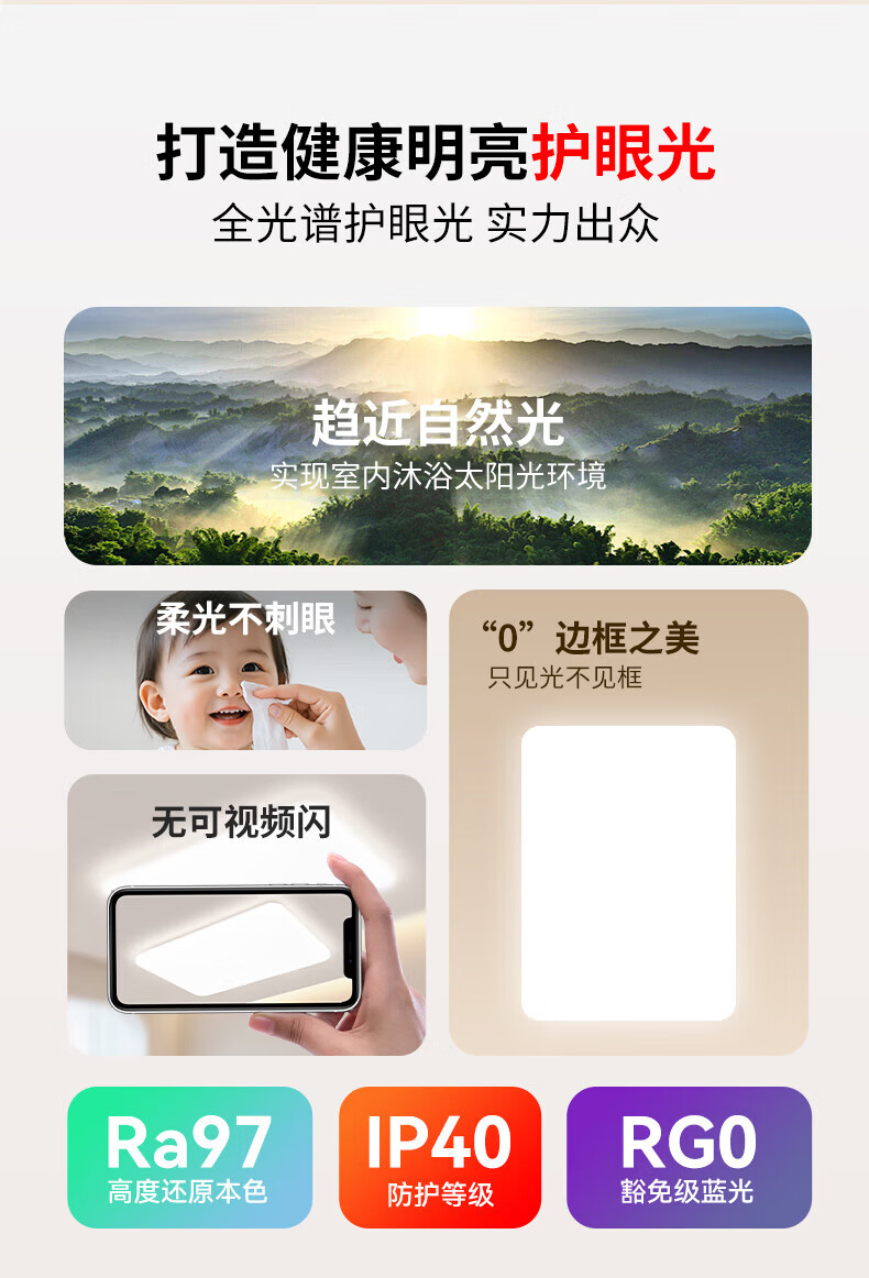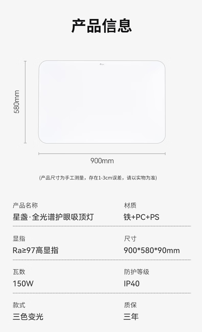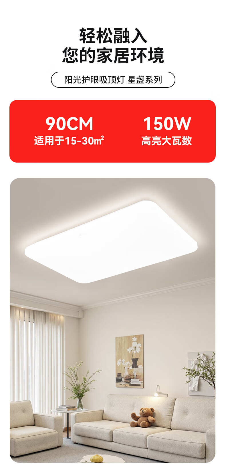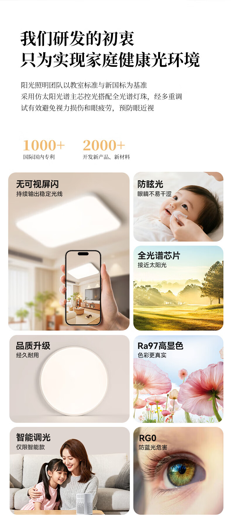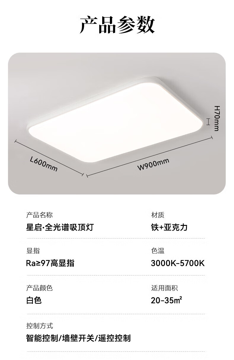 阳光(YANKON)新款客厅主灯大灯 全光谱护眼led吸顶灯 灯具 羽心丨130w客厅大灯丨已接入米家APP