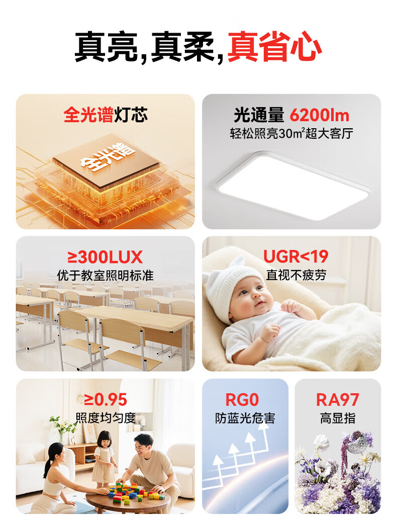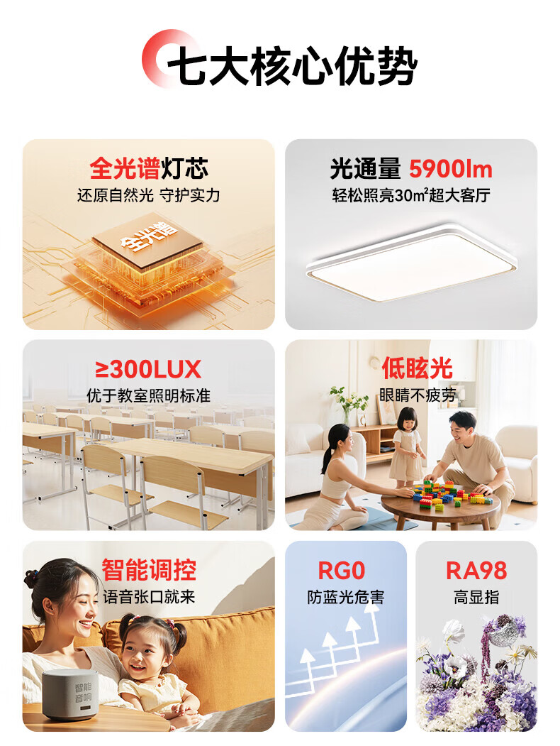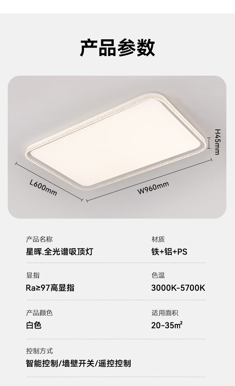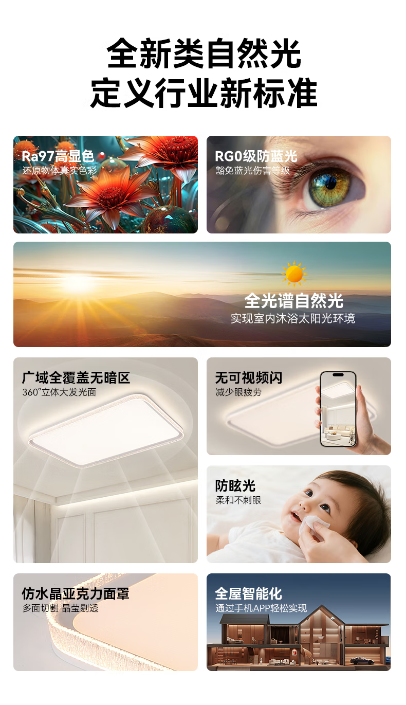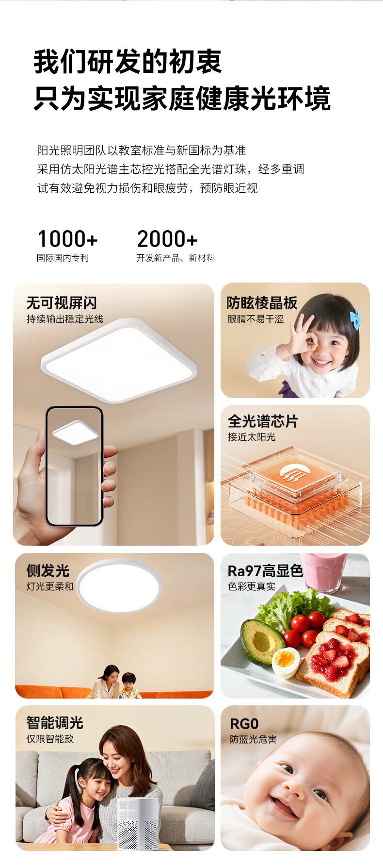 阳光(YANKON)新款客厅主灯大灯 全光谱护眼led吸顶灯 灯具 羽心丨130w客厅大灯丨已接入米家APP