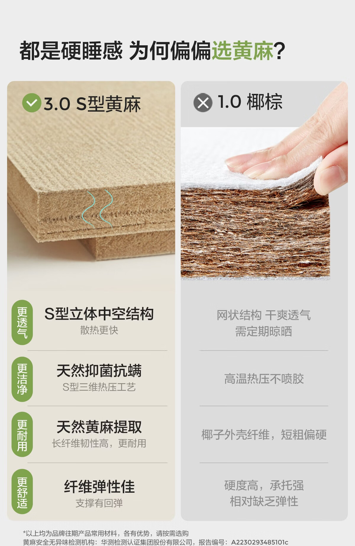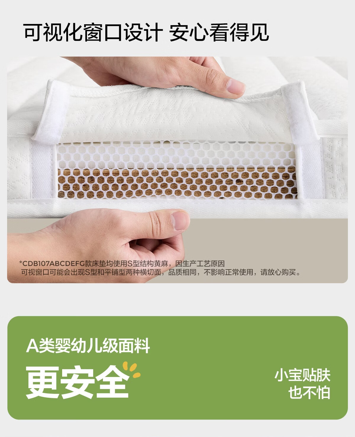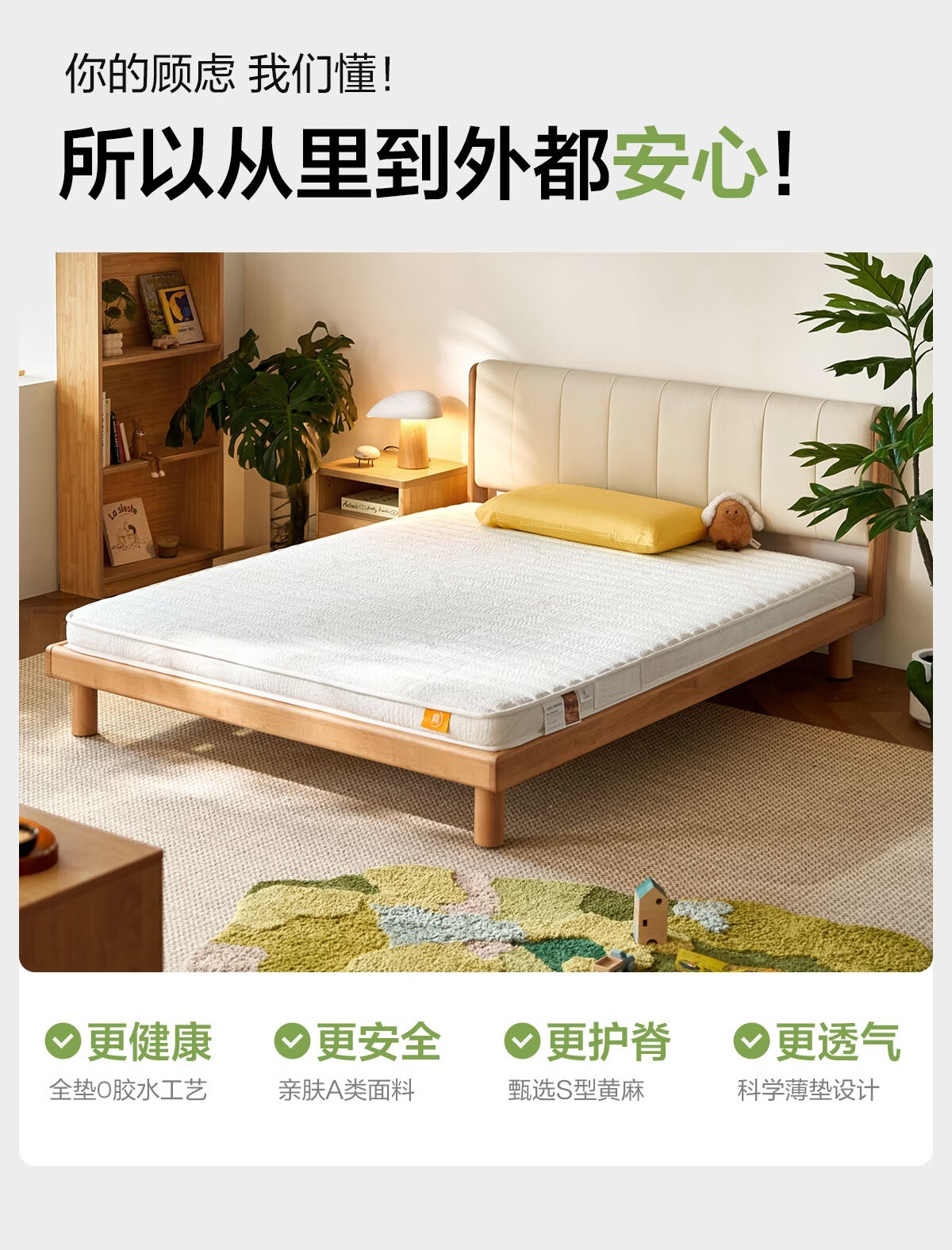LINSY KIDS林氏家居黄麻床垫护脊学生家用卧室双人榻榻米薄款硬垫CDB107 (2)【黄麻薄垫】护脊透气|可视化窗口|8cm 1.5×2米