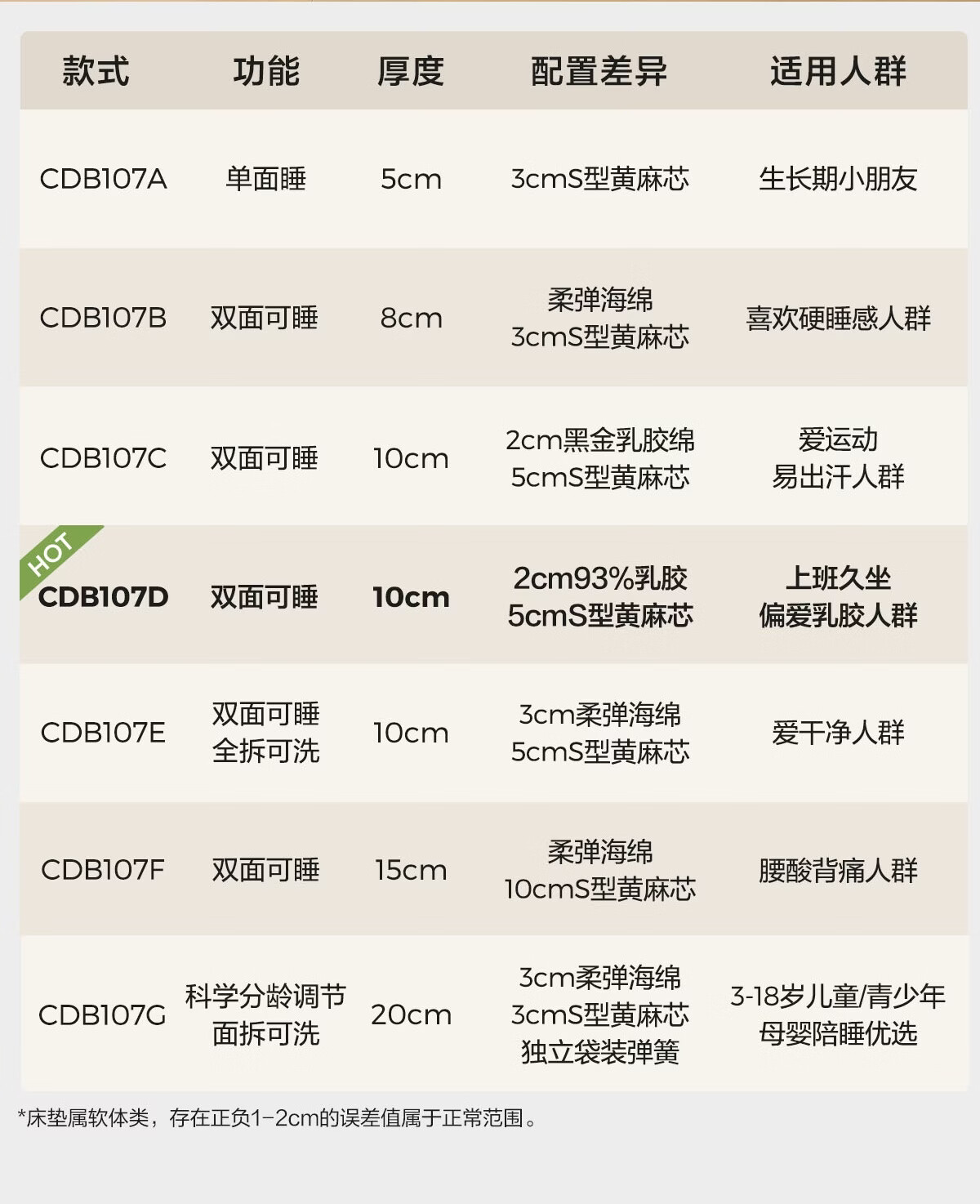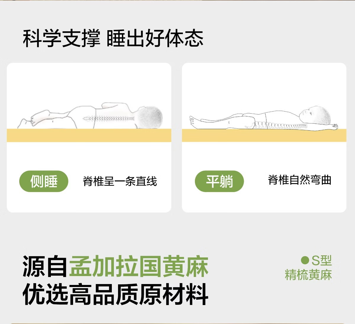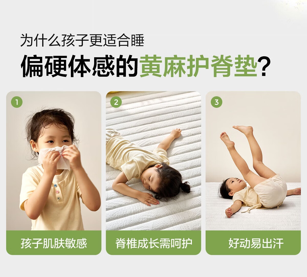 LINSY KIDS林氏家居黄麻床垫护脊学生家用卧室双人榻榻米薄款硬垫CDB107 (2)【黄麻薄垫】护脊透气|可视化窗口|8cm 1.5×2米