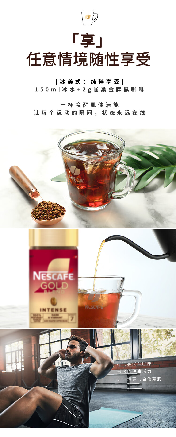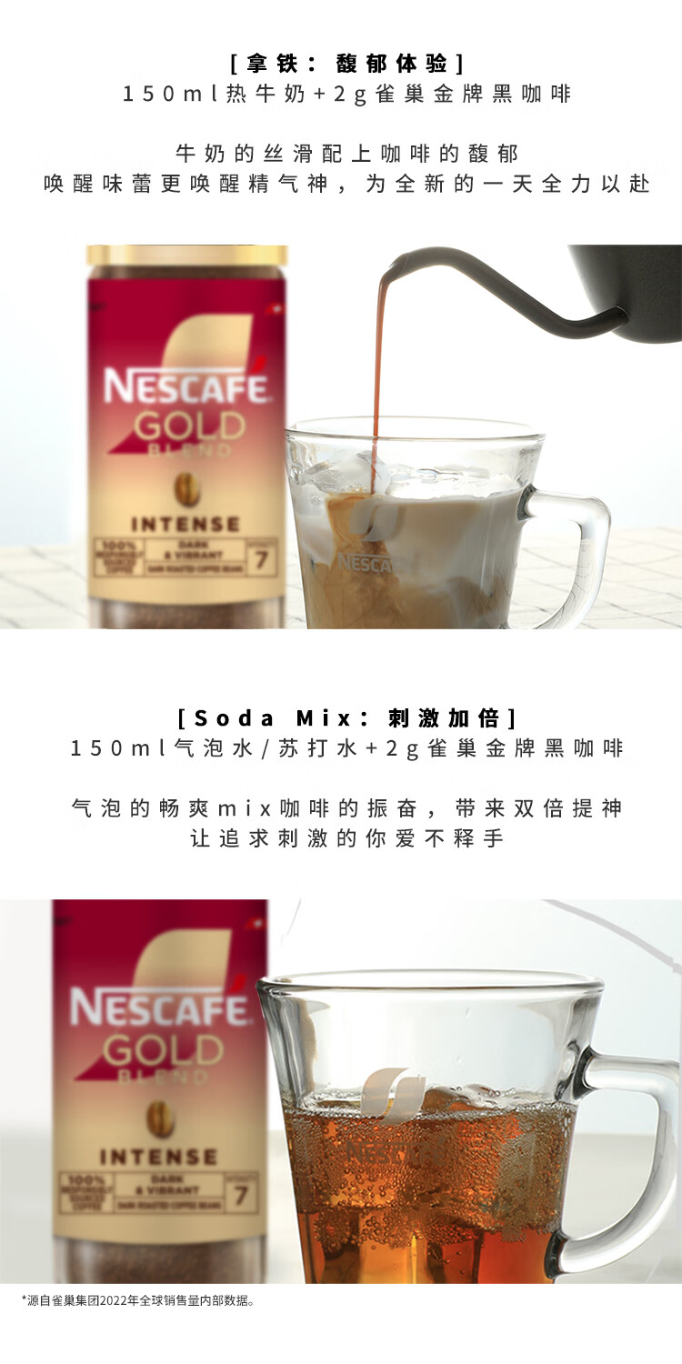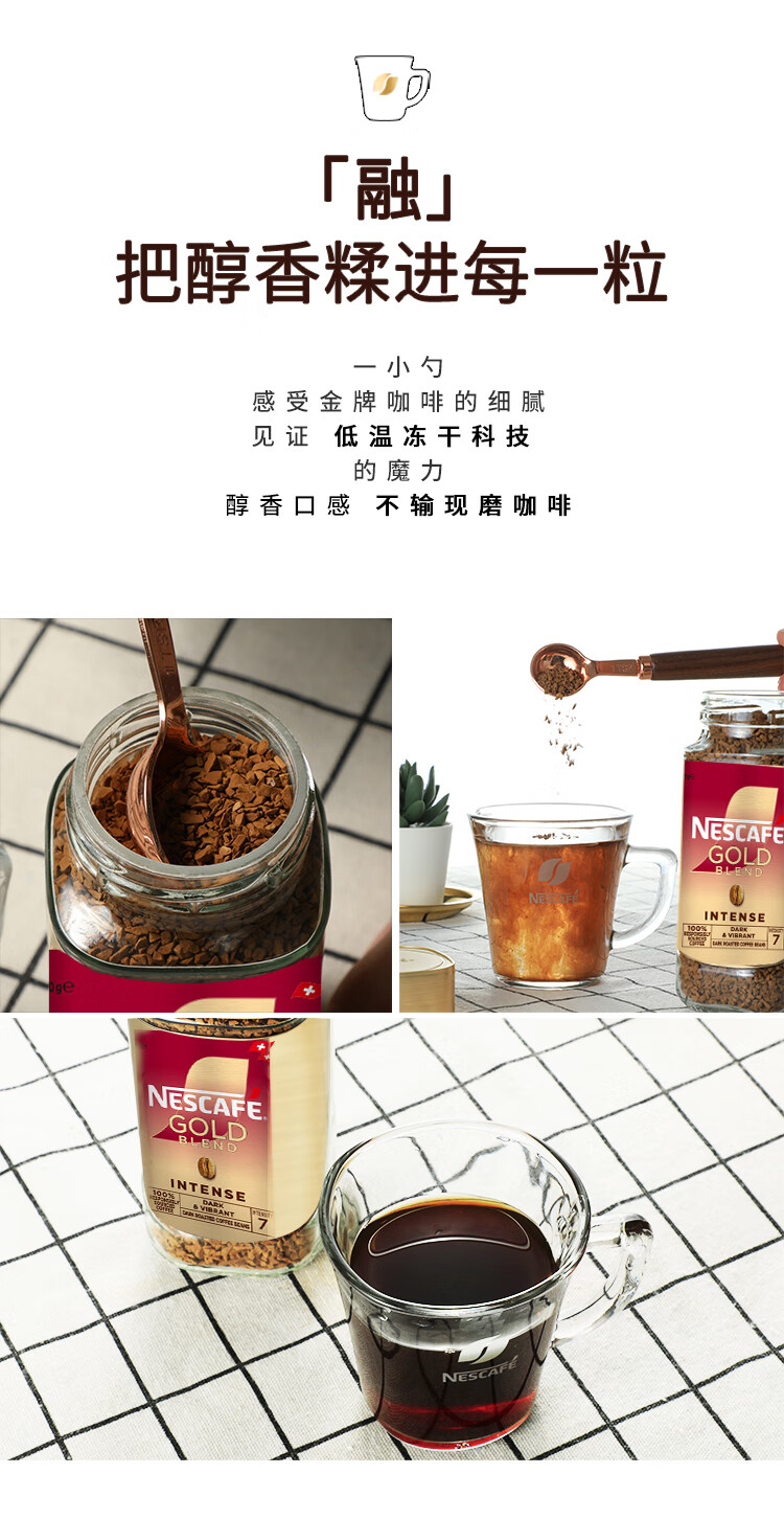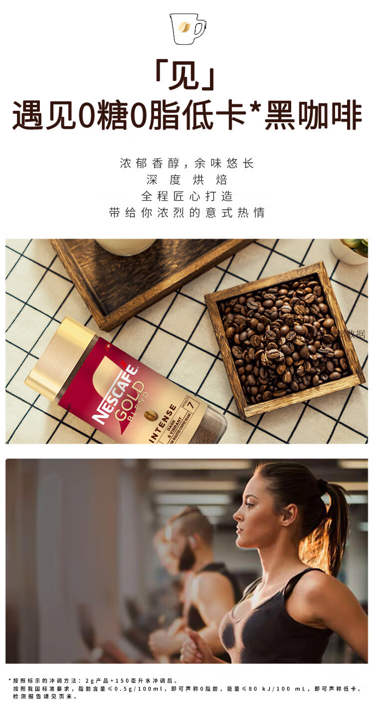 雀巢(Nestle)瑞士金牌冻干黑咖进口0糖0脂低卡*燃减健身浓郁100g