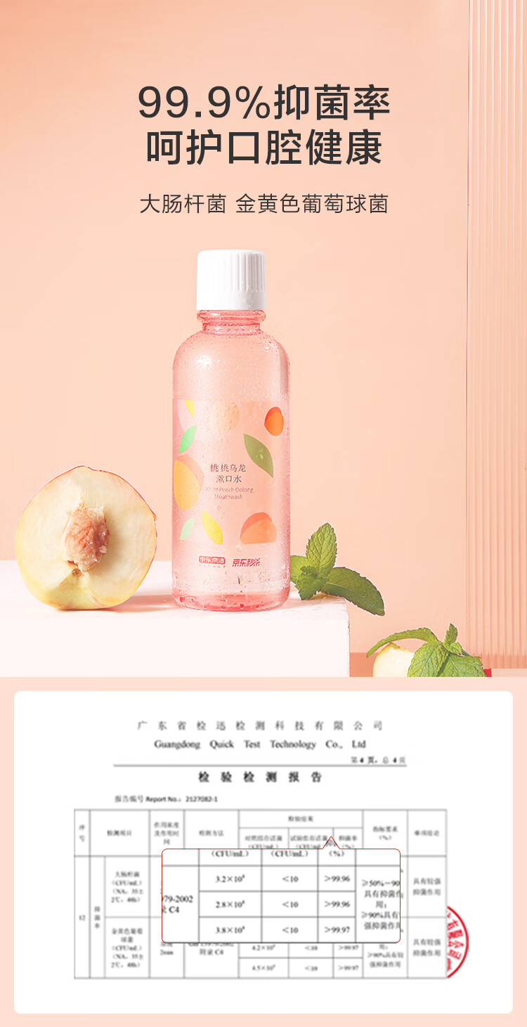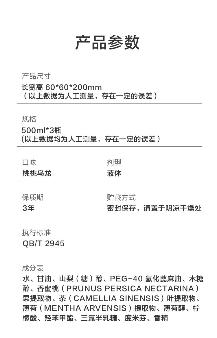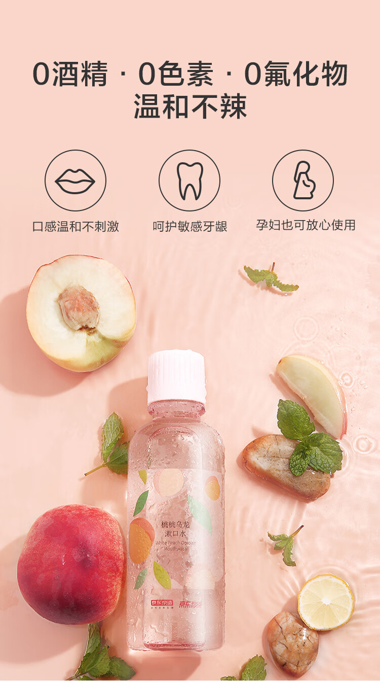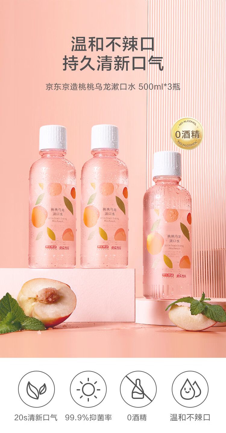 京东京造 桃桃乌龙漱口水500ml*3瓶果味温和0酒精清新口气去口臭深层清洁