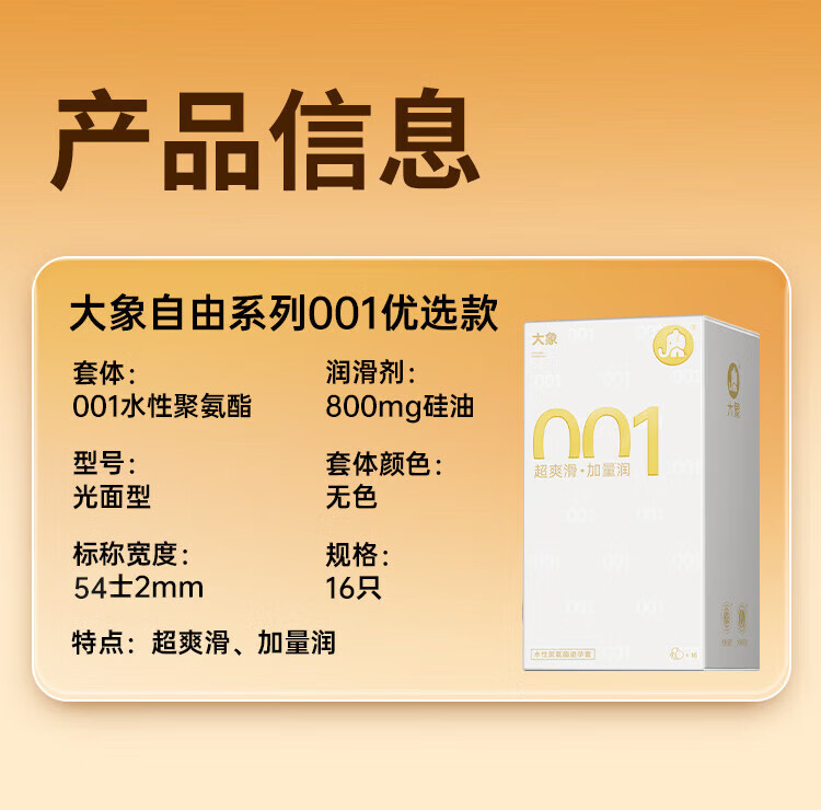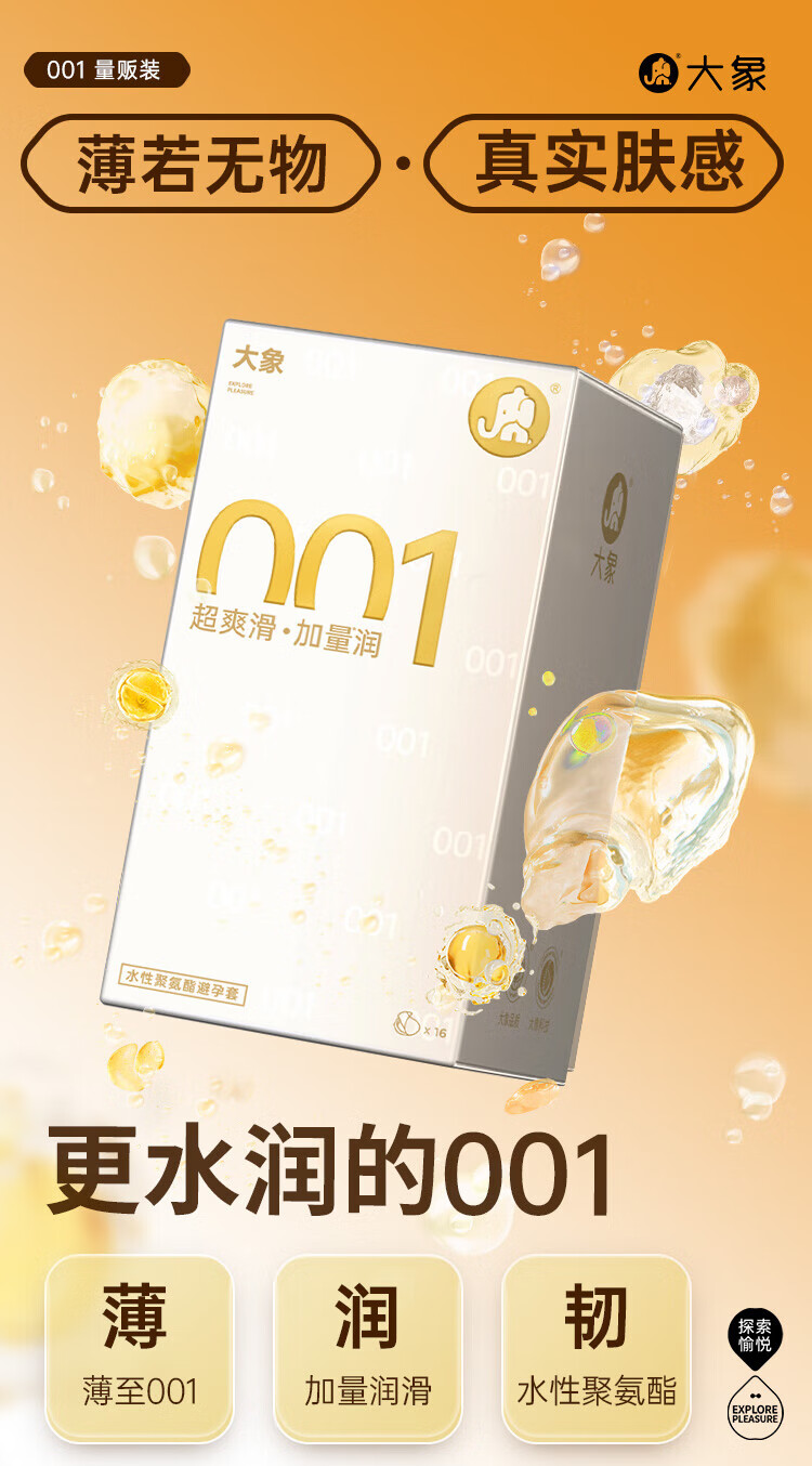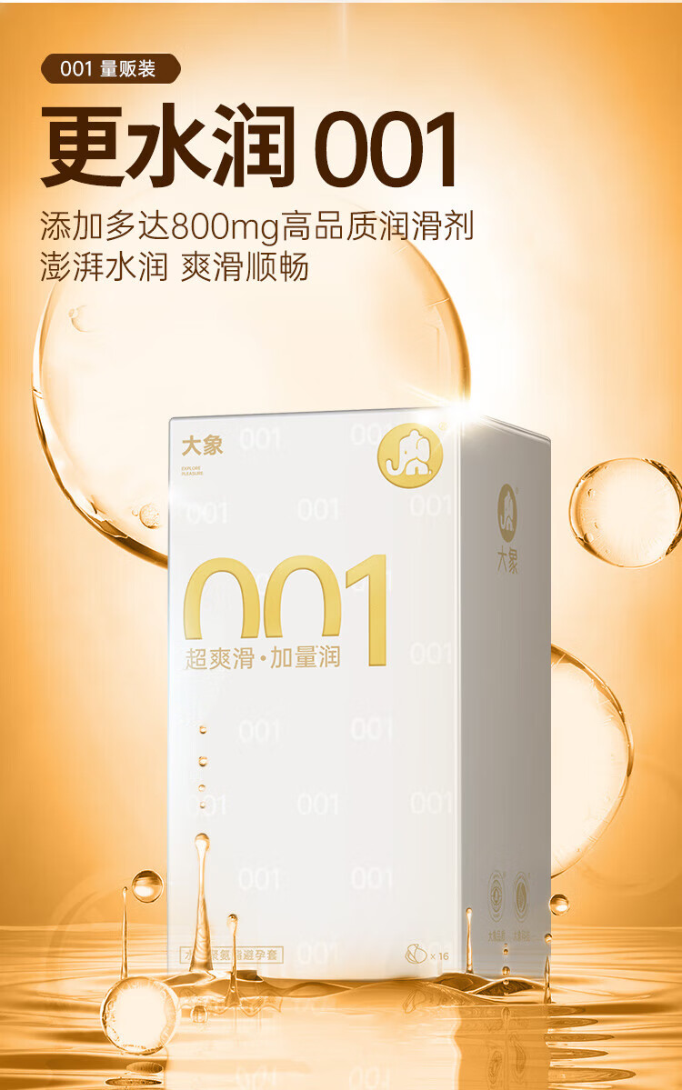 大象001超薄避孕套 聚氨酯安全套16只 男用套套 成人情人节byt