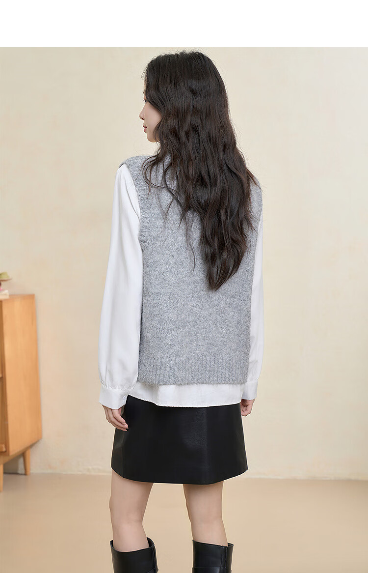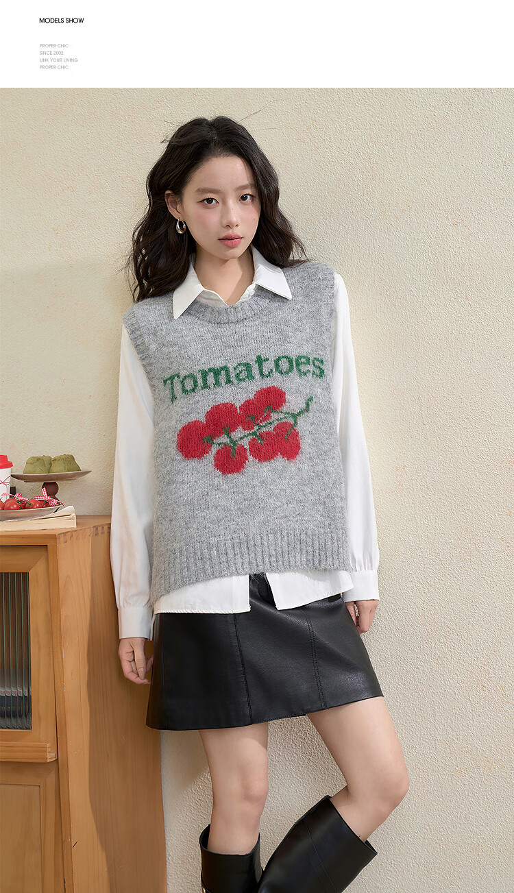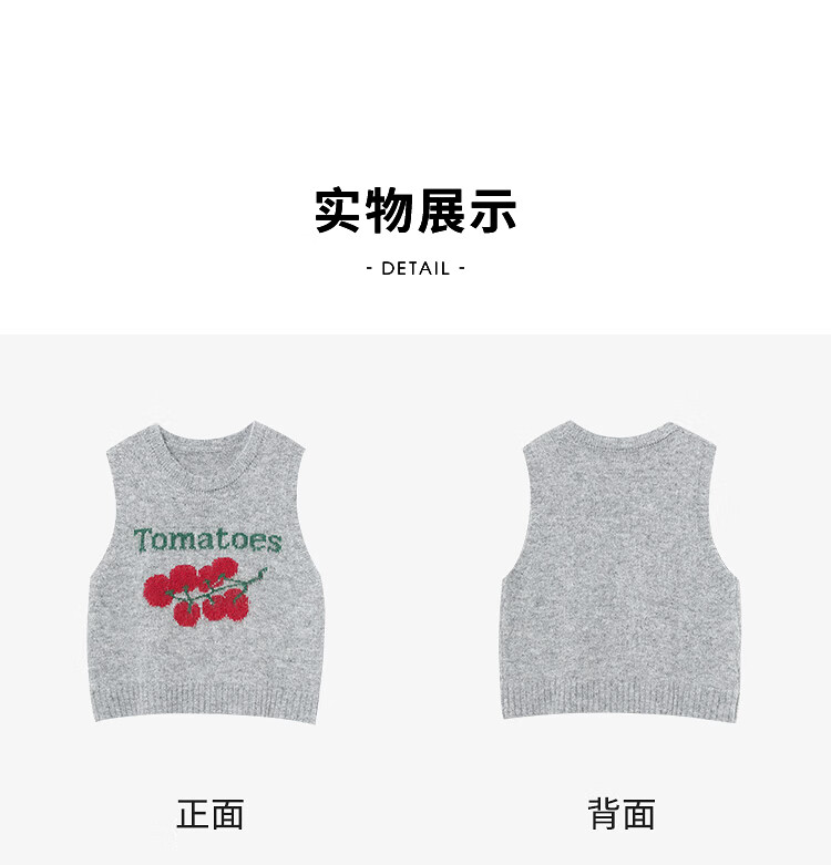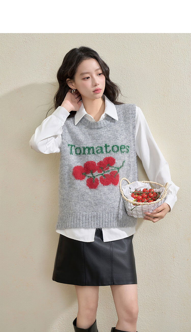 西遇(Westlink)西遇圆领宽松套头毛衣女2025年秋季新款叠穿印花无袖针织马甲背心 灰色 (预售15天) M (160)