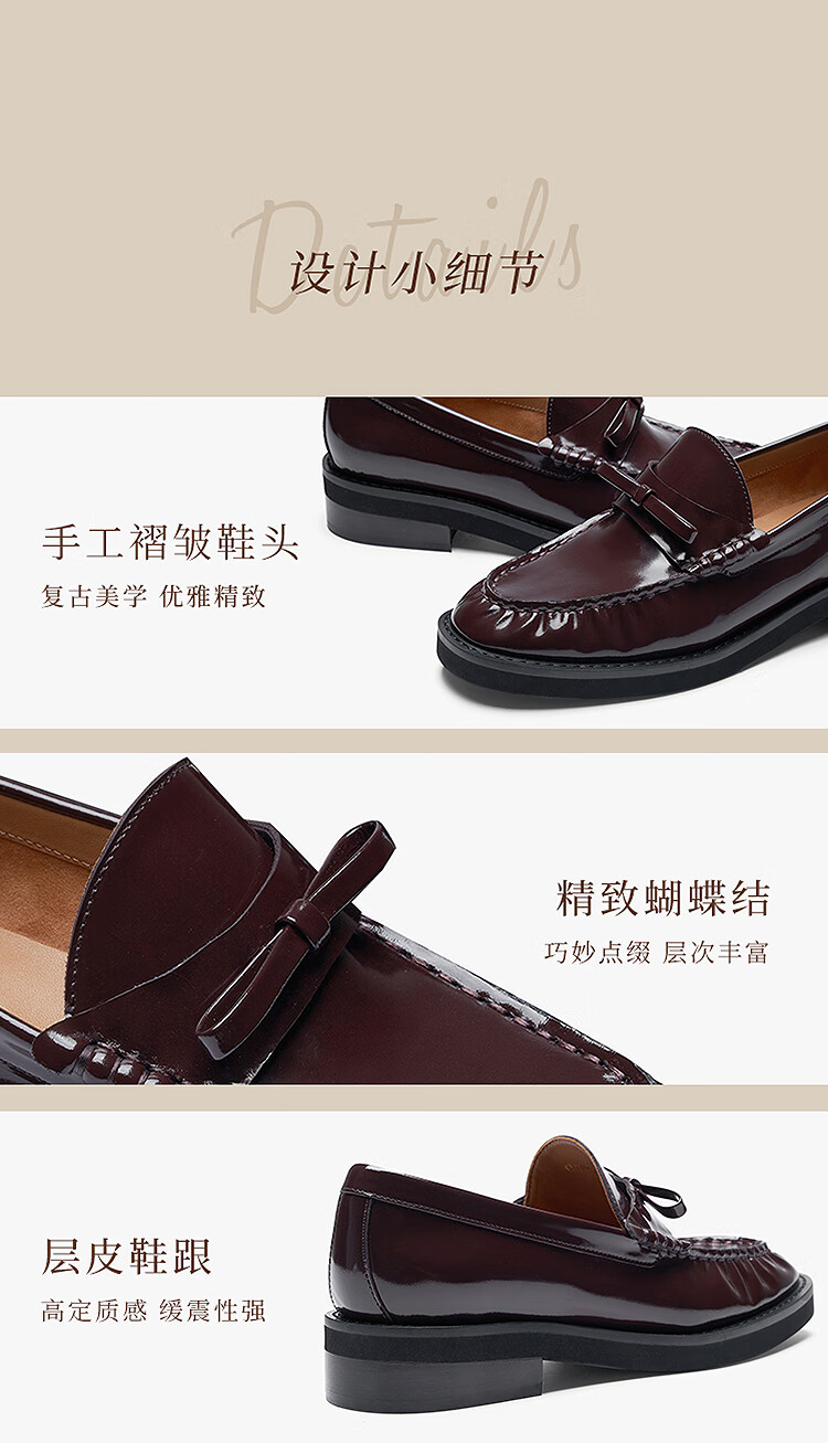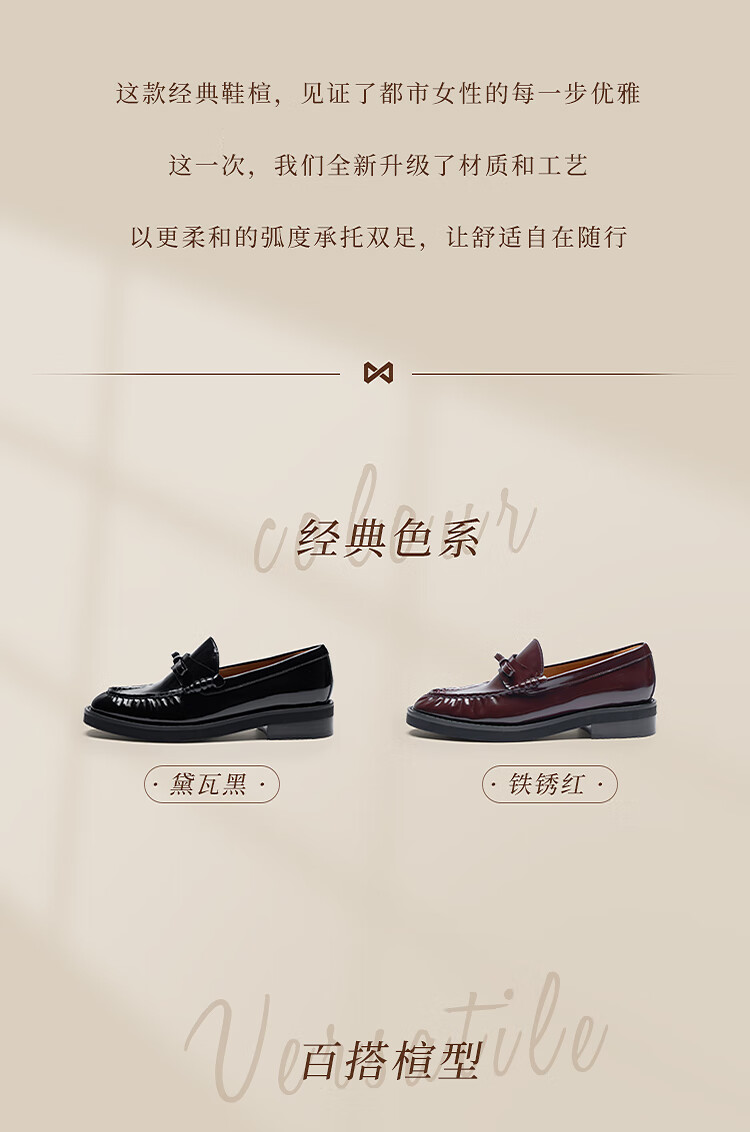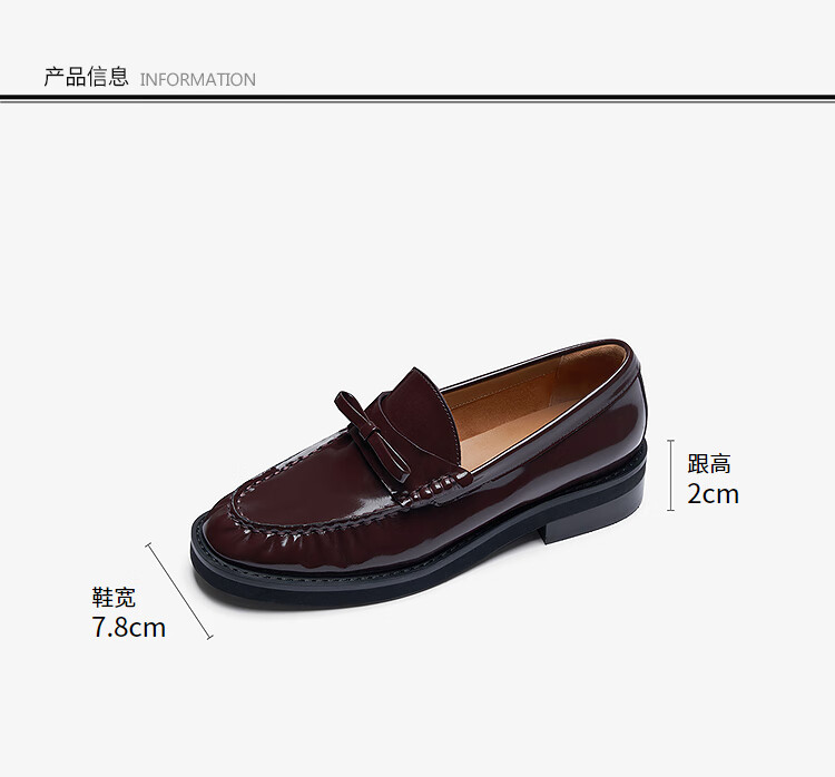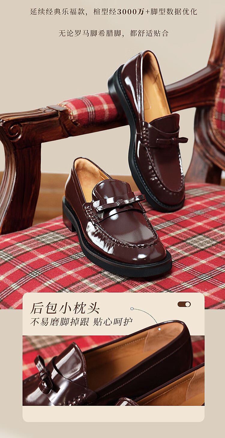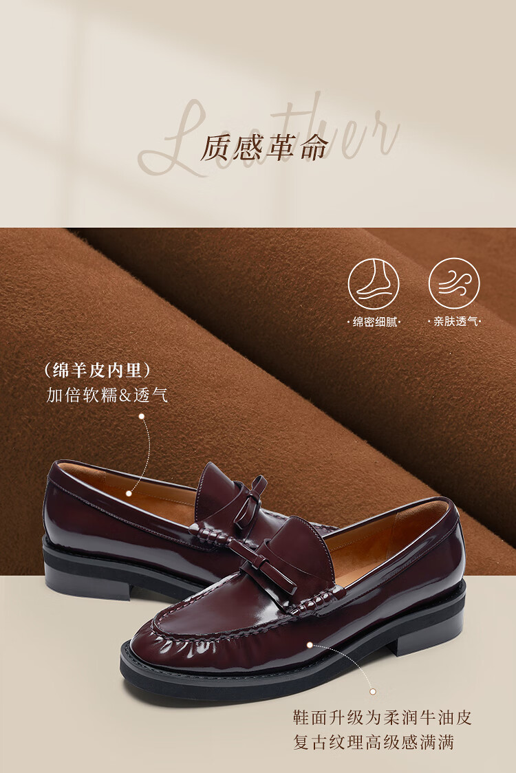 莱尔斯丹乐福单鞋真皮时尚通勤低跟女小皮鞋6T32102 铁锈红 BOL 37